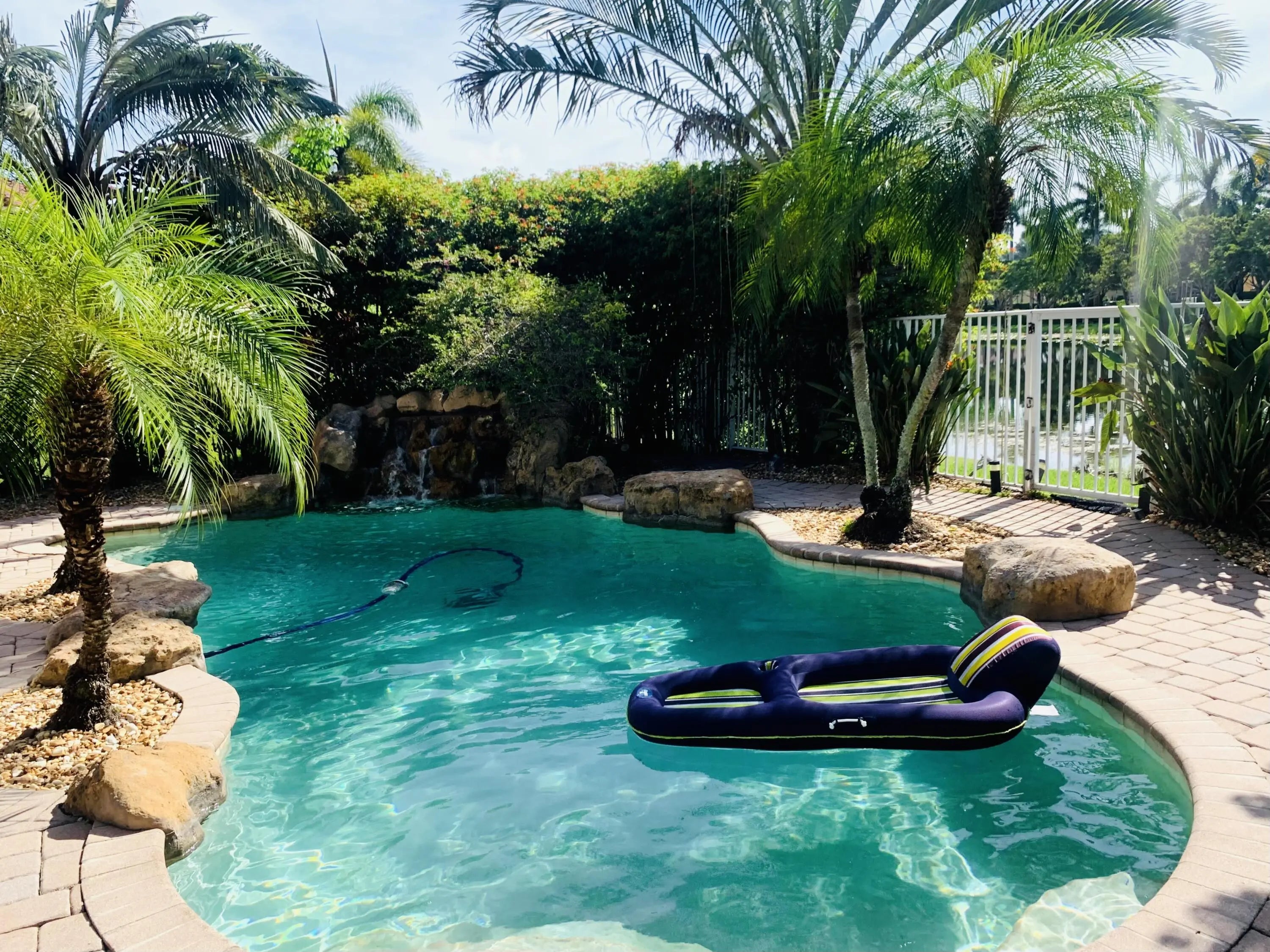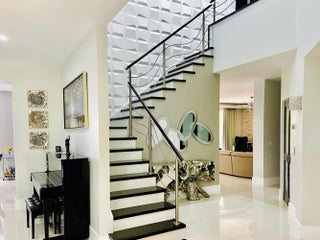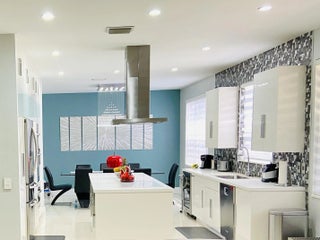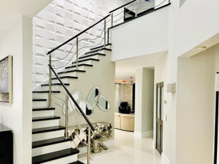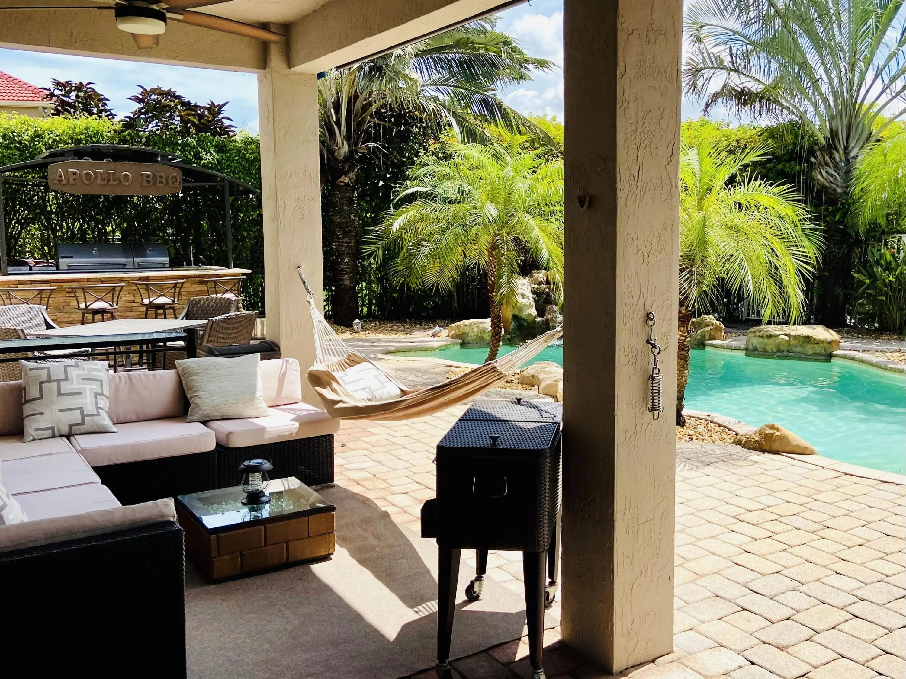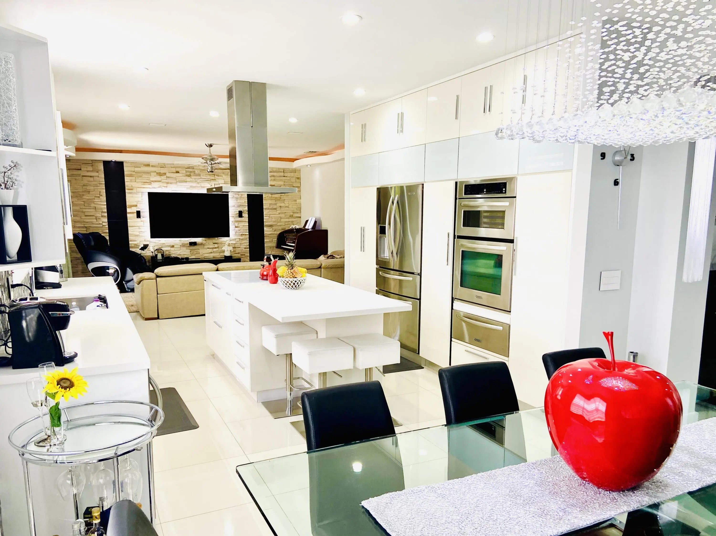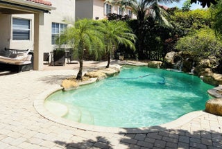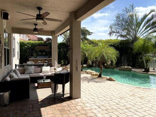 Step into a world of contemporary elegance in this fully renovated, two-story masterpiece. Featuring six spacious bedrooms plus a versatile den, this home blends modern design with warmth, pairing sleek porcelain tile on the main level with a nice flooring upstairs. At the heart of the home lies an Italian-inspired chef's kitchen, boasting a waterfall island, premium wall ovens and wine refrigerator. Outside, your private oasis awaits: a serene poolside retreat with a built-in BBQ grill set against breathtaking lake views. Situated in the prestigious gated community of The Ridges, residents enjoy resort-style amenities and access to top-rated 'A' schools. With a whole-home water softener and included maintenance for the pool and landscaping.