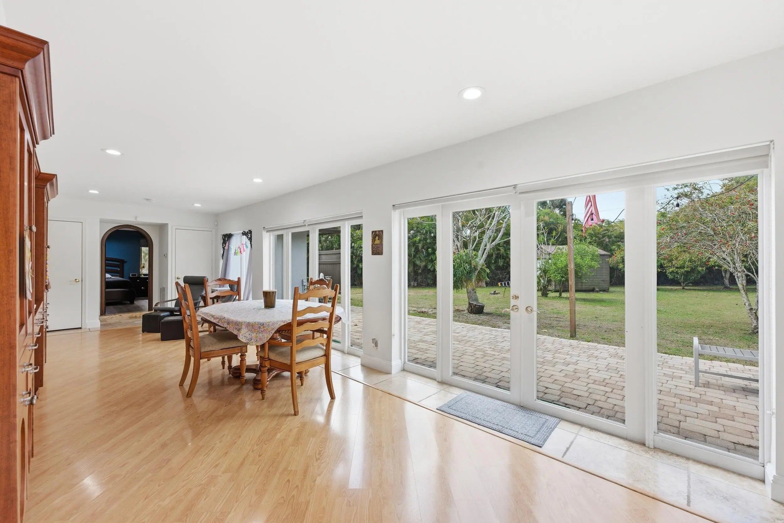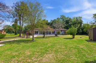 This rare 3 bed-2 bath gem sits on a full acre in a highly desirable area offering privacy and endless potential. Located on a private road and surrounded by lush greenery and fruit trees, this property creates a true private oasis. The light-filled interior features travertine flooring, an open layout, elegant archways, and multiple living areas including a spacious Florida room. The kitchen offers granite countertops, ample cabinetry, and custom backsplash. Upgrades include impact windows/doors, newer roof, newer AC unit, newer water heater, filtration system, and alarm. The oversized yard features a patio, shed, barn with plumbing, & room for pool, RV, or expansion. Conveniently located near major roads, shopping, & dining. No HOA. Includes troy-bilt lawnmower and 6000-watt generator