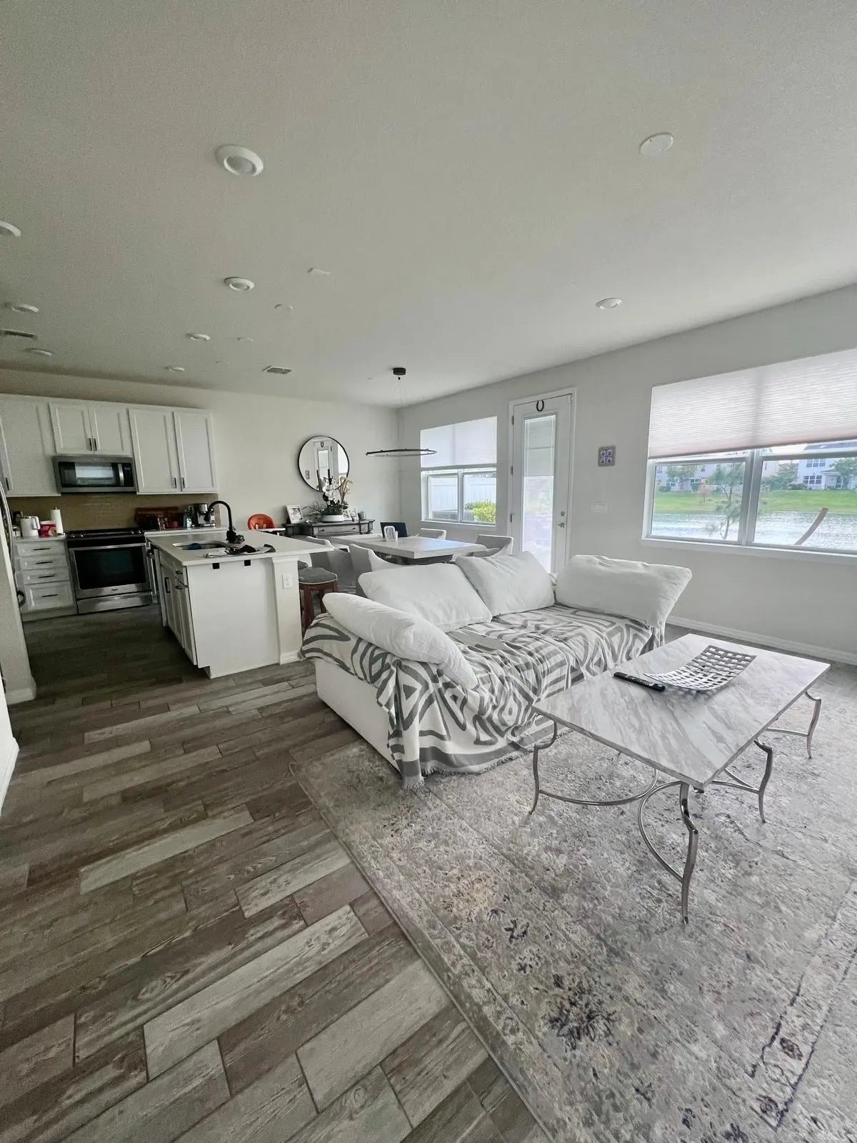 Rare Corner Townhome | Lake & Park Views | Premium Upgrades Prime centrally located corner unit directly across from the park entrance and steps to the club house. Enjoy exceptional privacy with only one neighbor and open space on three sides. Featuring serene lake views and direct park access, this home was built with a full premium upgrade package: high-end flooring, upgraded kitchen and bath cabinetry, premium carpet, and decorative glass details. Fully equipped 2-car garage with built-in storage. Furnished option available with pieces from Restoration Hardware and Pottery Barn.
