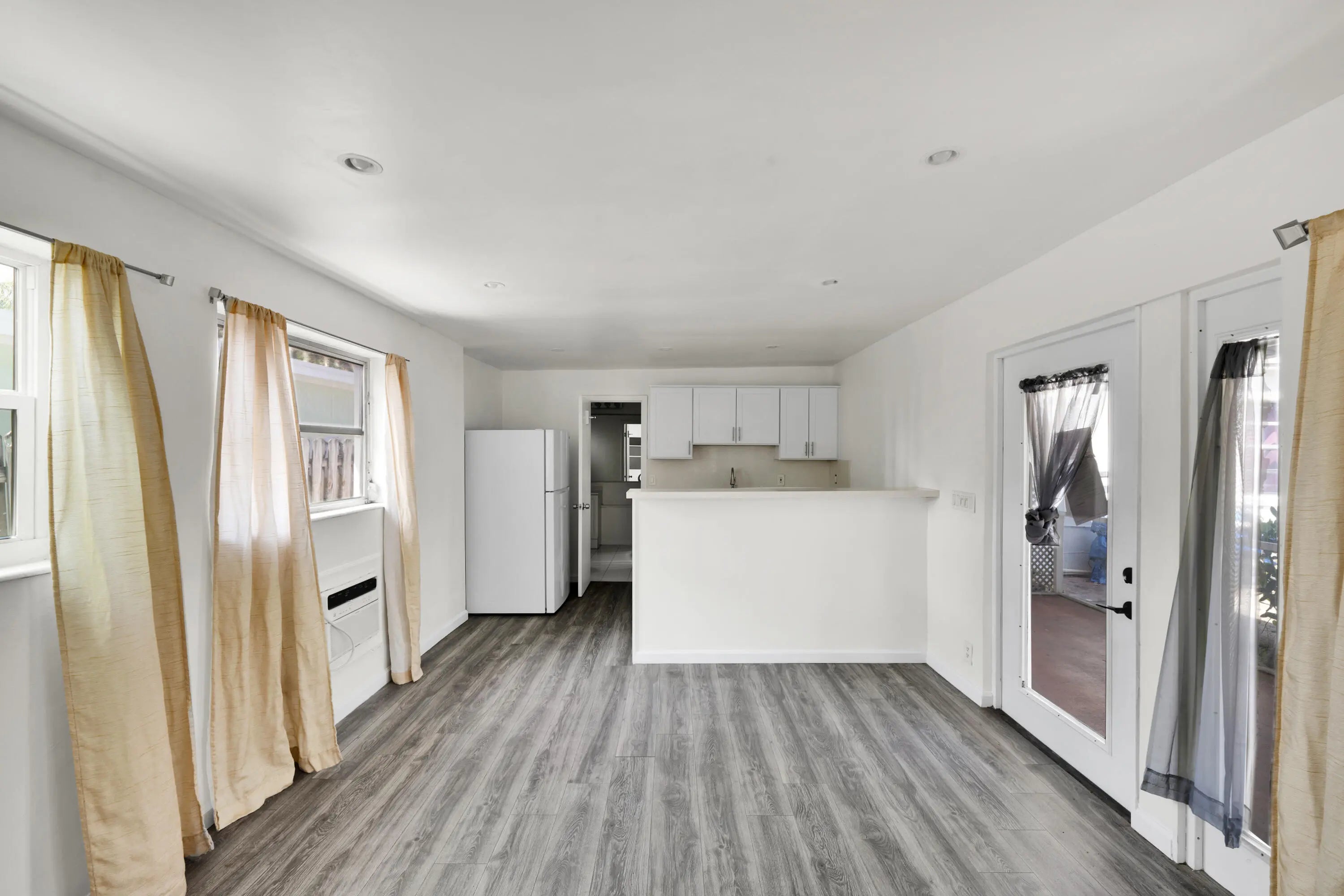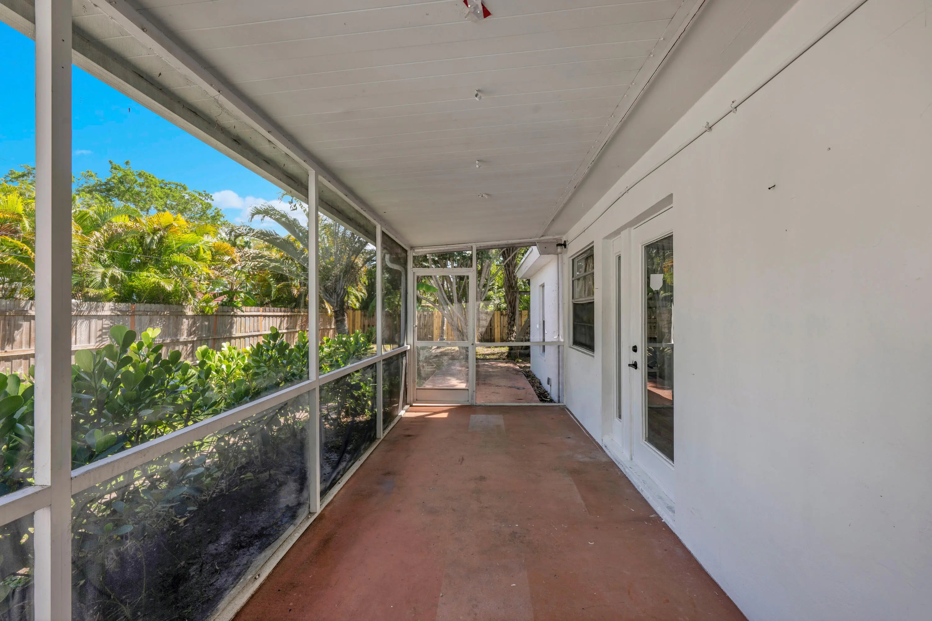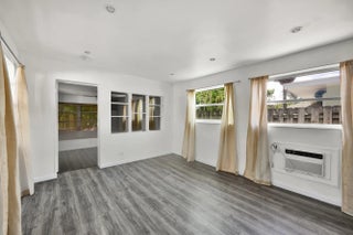 Updated private rear unit in a duplex-style home - no HOA! Open floor plan with modern kitchen featuring white shaker cabinets, quartz counters, ceramic cooktop, and breakfast bar. Gray plank flooring throughout, tons of natural light, and a stylish subway-tiled bathroom. Private screened porch overlooking a tropical fenced yard. Ceiling fan in bedroom, dedicated driveway parking, and shared on-site washer/dryer. Steps from Lantana Beach, the Intracoastal, downtown Lake Worth Beach restaurants and nightlife, and quick access to I-95. Clean, bright, and move-in ready. Tenant pays for all utilities.