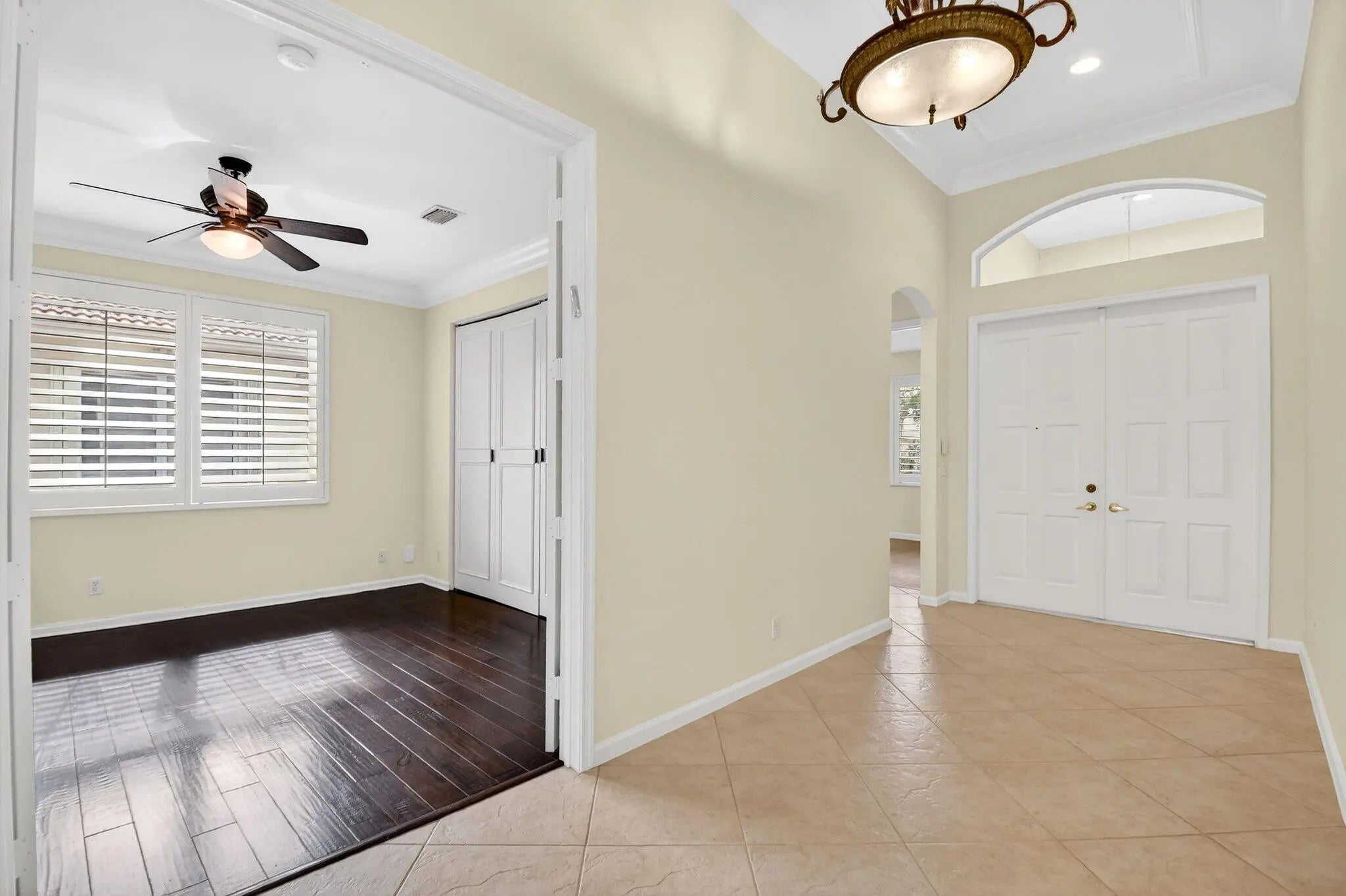 Welcome to this beautifully updated 3BR, 2 bath home, perfectly situated on a spacious lot with a serene lake view. Freshly painted interior throughout, this home offers a bright, move-in-ready feel with a customized office that can also be utilized as a bedroom. Elegant crown molding, plantation shutters & custom closets add style & functionality. The kitchen features Corion countertops with matching backsplash, brand new stainless appliances & plenty of workspace for cooking & entertaining. Enjoy new flooring in the main & 2nd BR enhancing the homes modern appeal. The open layout flows seamlessly to a large screened in lanai perfect for relaxing & dining. Venetian Isles is a 55+ community that offers country club living. Amenities include a new clubhouse w/ a restaurant serving breakfast & lunch, PLUS an upstairs bistro bar that serves dinner. A social hall is utilized for weekly parties & shows, in addition there is a craft room, billiards room & a library. Outside the clubhouse is a large resort-like pool w/hot tub, resistance walking pool, Tennis, Pickleball & Bocce courts. Last but not least, a free-standing state-of-the-art fitness center.