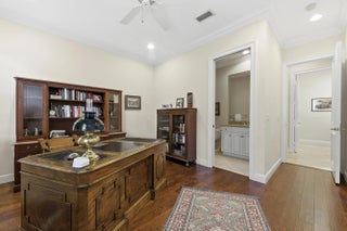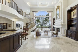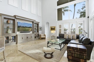 Introducing a rare Casa Del Sol estate within Frenchman's Reserve, encompassing over 5,300 square feet with five bedrooms, five full baths, and two half baths, set on a premier lakefront homesite with long, uninterrupted waterway views extending across the Arnold Palmer championship golf course. This is one of the most visually compelling settings within the community—where expansive water, manicured fairways, and open sky converge to create a truly elevated backdrop. A full golf membership is available for purchase, offering immediate access to one of Palm Beach County's most exclusive club experiences. From the moment you enter through the double doors, the residence unfolds with dramatic scale—soaring 24-foot and volume ceilings, marble and hardwood flooring, intricate crown molding, and expansive walls of floor-to-ceiling glass that flood the interiors with natural light while perfectly framing the sweeping lake and fairway vistas. A dramatic two-story library with custom built-ins and rich wood paneling, along with a spacious loft overlooking the main living area, adds architectural presence and depth throughout. The gourmet island kitchen is thoughtfully designed for both everyday living and refined entertaining, appointed with a Wolf wall double oven, Sub-Zero refrigerator, Thermador gas cooktop, Bosch dishwasher, Monogram microwave, and Zephyr hood. Custom cabinetry, generous counter space, a pantry, breakfast bar, and breakfast nook flow seamlessly into the family room, while multiple dining and entertaining areas enhance the home's functionality and flow. The primary suite is a private retreat, positioned to capture serene lake and fairway views, and complemented by a sitting area, dressing vestibule, and dual walk-in closets with custom storage. The spa-inspired bath features marble-appointed finishes, dual vanities, a deep soaking tub, and a glass-enclosed walk-in shower, all thoughtfully designed with natural light. Outdoor living is equally impressive, centered around a custom pool with sun shelf and swim-out design, heated pool and spillover spa, and a covered lanai with a fully equipped summer kitchen featuring a Sedona grill and sink. The expansive outdoor terrace is perfectly positioned to embrace the home's long waterway and golf course backdrop, creating a true resort-style setting. Additional highlights include a three-car garage, new A/C units, and a full-size laundry room with Electrolux washer and dryer, all contributing to a layout that lives like a true estate home. This offering represents more than a home—it is a lifestyle defined by exclusivity and refinement. Frenchman's Reserve is one of Palm Beach Gardens' most prestigious country club communities, offering championship golf, tennis and pickleball, a state-of-the-art fitness center, spa, and a resort-style clubhouse with exceptional dining. A full golf membership is available for purchase, unlocking immediate access to the club's premier golf, social, and lifestyle offerings for those seeking the highest level of country club living.