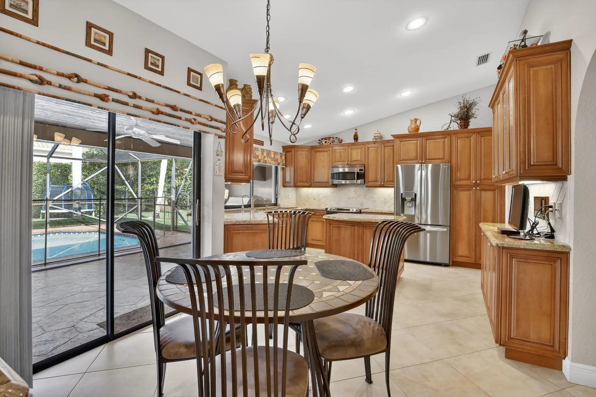 Welcome to this warm and inviting Coral Springs home with no HOA! Featuring 4 spacious bedrooms and 2.5 bathrooms, the split floor plan offers comfort and privacy. Enjoy an open living and family room, separated by a unique coral stone half wall, flowing seamlessly into the dining area and breakfast nook. The beautiful kitchen includes a convenient island and pass-through window to a stainless steel summer kitchen. Relax in the screened-in patio overlooking a tranquil pool and private, fully fenced backyard with extra green space for play. Additional highlights include a 2-car garage with built-in storage and extra fridge, large circular driveway, lush landscaping, and full hurricane protection. Located in a peaceful, tree-lined neighborhood close to top-rated schools, dining and highways.