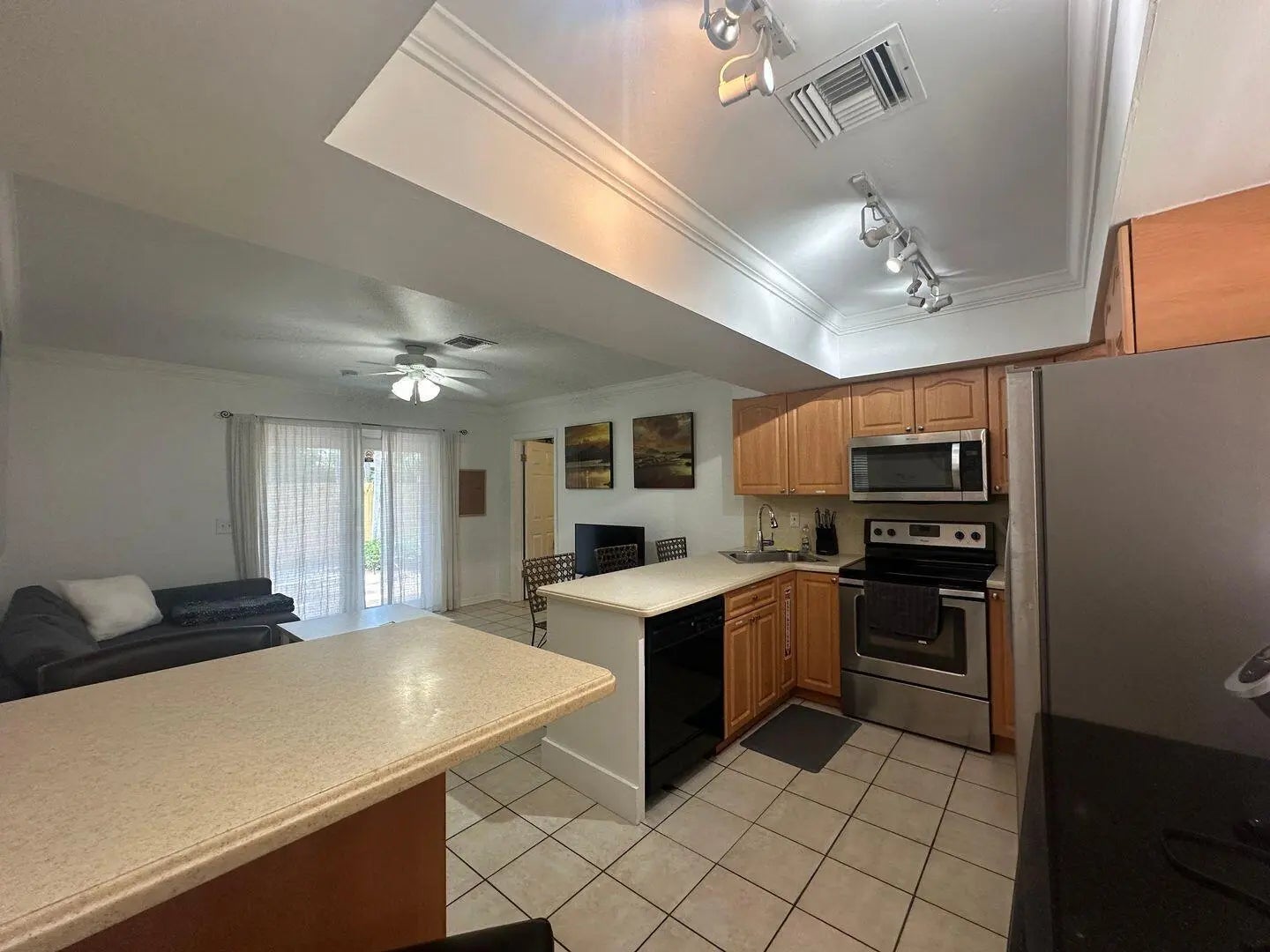 Welcome to our charming 2-bedroom, 2-bathroom apartment located in the heart of Oakland Park, FL. This cozy unit features a fenced-in yard, perfect for enjoying the outdoors in privacy. Inside, you'll find convenient amenities such as a washer and dryer, ceiling fans, and Central AC for added comfort! 2 parking spots right at your doorstep. With a prime location and all the essentials you need, this apartment is the perfect place to call home. This unit is offered on a monthly basis. Water and WI-Fi included!