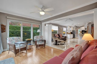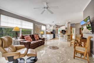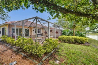 Stunning waterfront 2 bed, 2 bath villa with Florida room & screened-in rear patio. The kitchen features attractive granite counters, upgraded cabinet shaker doors & all new S/S appliances. This extended Capri home has an air-conditioned Florida room with impact glass doors that overlooks the screened in waterfront patio. Other upgrades include a new ROOF in 2025, re-screened rear patio in 2022, EV car charging system in the garage, A/C in 2022 & beautiful tile flooring throughout. Come see this immaculate home today before it's gone. Riverwalk is a guard gated community (all ages welcome) that's centrally located & includes all of these amazing amenities: a large active clubhouse, three heated pools (lap pool, adult pool & a resort style pool), pickleball & Har-Tru lighted tennis fitness center, bocce court, tot lot, on-site Italian style restaurant & a family salon. There are over 12 miles of walking pathways with an abundance of pedestrian bridges crossing the many waterways & lakes. Close to shopping, Florida's Turnpike, I-95 & only 15 minutes to the Palm Beach International Airport.