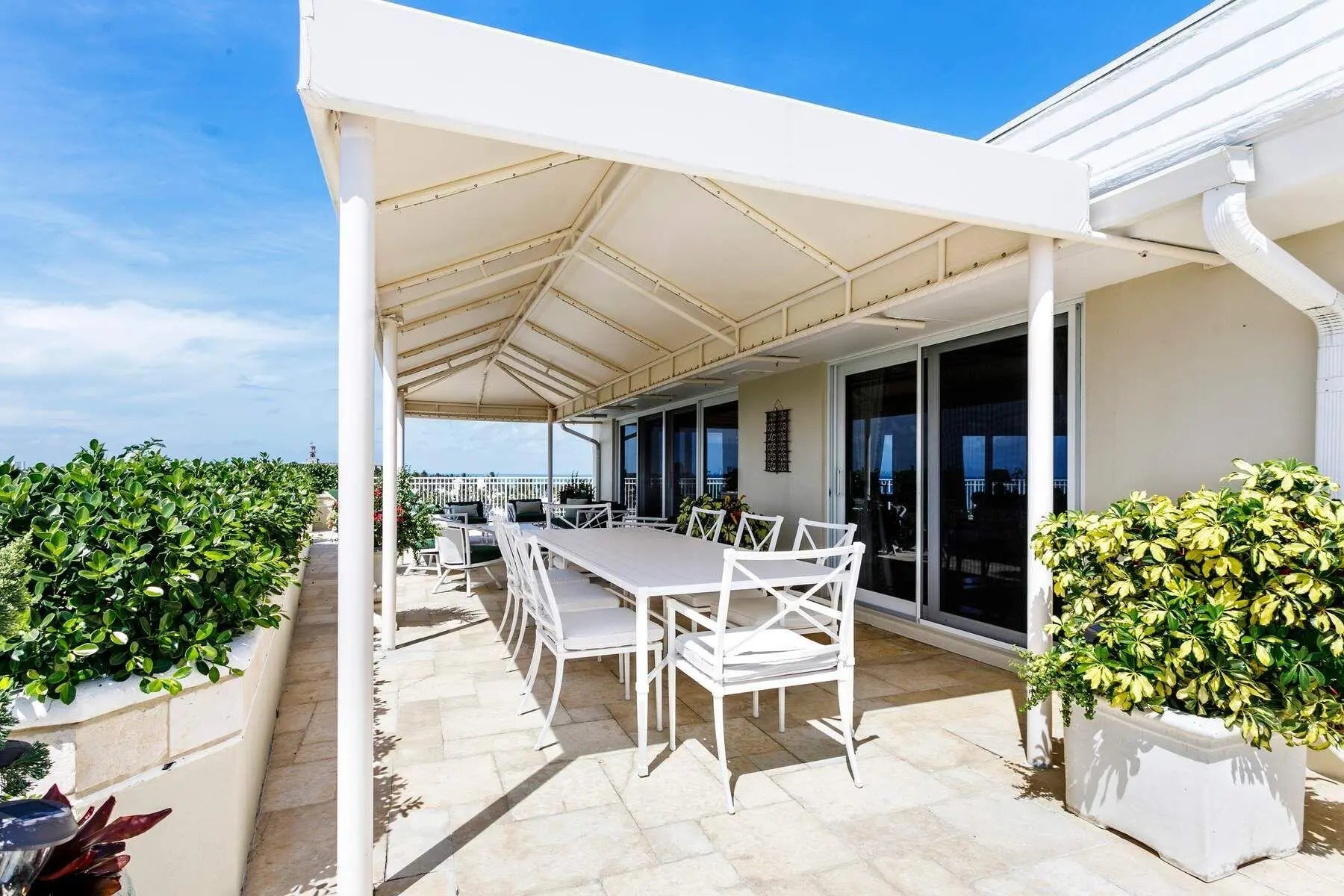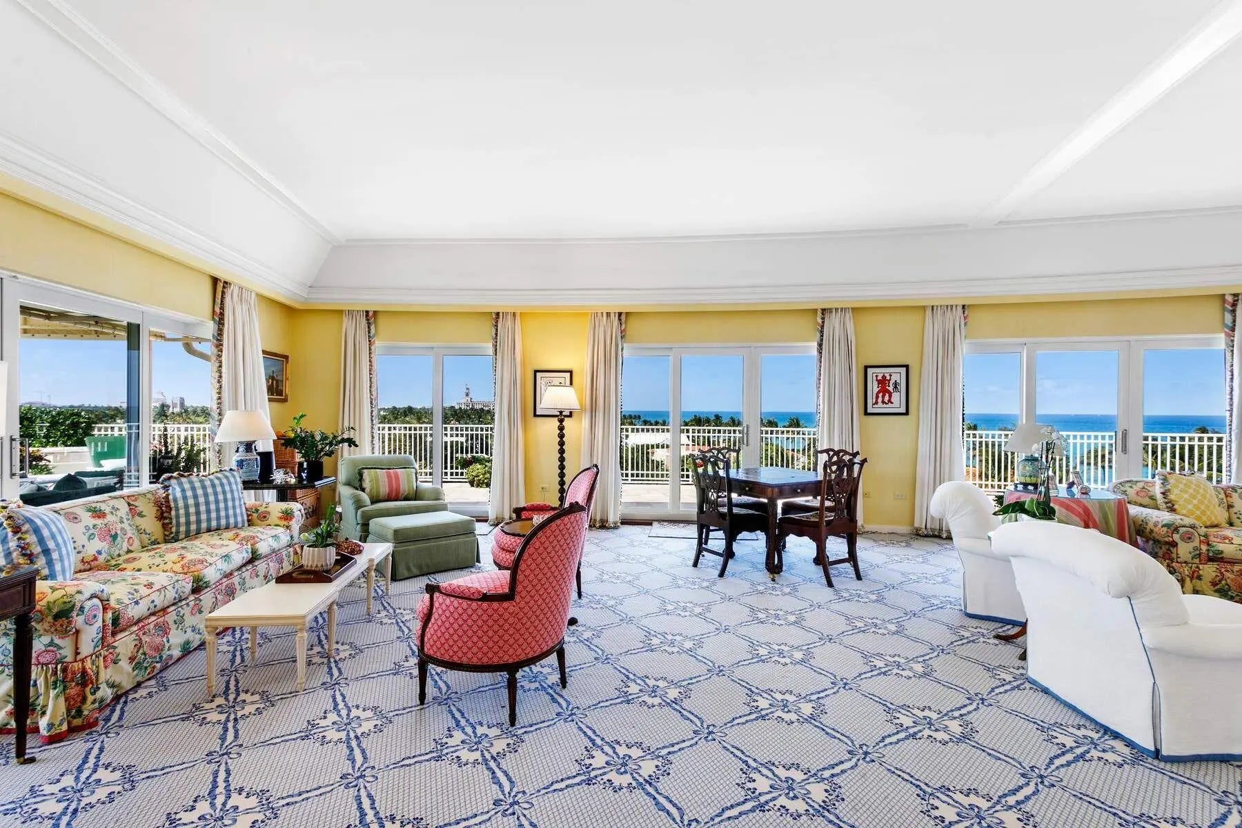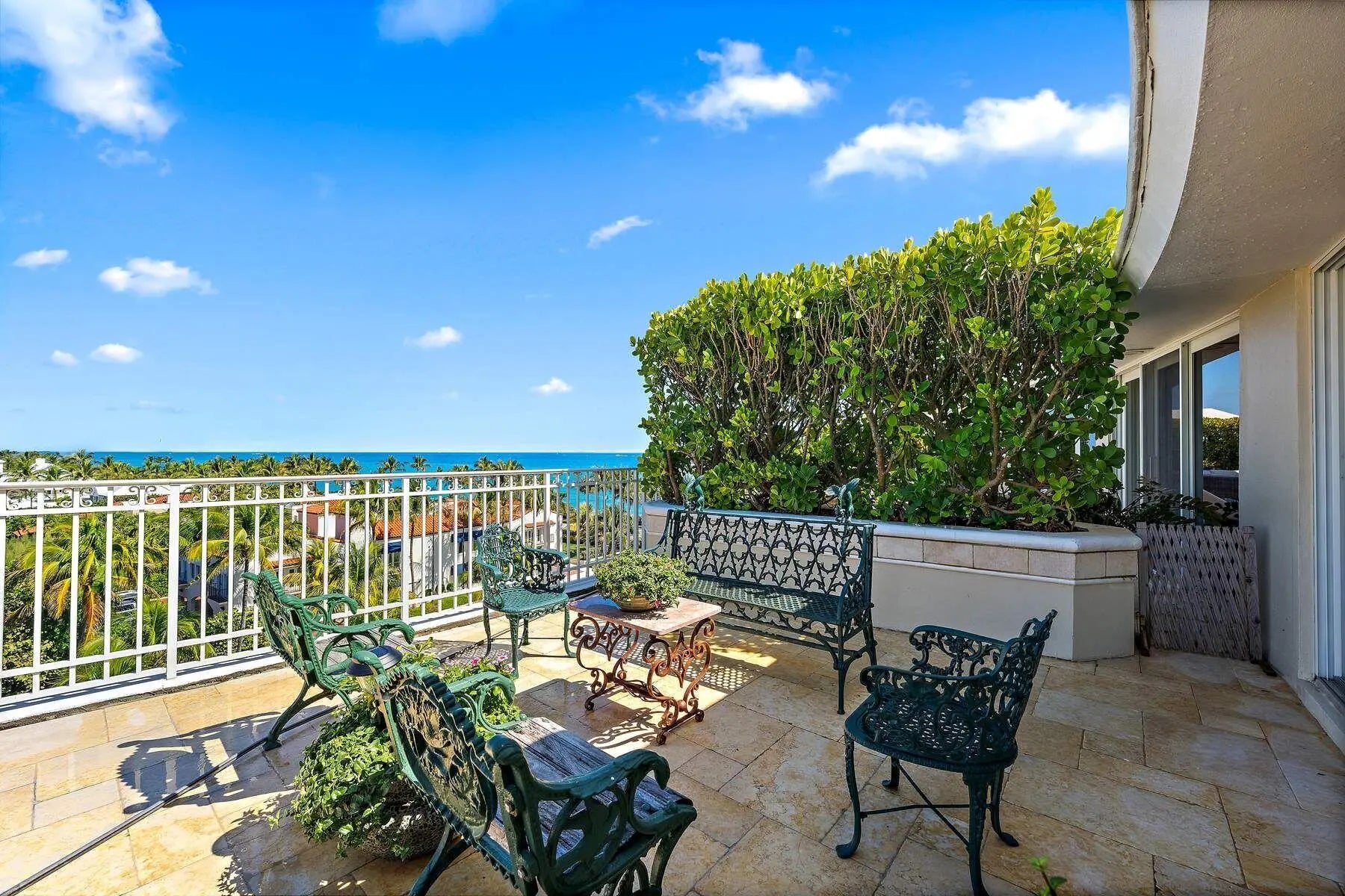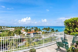 Breathtaking and truly unparalleled, the panoramic views from this Oceanfront Penthouse set it apart from anything else in Palm Beach. Coming to market for the first time in more than 33 years, this expansive 3-bedroom, 3-bath residence offers approximately 2,730 square feet of interior living space and an extraordinary ~3,000+-square-foot wraparound terrace with sweeping exposures to the east, north, and west. Flooded with natural light, the home features high ceilings, generous room proportions, and wonderfully open living spaces. Enjoy radiant sunrises over the Atlantic and majestic sunsets that illuminate the island--an ever-changing backdrop of sky and sea. 100 Royal Palm Way is an iconic, Howard Chilton-designed boutique building, prized for its coveted location directly across from the beach and just a few blocks from Worth Avenue's world-class dining and shopping. A rare and remarkable offering in the heart of Palm Beach.