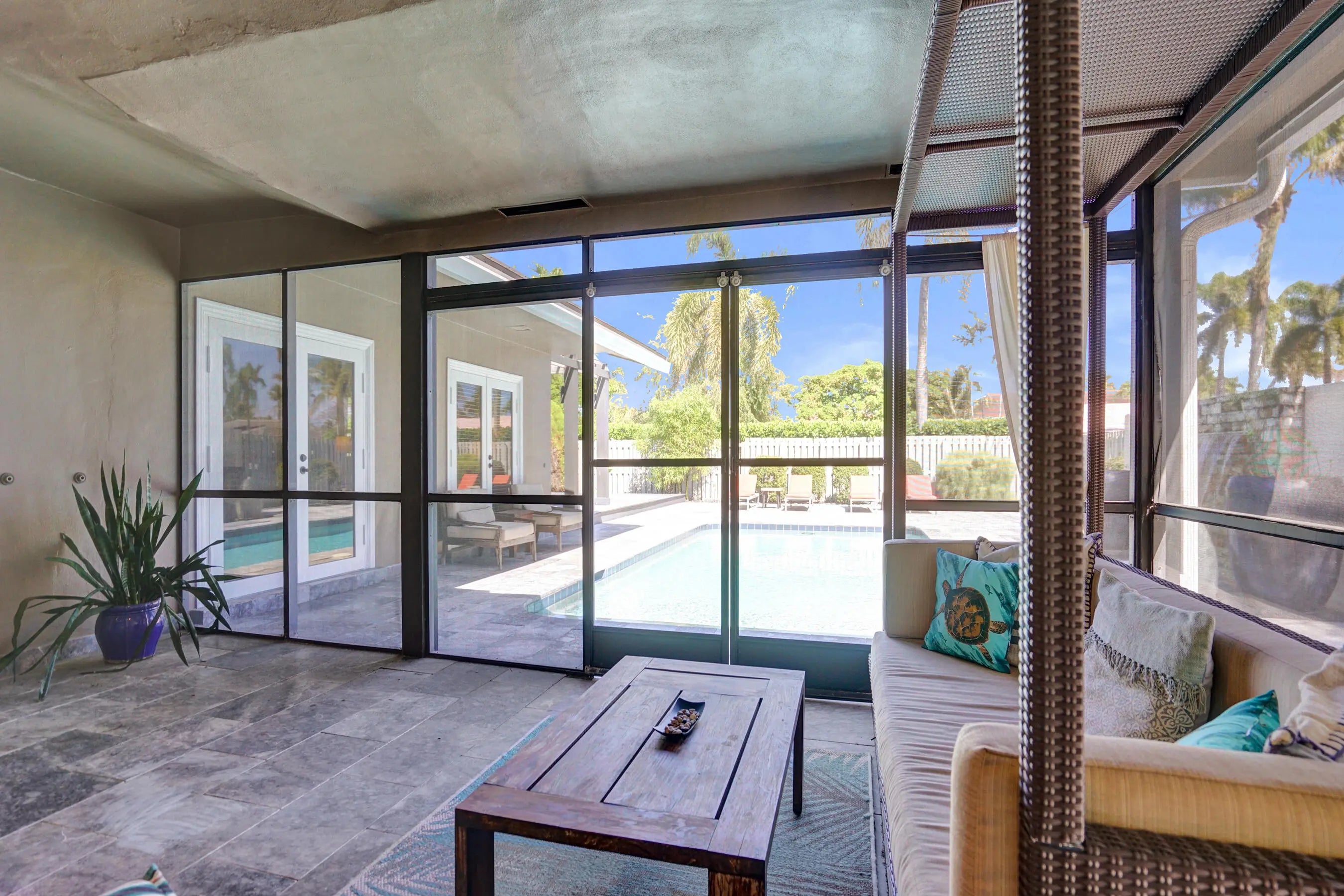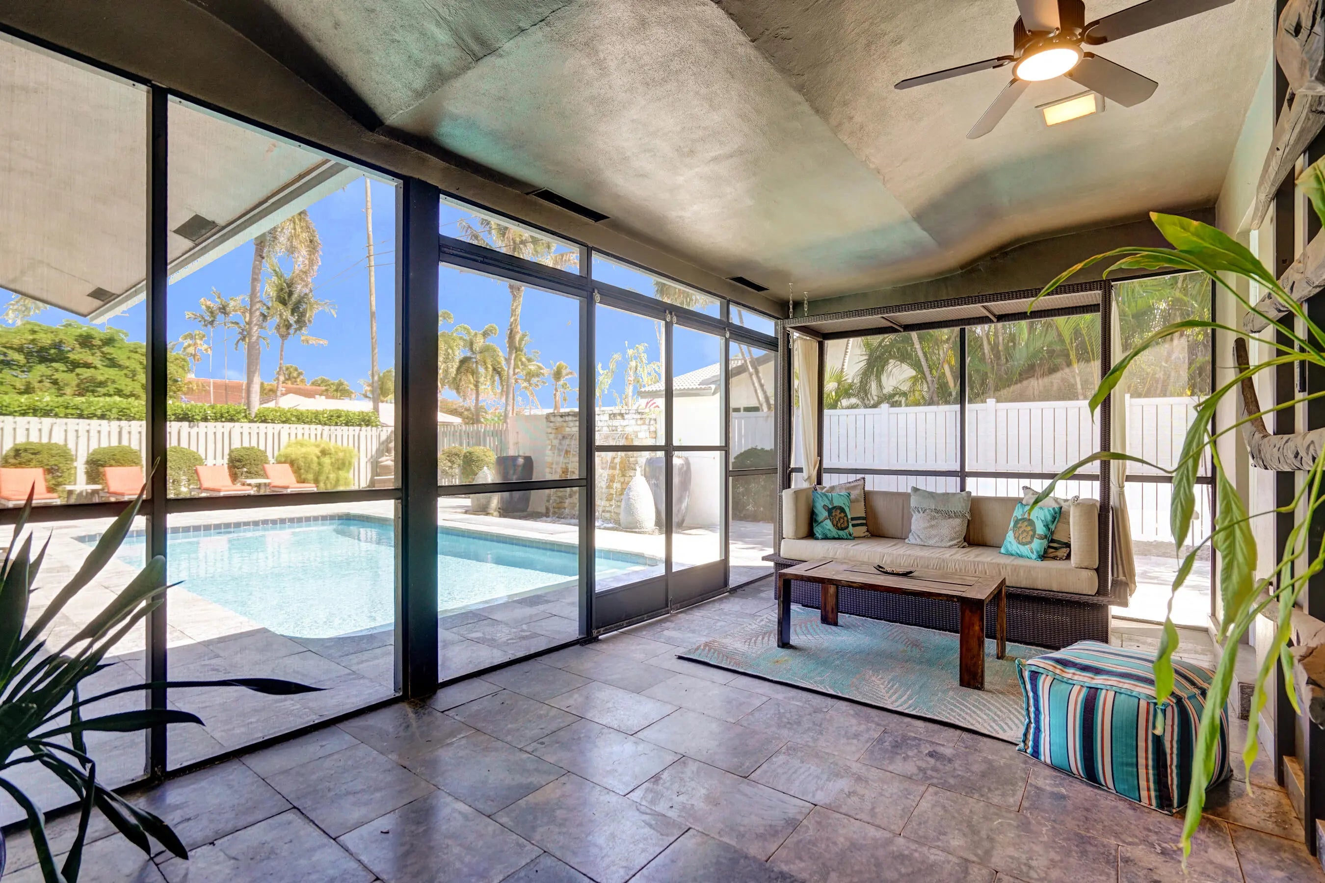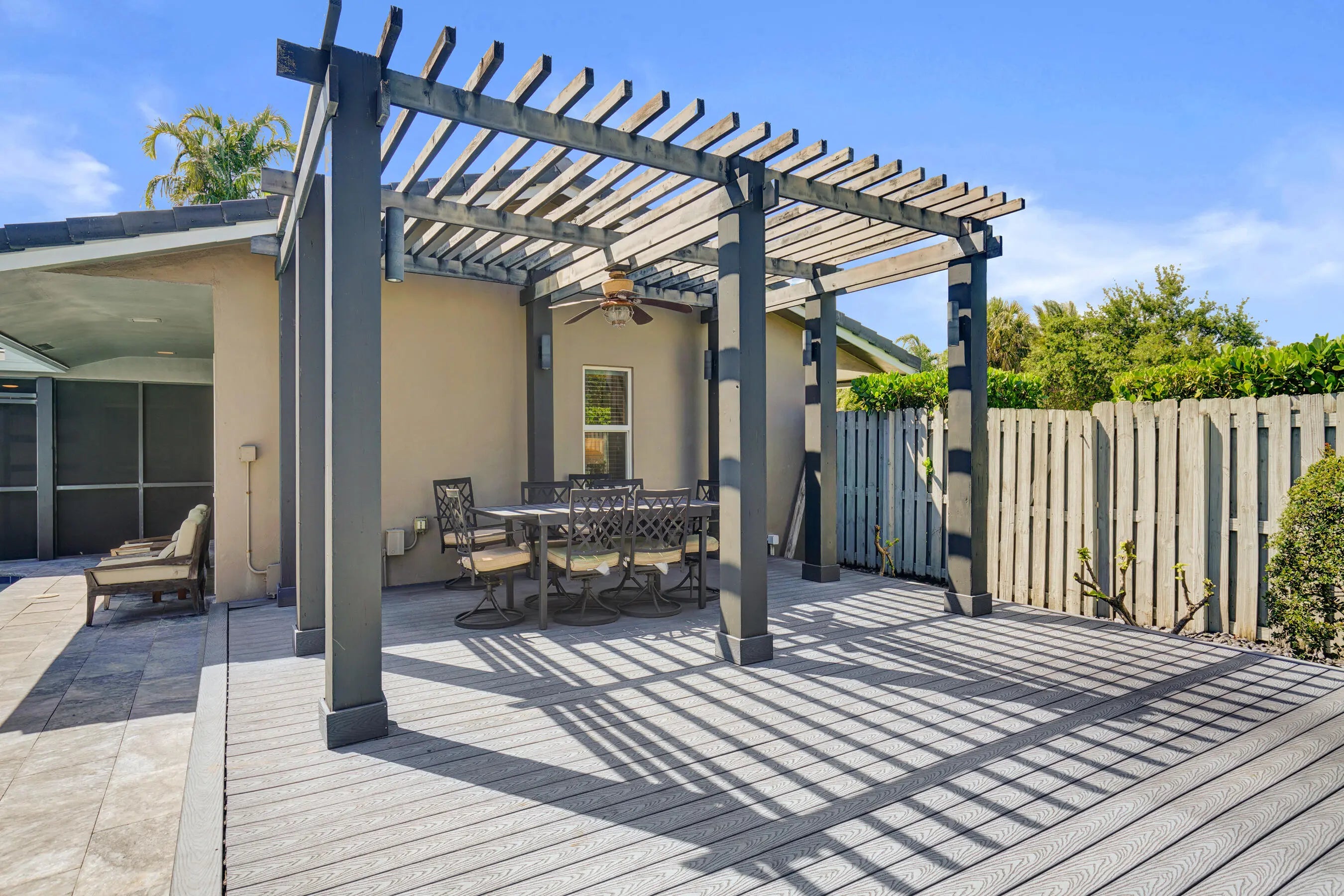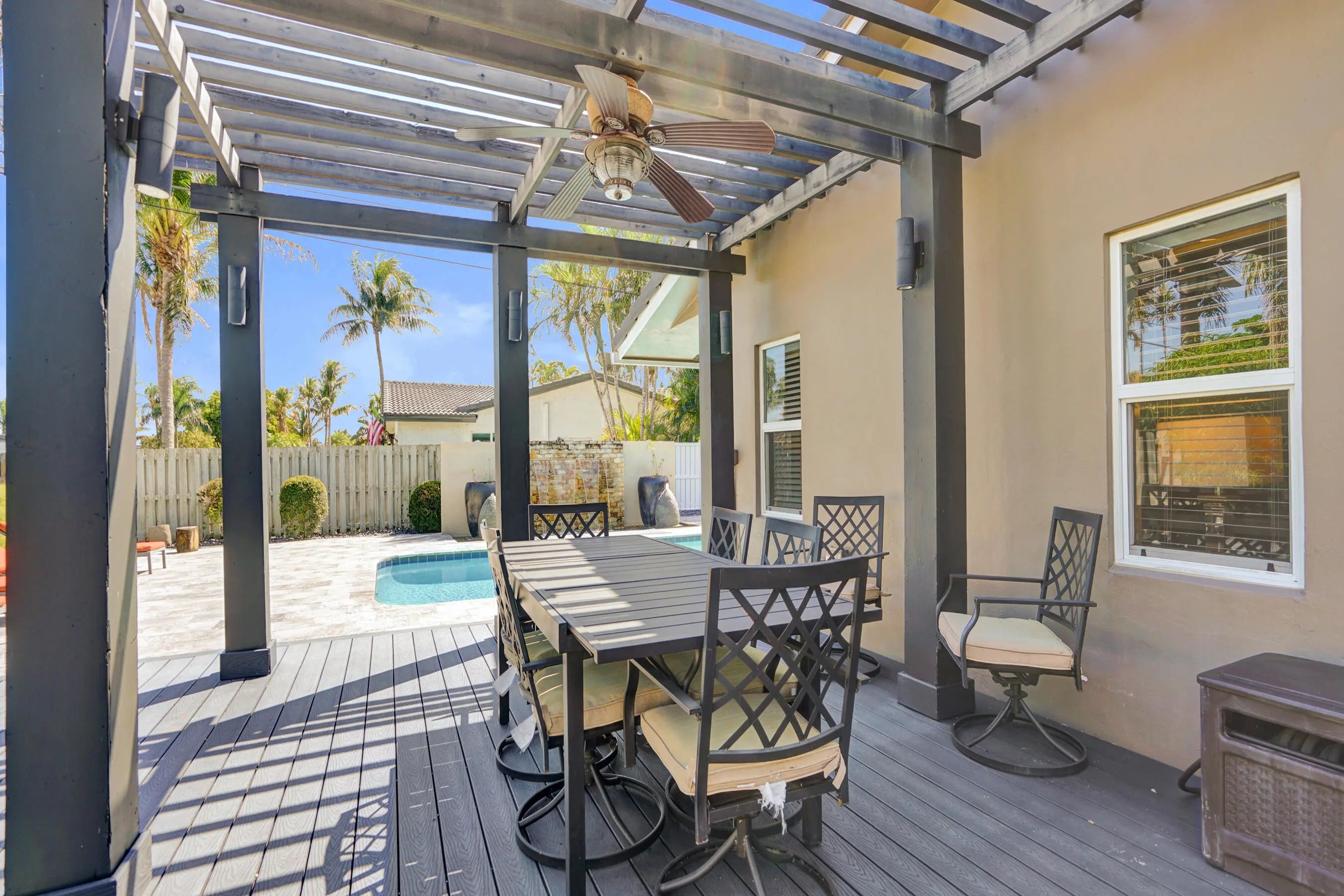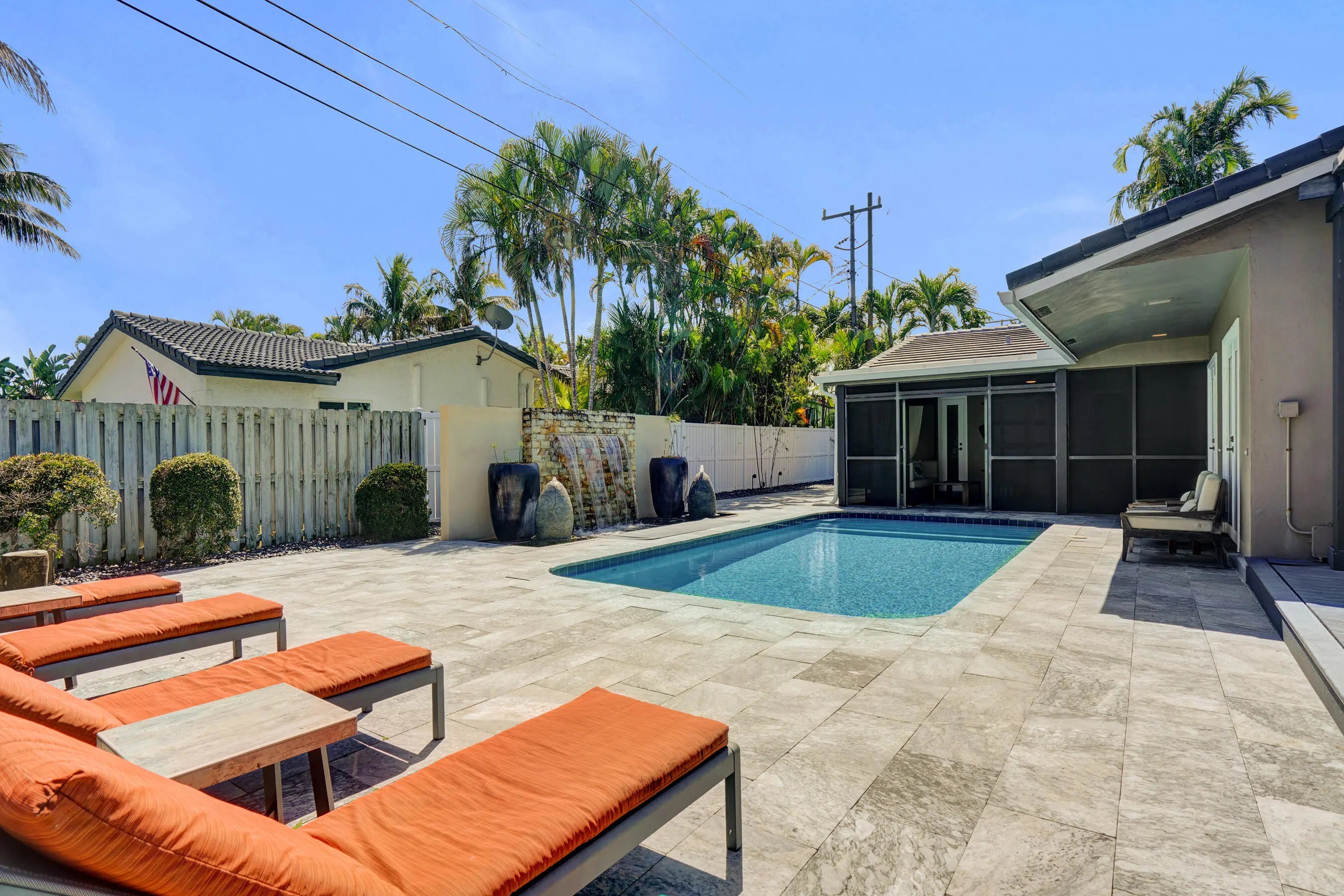 Welcome to your private retreat in the sought-after Venetian Isles of Lighthouse Point. This lovely 3-bed, 2-bath pool home offers a light-filled, open, split-bedroom layout. Recent upgrades include a NEW roof (2024) and NEW A/C (2025). Features include travertine floors, kitchen with wood cabinetry and granite countertops, crown molding, and impact windows/doors. Situated on a large, fenced corner lot with circular drive. The outdoor space feels like a boutique resort with Bali-imported materials. Enjoy a marble patio, pool with 20-ft waterfall, hot tub, screened patio, and Trex deck with pergola. Located in one of LHP's most desirable neighborhoods, - known for its quiet streets & great neighbors. This beautiful home offers the perfect blend of privacy, luxury, and South Florida living.
