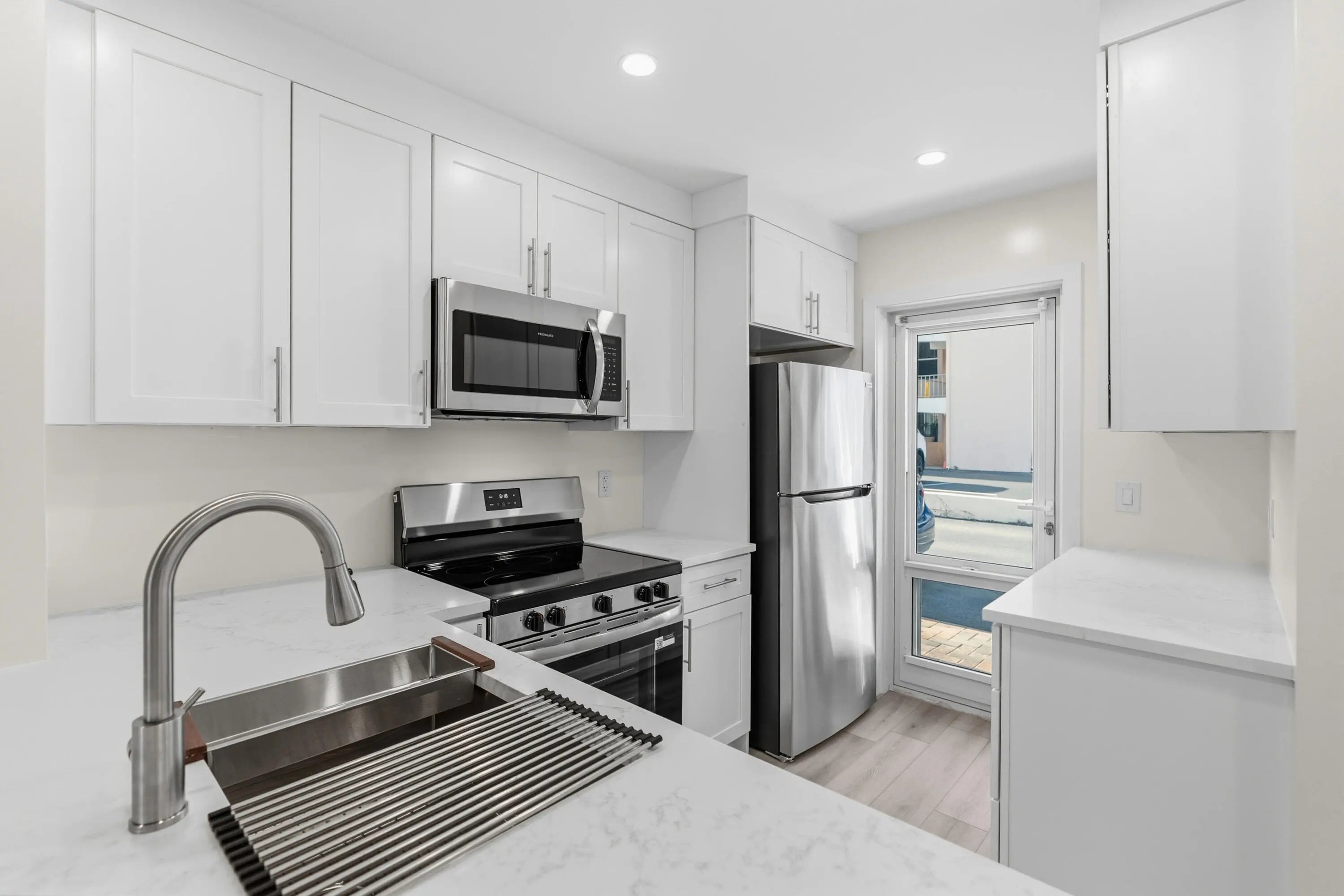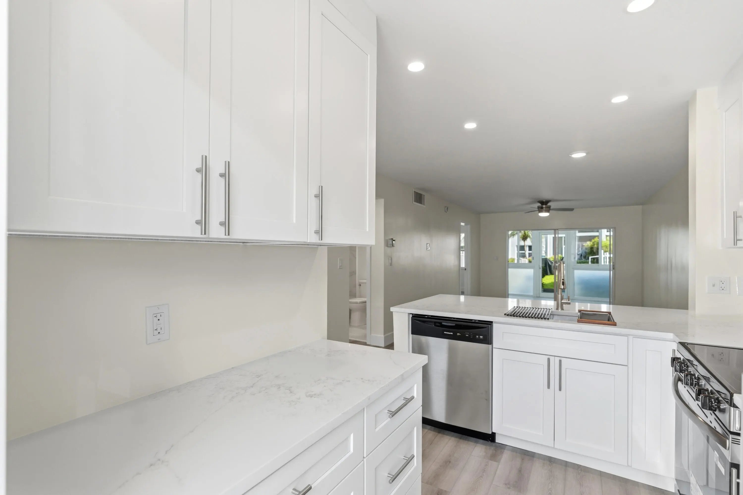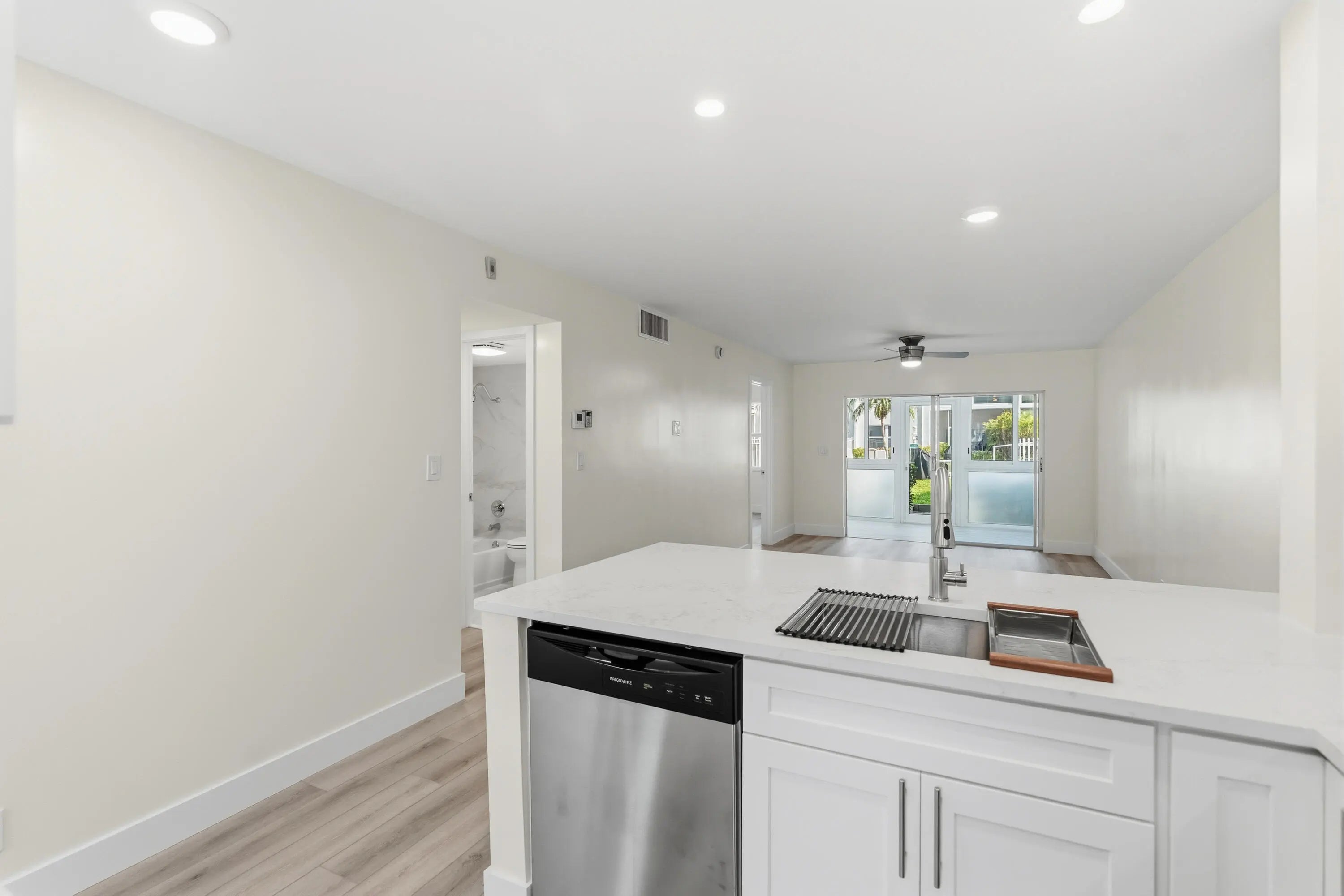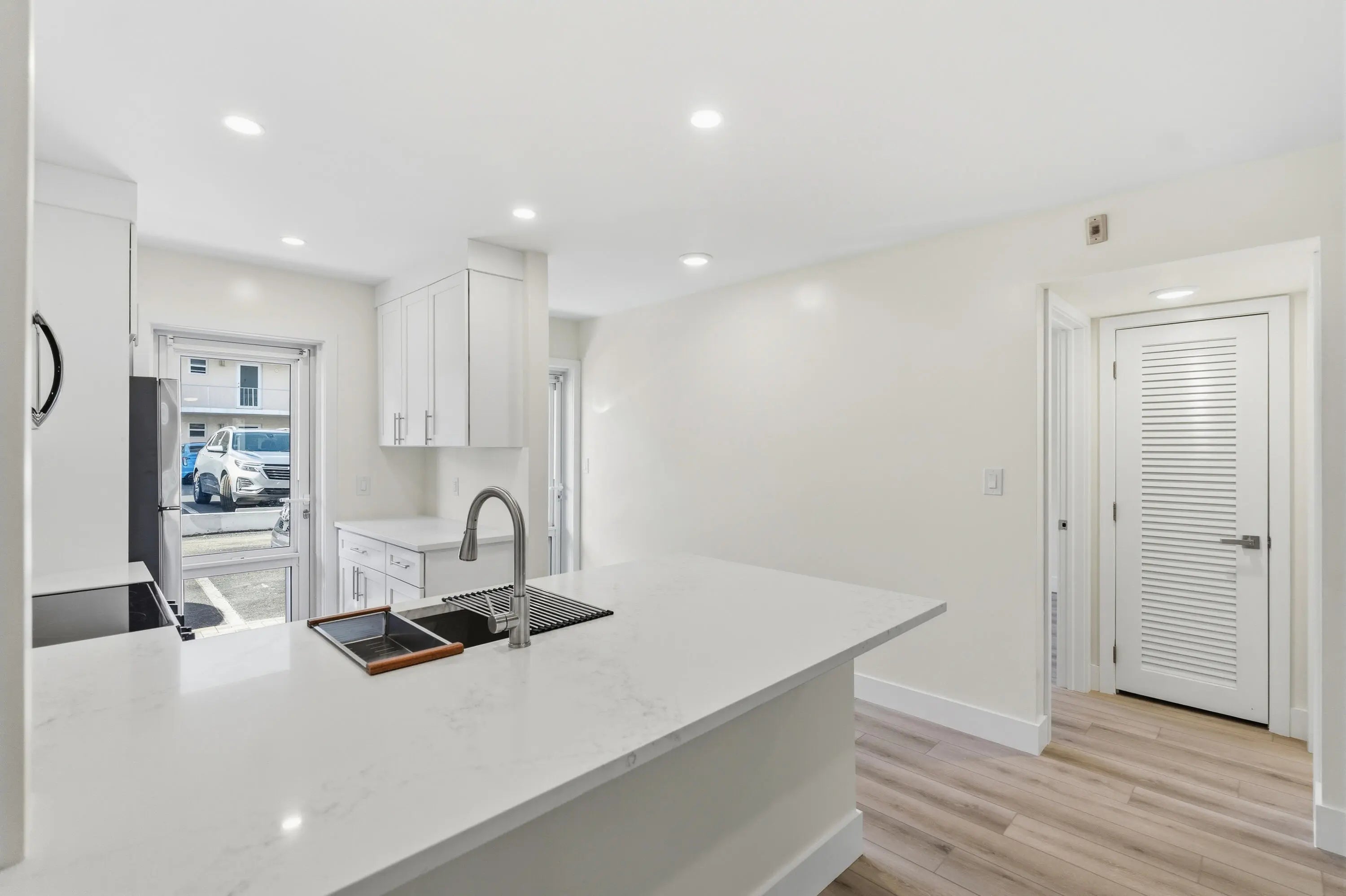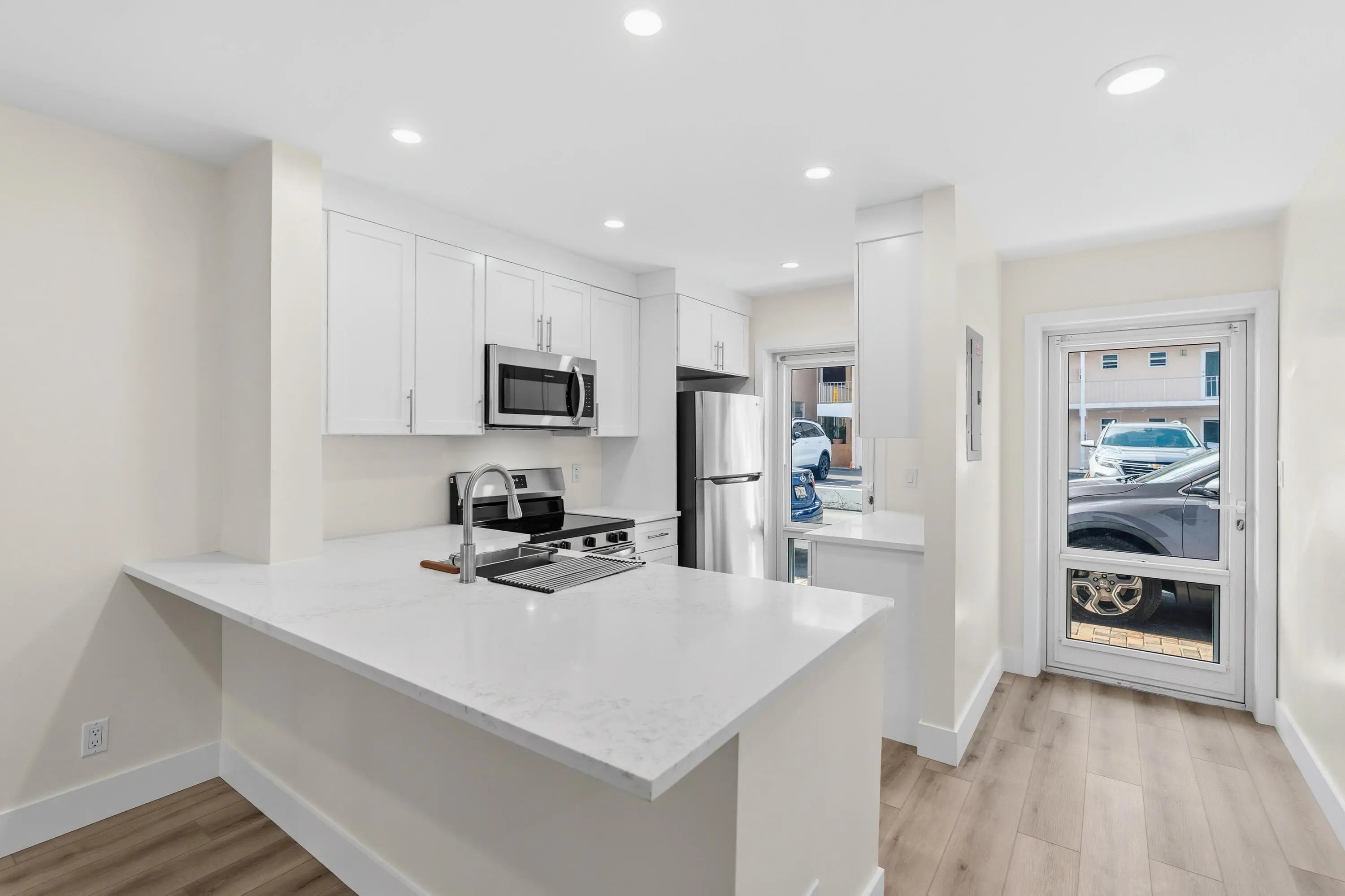 BEACH AND BOAT LOVERS DREAM LOCATION!.., FEATURING PRIVATE DEEDED BEACH ACCESS, COMMUNITY BOAT DOCK, NO FIXED BRIDGES, 1 CANAL FROM THE INTRACOASTAL WITH 6 BOAT SLIPS! Located in desirable North Leisure Gardens COMPLETELY REMODELED 2-bed, 2-bath, 1st floor, corner unit features EVERYTHING BRAND NEW!, a custom kitchen with quartz countertops, soft-close cabinets, stainless-steel appliances and ALL NEW, ELECTRIC, PLUMBING, HWH AND AC UNIT. Bathrooms boast custom-tiled showers and porcelain finishes, NuCore plank flooring, impact glass, and walk-in closets throughout. Relax on your patio overlooking lush gardens and the pool. ALL 40 YR AND SIRS CERTIFICATIONS COMPLETE AND ASSESSMENTS PAID. Close to shops, restaurants, and the piers. Schedule your showing today its easy to view. PARKING SPACE RIGHT OUTSIDE YOUR DOOR!
