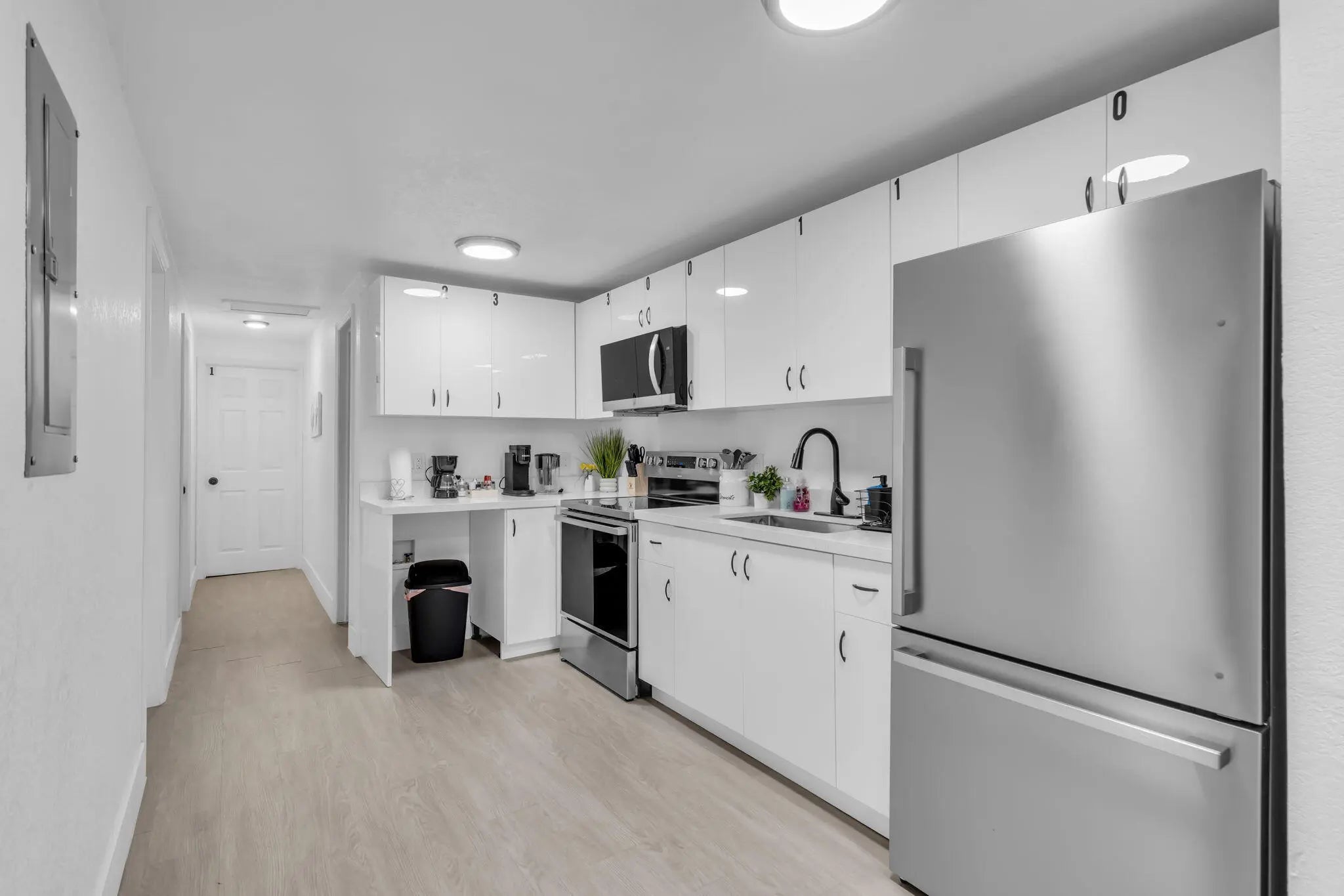 Tankless Water Heater, Electric Range, Microwave, Oven, Refrigerator, Water Heater