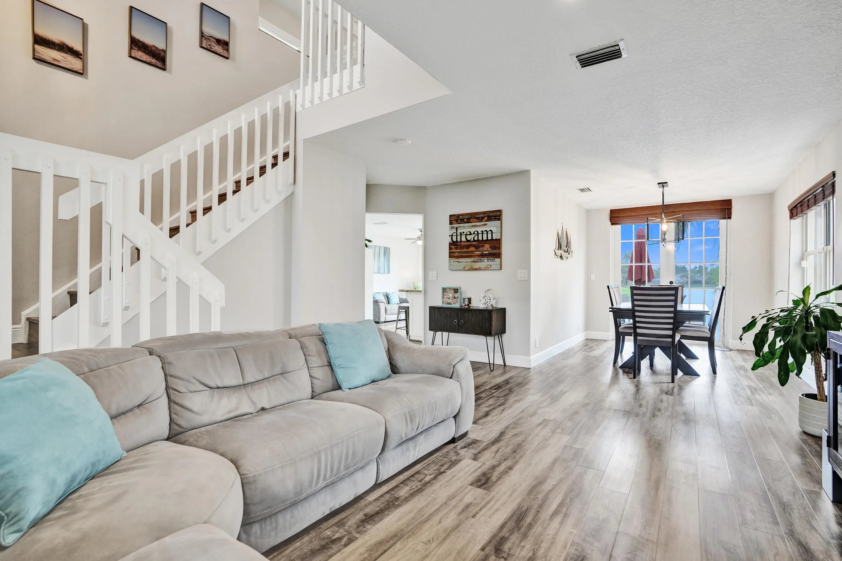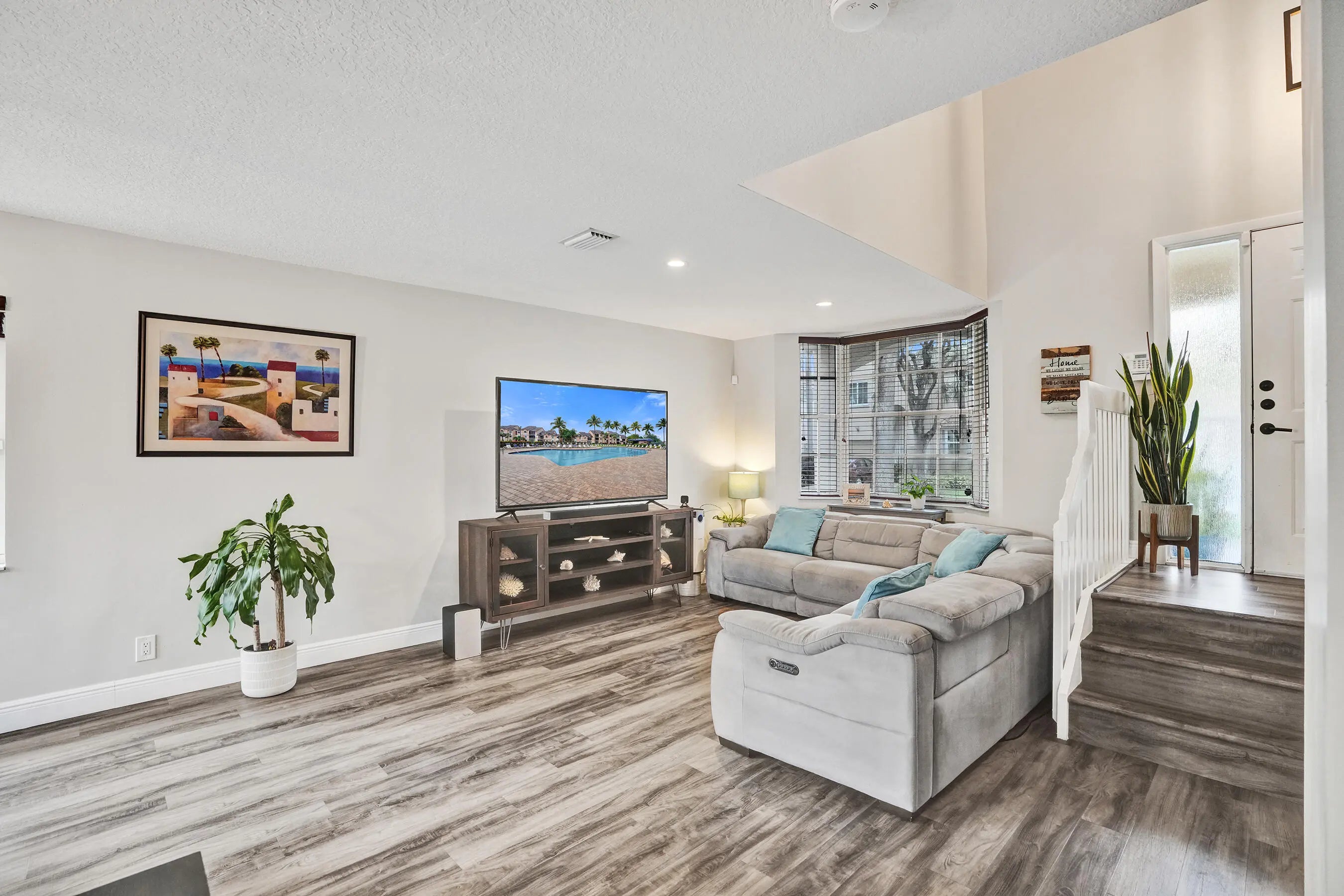 Experience serene lakefront living in this beautifully maintained home in the highly sought-after Fountain Spring community. This 3-bedroom, 2.5-bath residence sits on one of the best lots, offering stunning water views, perfect for peaceful mornings, relaxing evenings, or entertaining. The thoughtfully designed floor plan features all main living areas on the first floor, luxury vinyl plank flooring throughout, abundant natural light, and ample storage. Upstairs, all bedrooms provide privacy, including a spacious primary suite with a spa-like bath featuring a soaking tub and separate shower. HOA covers exterior painting, front landscaping, tree trimming, and routine pressure cleaning. Community offers resort style pool. Located in the heart of Plantation near shopping, parks, and schools.