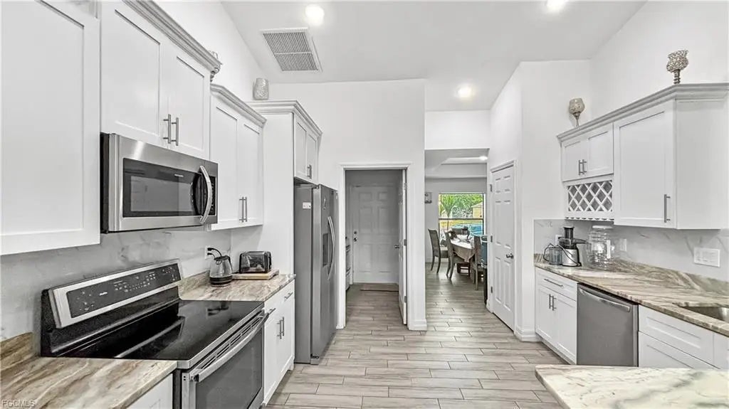 This beautifully maintained 4-bedroom plus den,2 bath,2 car garage,2157 sqft home located in a quiet and rapidly growing area of Lehigh Acres.This thoughtfully designed home features interior porcelain tile floors throughout whole house, wood cabinet with granite countertop, stainless steel kitchen appliances,impact windows. Enjoy the split-bedroom layout offering privacy for the primary suite, which offers a his and hers closets, with a French glass door that provides personal access to the screened lanai. Primary bathroom features a dual sink vanity, tiled shower & tub.Conveniently located near shopping, schools, parks, and with easy access to SR-82 for commuting to Fort Myers or I-75. Whether you're a first-time buyer, investor this home offers exceptional value and is priced to sell.