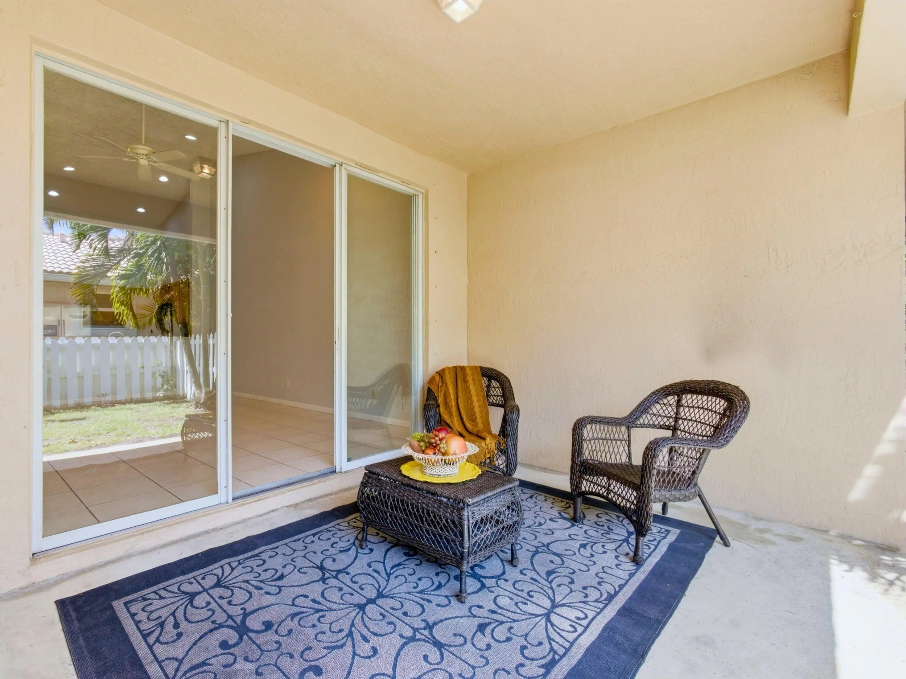 All age community! Light, bright, and move-in ready, this freshly painted villa is the perfect place to call home. Nestled in a secure, gated community just minutes from the vibrant shops and dining of Downtown Atlantic Avenue, you'll enjoy the ideal blend of comfort and convenience. The open, airy layout is designed for both everyday living and entertaining. A generous living area flows seamlessly onto a private patio and fully fenced backyard, perfect for relaxing or letting your pets roam freely. A split floor plan provides added privacy, making it ideal for house guests or roommates. Brand-new appliances, including a range, microwave, and dishwasher, mean this home is as functional as it is inviting.