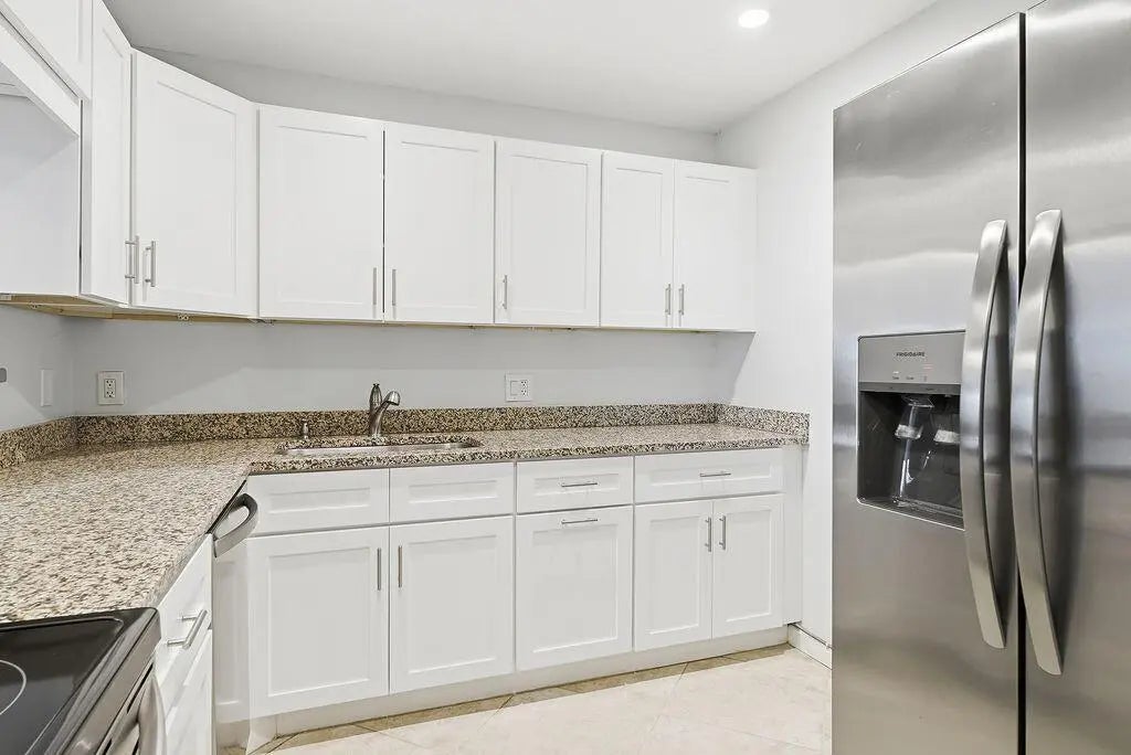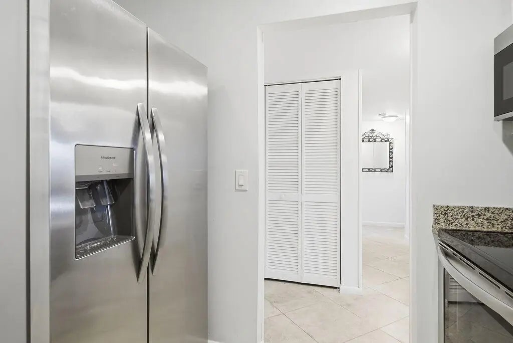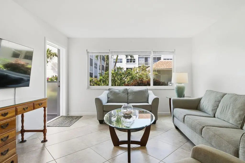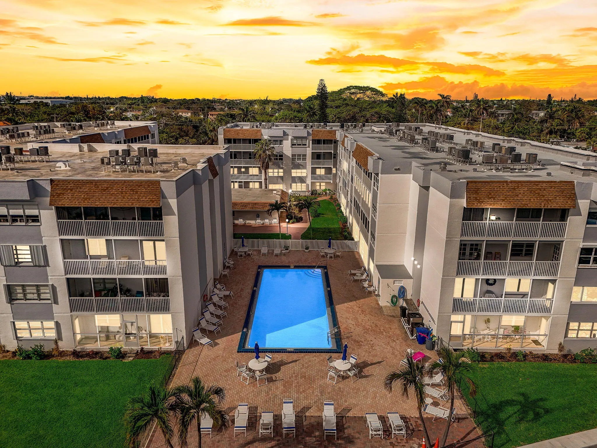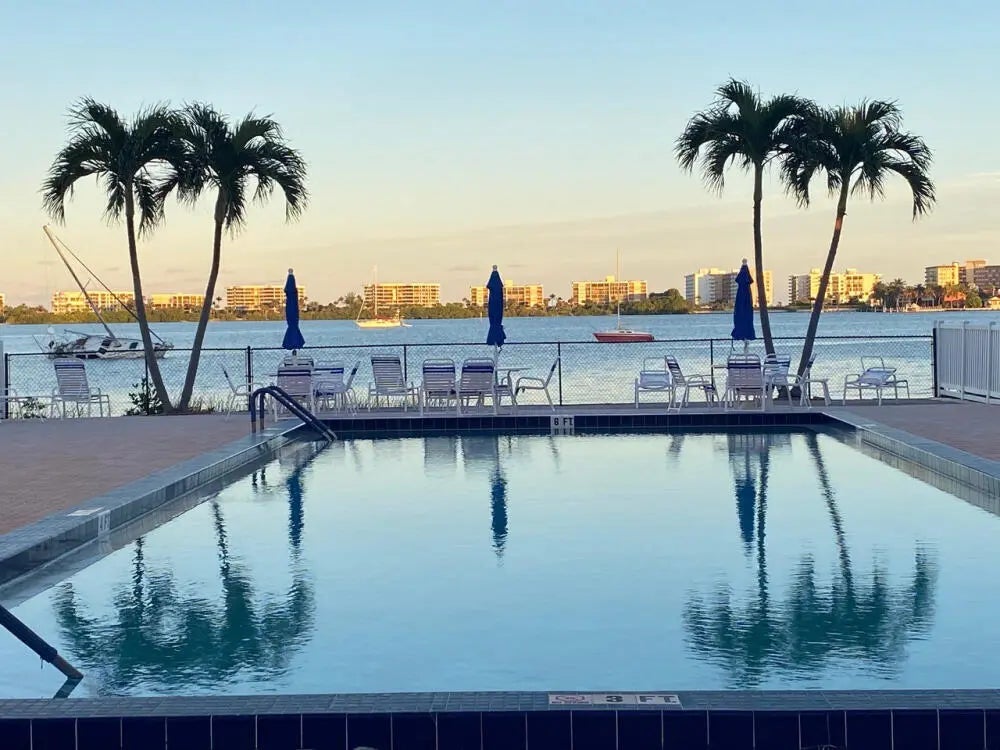 The monthly fees went DOWN!! 444' direct WF buildings with riparian rights & new seawall! Reconstructed in 2023. Over 55 with a sandy beach, exquisitely updated first floor 2 bed 2 bath condo lives like a single family home with direct access to the clubhouse, grills, pool and Waterway from the screened patio. Beautiful furniture, appliances, & fixtures; smooth white ceilings, granite counters, SS appliances, diagonal neutral tile floors throughout. Remodeled guest bath w walk in shower. Pure filtered water flows from the taps in Lake Worth Beach! Impact glass & door. Positioned right between to 2 bridges to the beach! It's time: leave the stress, come decompress LOVE WHERE YOU LIVE!