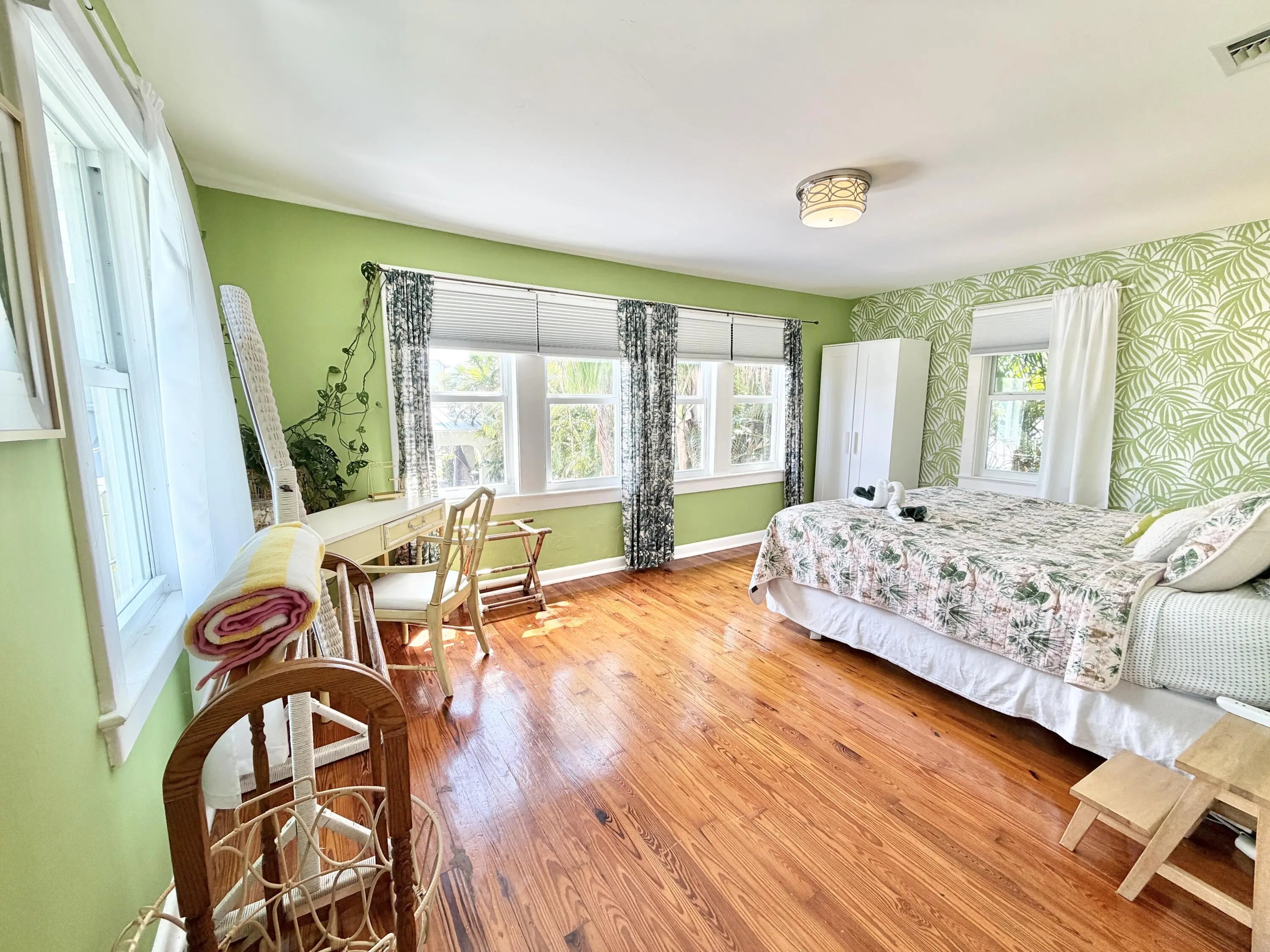 A rare opportunity in the heart of Grandview Heights. This fully renovated historic residence blends timeless character with modern upgrades. The main home offers 3 bedrooms (one smaller, ideal for office/den), 2 bathrooms, plus a separate den/office space providing added flexibility. Features include solid hardwood flooring, updated electrical and plumbing systems, impact windows and doors, and a premium aluminum roof. The detached guest house enhances the property with a 2-bedroom, 1-bath unit upstairs and a separate first-floor efficiency, currently generating approximately $50,000 annually. Garage converted to efficiency adds additional living flexibility. Prime location just minutes to downtown West Palm Beach and Palm Beach Island.