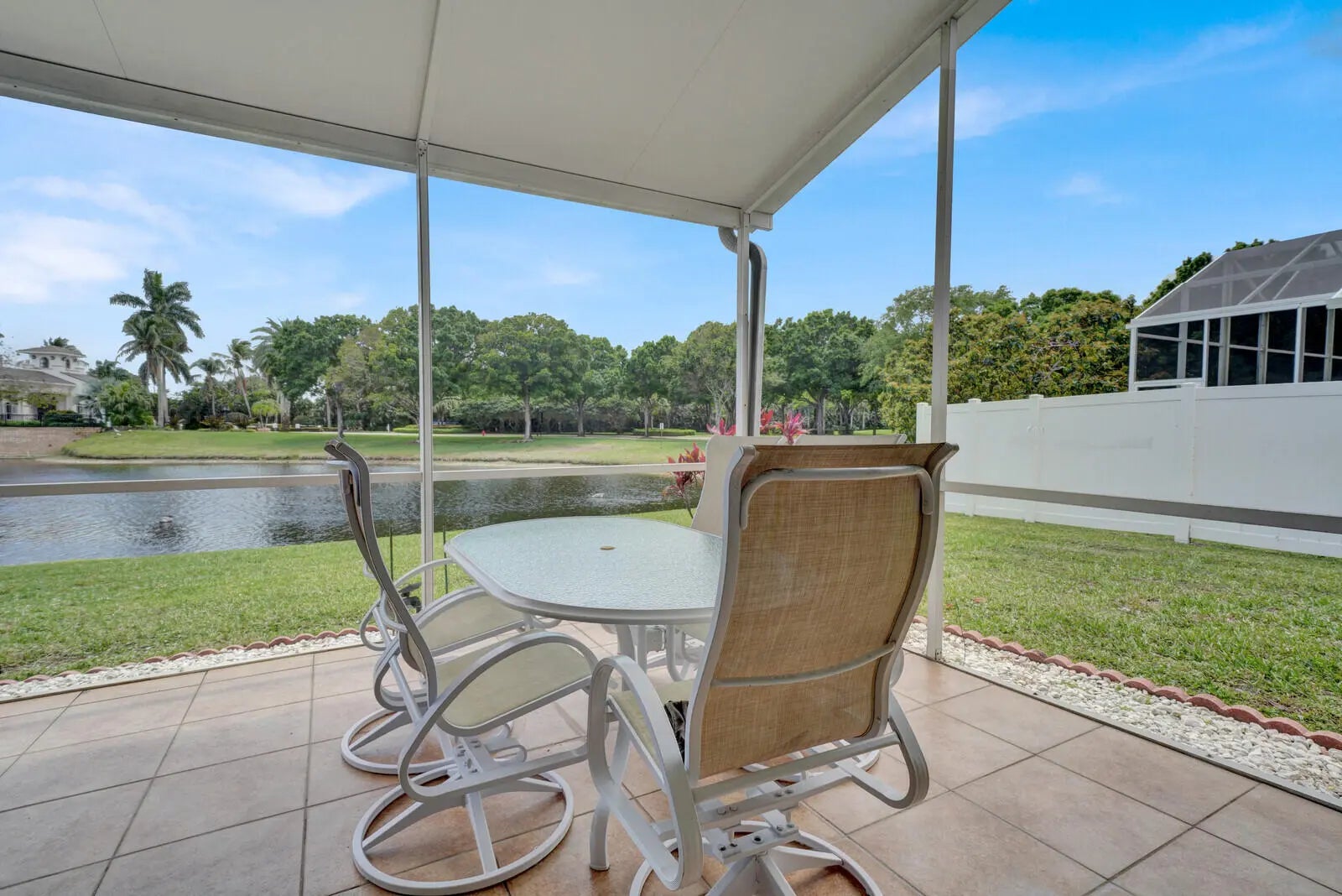 Wonderful opportunity to lease this well maintained waterfront single-family home in the 24/7 guard gated community of Journey's End. This 3 bedroom, 2 bath home with a 2 car garage offers peaceful lake views and an easy, comfortable layout. Inside, you'll find formal living and dining spaces with volume ceilings, neutral paint and tile flooring throughout the main areas. The kitchen is equipped with stainless steel appliances, generous cabinet space and a casual eat-in area that opens to the family room - ideal for both everyday living and relaxed entertaining. Sliding glass doors lead out to a covered, screened patio where you can unwind and enjoy the lake view. The primary suite is spacious and inviting, featuring high quality laminate flooring, sitting area plus large walk in closet. The primary bath includes a double vanity, walk-in tub and separate shower. The two additional, nicely sized bedrooms share a second bath with a double vanity and tub/shower combination. Additional highlights include a laundry room with extra storage, accordion shutters for storm protection, lake fed irrigation system plus a 2- car garage. Rent includes association provided cable and internet plus lawn care. Journey's End offers a beautifully maintained setting with a resort-style pool, clubhouse, fitness center, playground and pickleball, tennis and basketball courts. Conveniently located near shopping, dining and major roadways and zoned for sought after schools including Coral Reef Elementary and Park Vista High School. Pets may be considered on a case-by-case basis (30 lbs or less). Renter's insurance and a minimum 700 credit score is required.