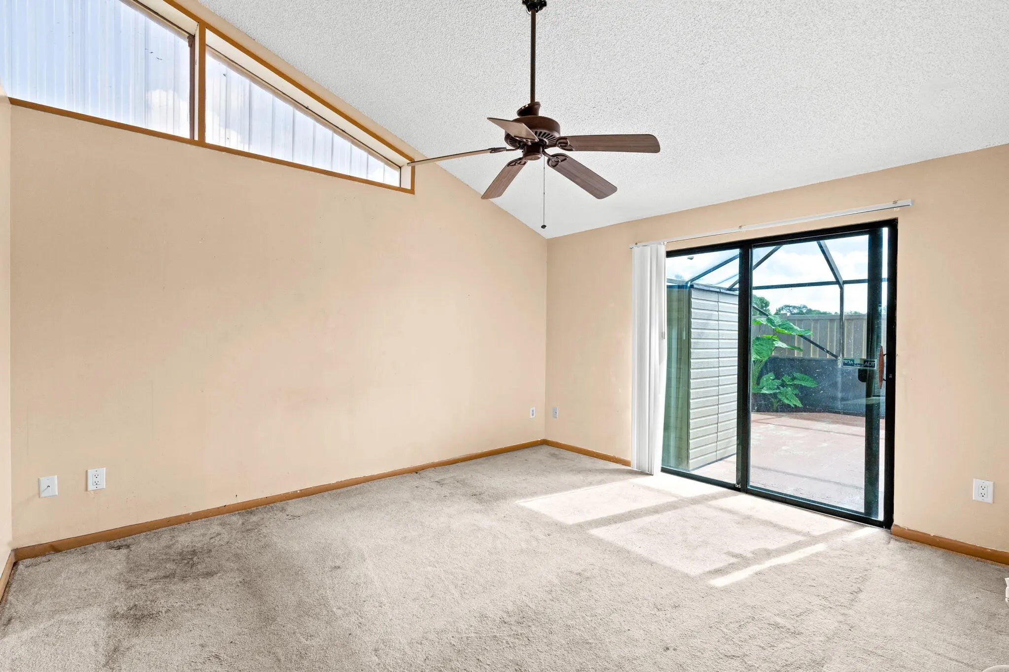 Come see this 3-bedroom, 2-bathroom townhome in the highly desirable Westwood Gardens community in Palm Beach Gardens. Featuring a rare single-story layout, this home offers the perfect blend of comfort, convenience, and low-maintenance living. As you step inside, you're greeted by a bright and open living space with vaulted ceilings and abundant natural light, creating an inviting atmosphere ideal for both relaxing and entertaining. The kitchen is thoughtfully updated with modern cabinetry, sleek countertops, and ample storage, making it as functional as it is stylish. The spacious primary suite provides a peaceful retreat with a large closet and a private en-suite bathroom. Two additional bedrooms offer flexibility for guests, a home office, or family living. One of the home's standout f eatures is the large, fully fenced private patio, perfect for outdoor dining, pets, or creating your own tropical escape. Additional highlights include accordion shutters for hurricane protection and a new A/C system installed in 2021, offering comfort and peace of mind year-round. Located in a well-maintained, pet-friendly community that allows up to two pets with a combined weight of under 50 lbs, residents also enjoy resort-style amenities including 2 pools, tennis & pickleball courts, and scenic walking paths. Please note there is a 2-year waiting period before leasing, making this an ideal option for primary residents or future investment planning. Conveniently situated just minutes from major highways, shopping, dining, and the beautiful South Florida beaches, this property is perfect for full-time living or a seasonal retreat.