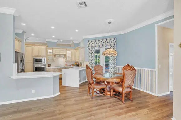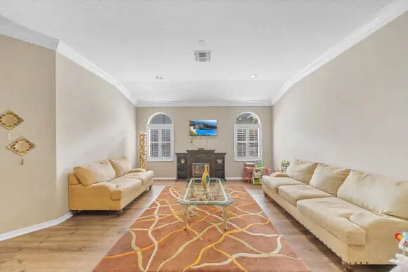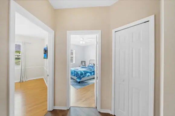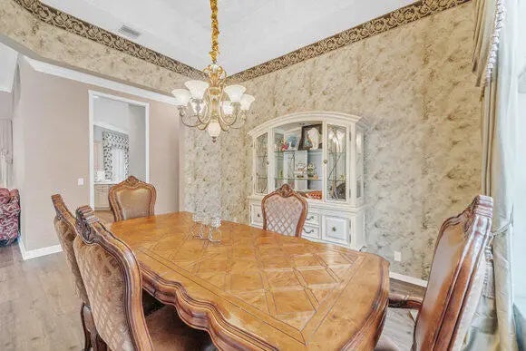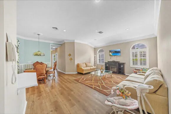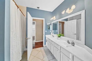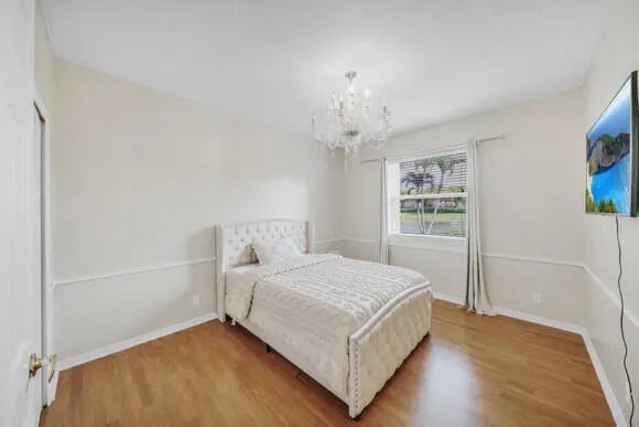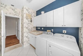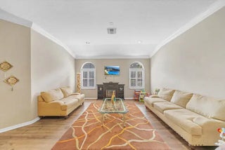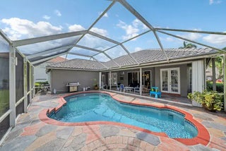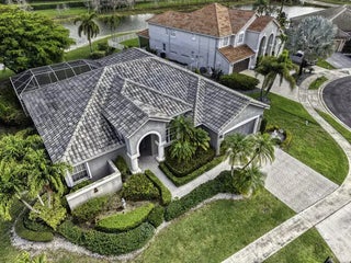 4-bedroom, 2.5-bathroom home is situated on a cul-de-sac. Property highlights include: - Recent Upgrades: New roof (2020). - Kitchen: Renovated with quartz countertops and stainless steel appliances. - Interior: High ceilings, crown molding, and new wood-style flooring throughout. - Outdoor Living: Screened-in patio with a free-form pool and lake views. - Protection: Full accordion shutters.