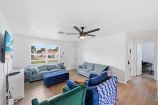 Beautifully updated 3BR/2BA CBS single-family home with NO HOA! This move-in-ready property features 1,281 sq ft, impact windows, new laminate flooring throughout (no carpet), and fresh interior/exterior paint. The remodeled kitchen offers a gas stove and newer appliances (under 5 years). Major upgrades include a 2-year-old roof, new plumbing, new water heater, and solar attic vent. Spacious primary suite with walk-in closet, plus large closets in guest rooms. Enjoy a screened-in patio, oversized backyard with fruit trees, and new PVC fencing—perfect for entertaining. Additional highlights include a laundry/utility room, attached carport, and large driveway. All renovations completed with permits.