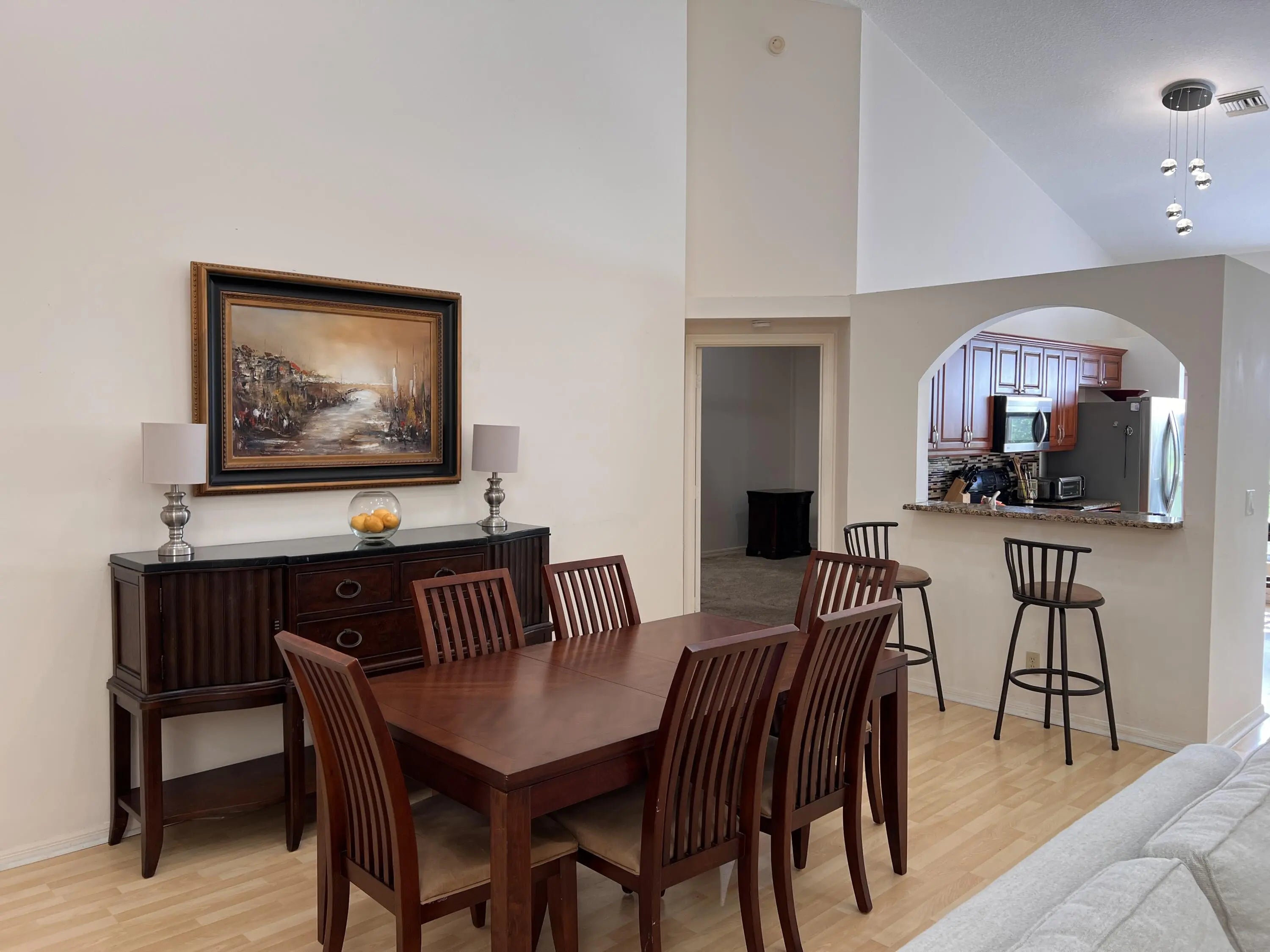 Welcome to this light and bright single-level home featuring vaulted ceilings that create a spacious, open feel. Enjoy peaceful preserve views filled with natural wildlife from your large covered, screened patio — the perfect place to relax and unwind. This pet-friendly 3-bedroom, 2-bath residence includes a 1-car garage and a separate laundry room with washer and dryer for everyday convenience. Offered as a furnished annual rental beginning May 15, 2026 (landlord may consider a shorter term but prefers annual). The home is being freshly painted and most furnishings are new or newer. Professional photos coming soon (primary bedroom not yet pictured). Ideally located in a quiet yet central area close to shopping, dining, and everything you need.