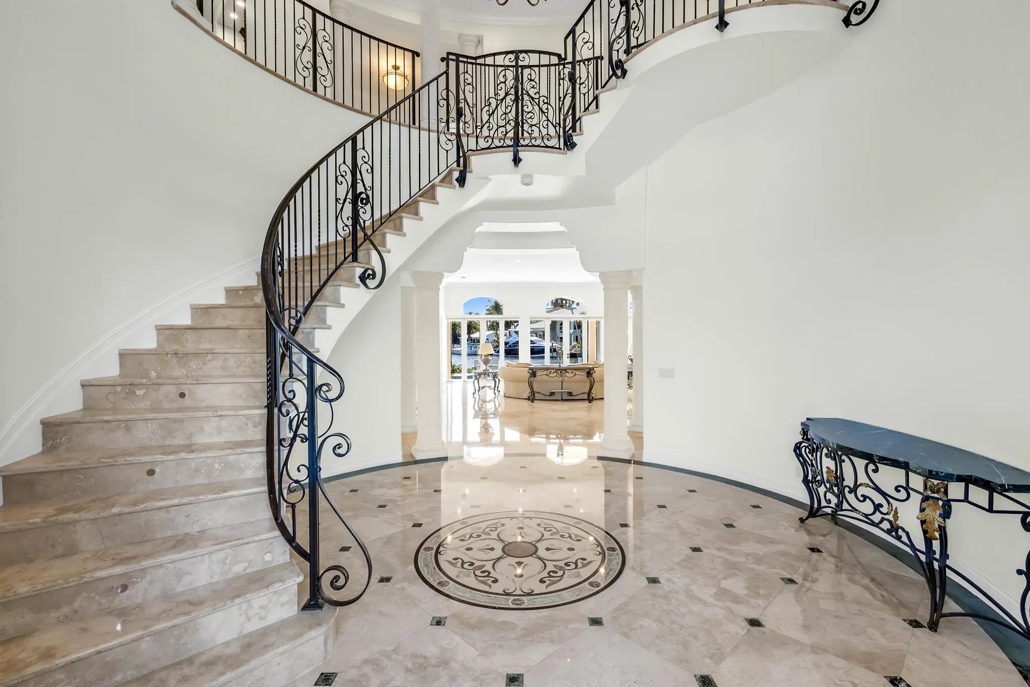 Introducing a true Yachtsman's Paradise, this exceptional waterfront estate is set on a rare point lot offering an impressive 195 feet of dockage with southeast exposure, delivering optimal natural light and refreshing coastal breezes throughout the day. Perfectly positioned on a quiet cul-de-sac, the property offers a heightened sense of privacy within one of South Florida's most desirable boating communities. Designed for the avid boater, the residence features direct ocean access with no fixed bridges and is just minutes to the Hillsboro Inlet, placing the open Atlantic and destinations like Bimini—only approximately 40 miles away—well within easy reach. The expansive dockage easily accommodates a large yacht along with additional vessels such as a sportfish or center console, making it a rare opportunity for those seeking both scale and flexibility on the water. Spanning over 8,400 square feet of interior living space, the home is thoughtfully designed to embrace seamless indoor-outdoor waterfront living. Generous living areas open to expansive outdoor spaces, creating the perfect setting for entertaining, relaxing, and enjoying panoramic water views. A three-car garage further enhances the property's functionality, completing this extraordinary offering. This is a rare convergence of location, dockage, and lifestyle—crafted for those who demand effortless access to the water without compromising on luxury or privacy.