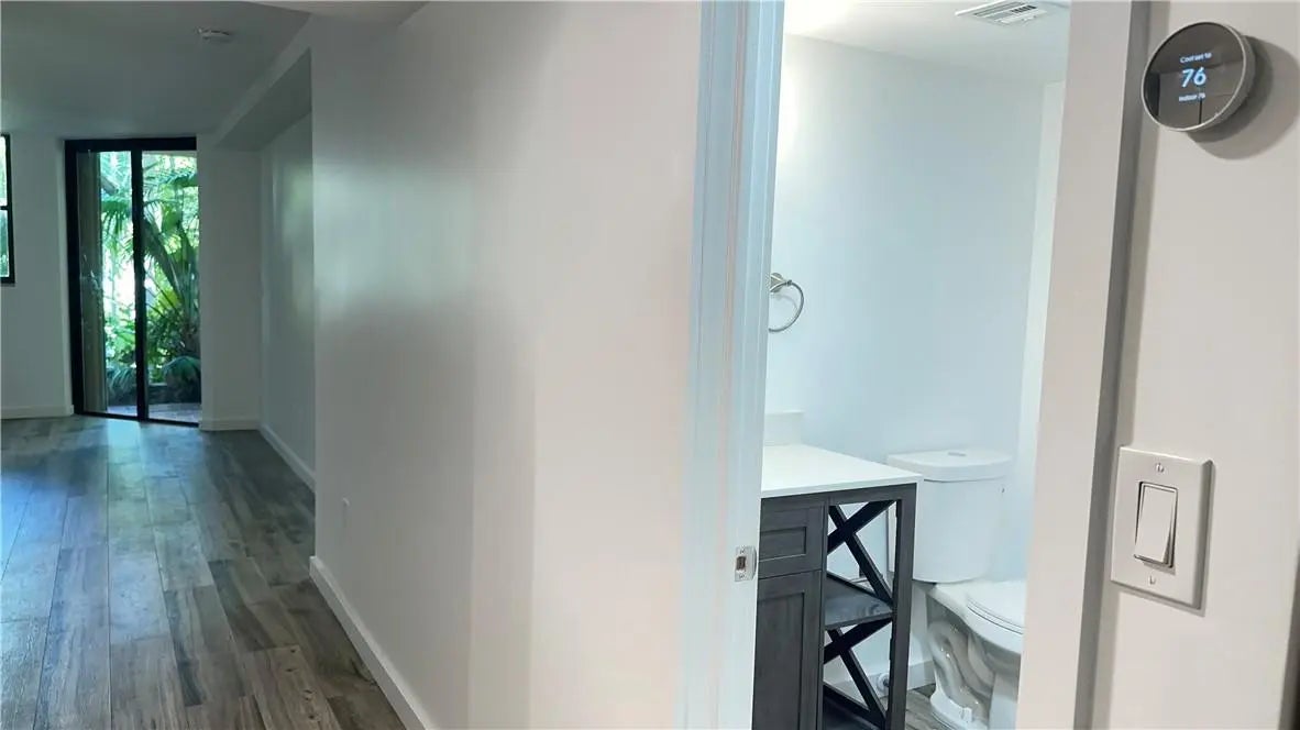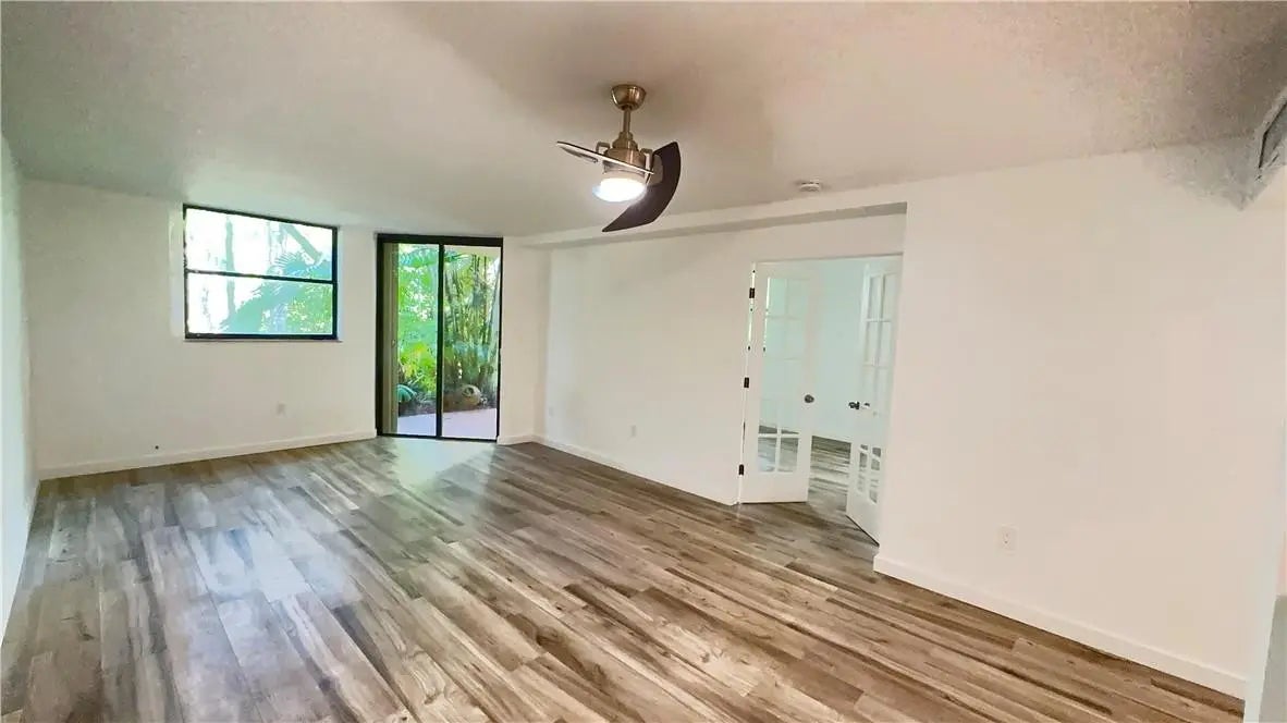 Literally, remodeled down to the studs...this overhauled gem has been professionally renovated, including drywall, electrical, flooring, ceilings, both bathrooms too. In unit washer/dryer. Open kitchen has all stainless steel appliances and a discrete dishwasher that matches the cabinets. AC and smart thermostat. The backyard oasis feels extra secluded on this corner unit; surrounded by lush greens and a serene walkway that lets out to a lazy river, nearby pools and gym. All situated in a convenient, first floor location, adjacent to your private parking spot and steps away from your private access to the beach right next door. For you, a turn key rental dream just off the ocean. Association requires 1 month as security, this is in addition to first last and security.