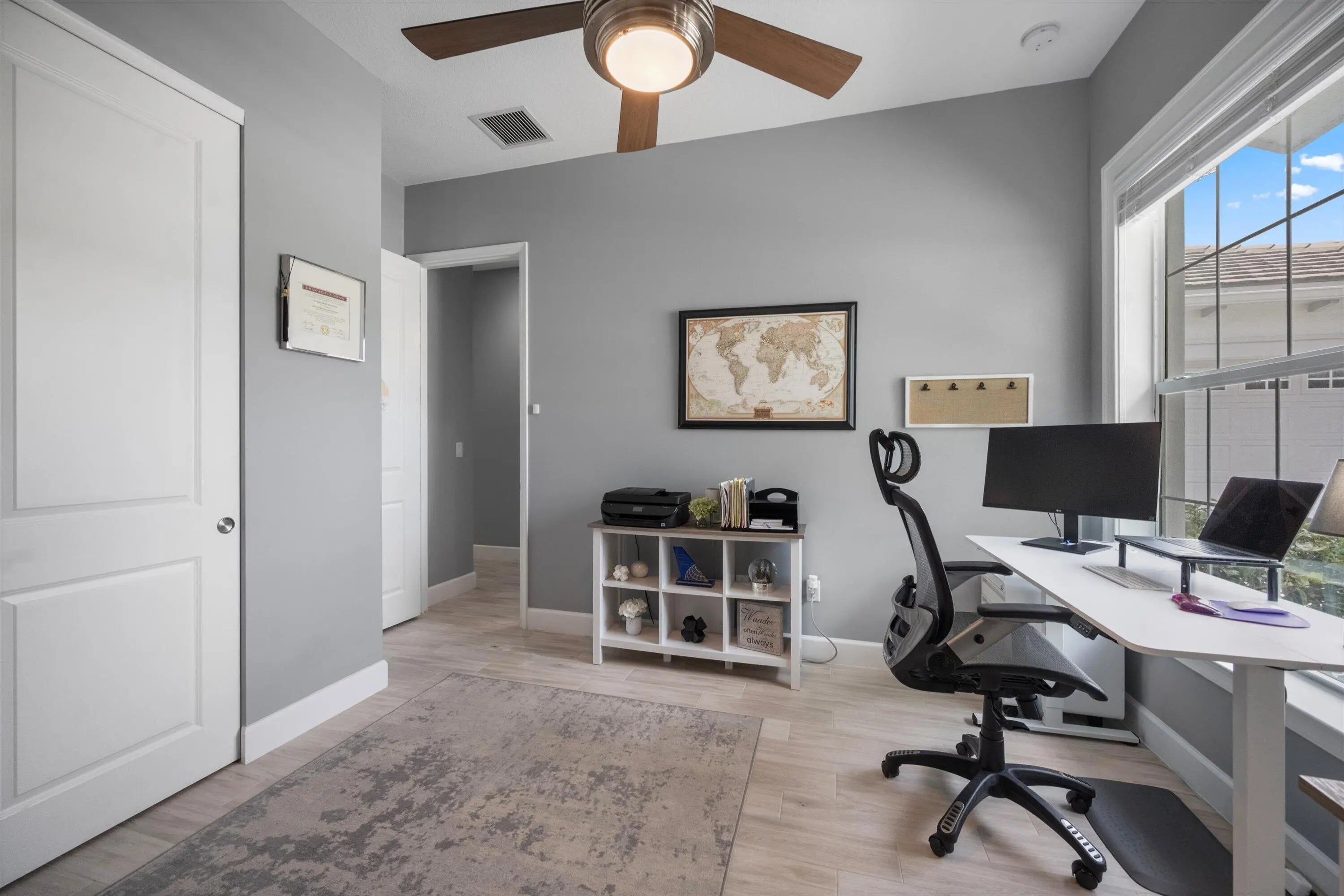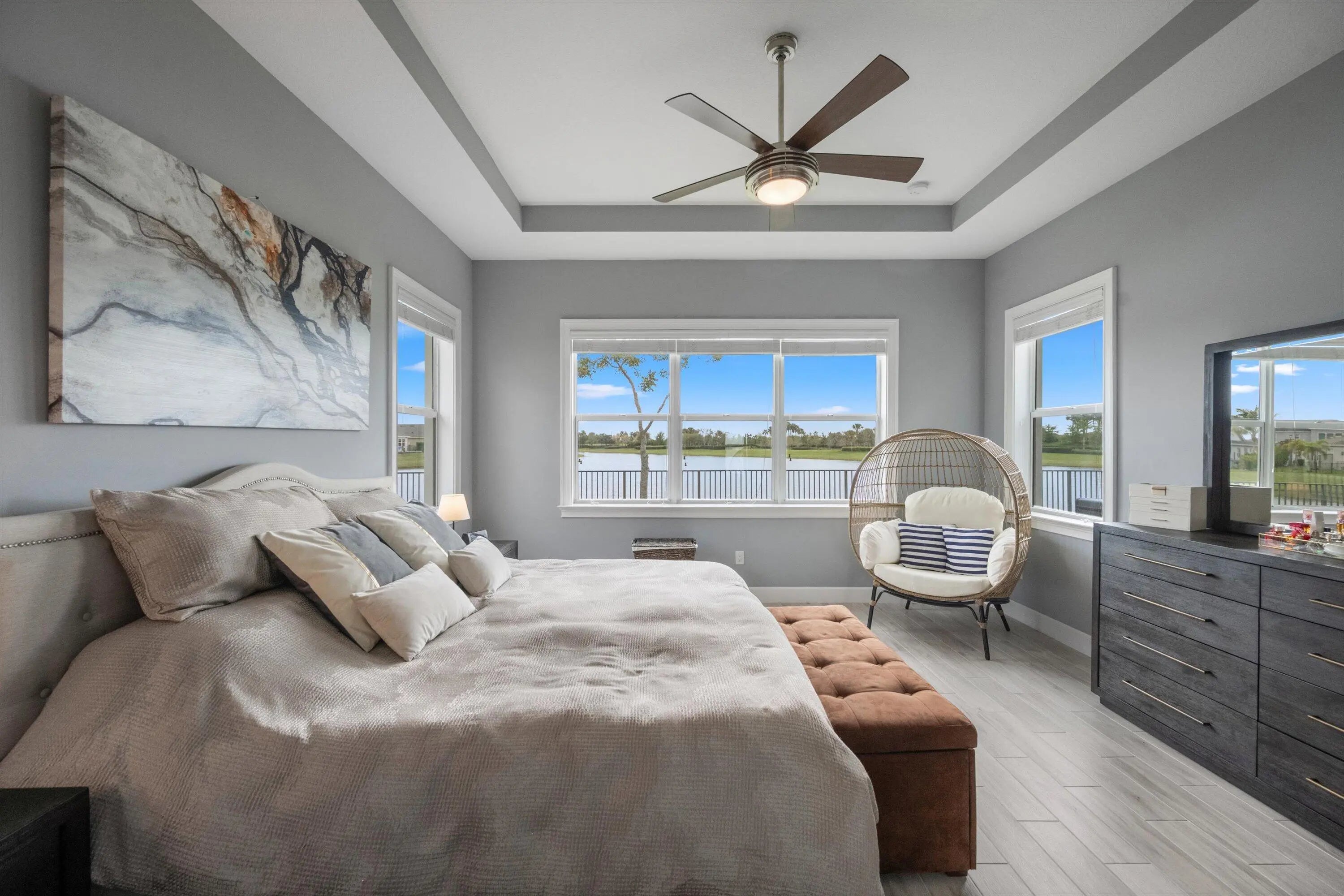 Welcome to the highly sought after Hammocks of Westlake. This stunning Sandhill model offers 3 bedrooms plus a den with French doors that can easily be converted into a 4th bedroom, along with 3 full bathrooms and a spacious 3 car garage. The home also features a larger driveway, along with a beautifully finished garage complete with new epoxy flooring and added storage racks for extra functionality. Enjoy one of the best lake views in the community right from your backyard, creating the perfect setting for relaxing or entertaining. The outdoor space is complete with a motorized screen, gas line connection for grilling, and a fully fenced yard with plenty of room to add a pool. The kitchen is a true showstopper featuring white shaker cabinets, quartz countertops, a beautiful backsplash, an extended island, new gas range, and upgraded appliances. All bathrooms have been tastefully upgraded, and the home also includes a full-house water purification system along with many additional upgrades throughout. Meticulously maintained and truly move in ready, this home reflects pride of ownership at every turn. Situated across from open green space with no adjacent home in front, and located in one of Westlake's most desirable neighborhoods, this is an opportunity you do not want to miss. Located in Westlake, Palm Beach County's newest and fastest growing city, residents enjoy a vibrant lifestyle with golf cart friendly living and resort style amenities including Adventure Park with pools, splash pad, playground, BMX pump park, basketball courts, fitness trail, and more. This is more than just a home, it's a lifestyle you do not want to miss.