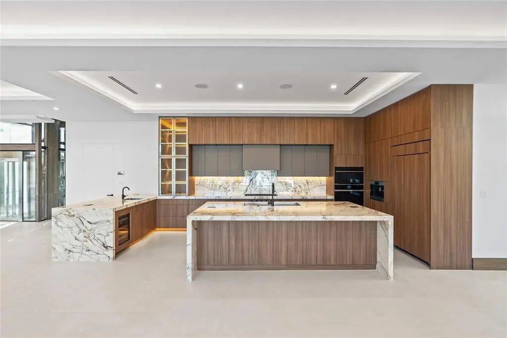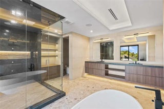 This newly constructed waterfront modern home by Soverns Developers combines luxury with a prime location and a newly constructed 80' seawall. Designed by the award-winning Barretta and Associates, the residence boasts architectural excellence with 5 bedrooms, 5 full bathrooms, 1 cabana bath & 1 powder room. The main suite offers a private balcony, while the VIP suite ensures ultimate comfort. A tastefully appointed home office and a chef-inspired kitchen with Wolf and Sub-Zero appliances elevate the interior. A 3-stop glass elevator connects each floor, leading to a rooftop terrace with breathtaking views. Outside, enjoy a custom pool, spa, and a covered terrace with a built-in summer kitchen, ideal for outdoor entertaining. A 3-car garage adds convenience to this home of pure elegance.