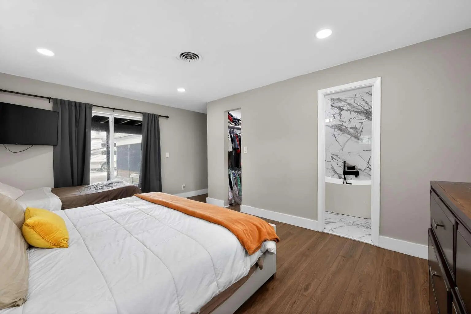 LOCATION, LOCATION, LOCATION! Rarely available, No HOA, perfect investment property for Airbnb, rental, or primary residence situated on a massive .23-acre corner lot, move-in ready 3-bedroom, 2-bathroom CBS construction home located just 1 mile (5 minutes) from the Ocean. Prime location close to world-class dining, shopping, and local amenities including golf courses, ½ mile to boat ramp, yet tucked away in a quiet residential community called Pleasant Ridge. This property offers a secluded sanctuary right in the heart of the action. Home boasts a bright, split floor plan with 3 large bedrooms, each with spacious closets, and 2 fully modernized bathrooms including a master ensuite with soaking tub. New waterproof laminate flooring throughout the home. Large lot with front, rear, and side yard space. A convenient concrete circle driveway leading to a one car garage, along with space on the property to park your boat, trailer, or RV. The new kitchen includes all new cabinetry, plenty of countertop space, double oven, built-in microwave, large pantry, dishwasher, and refrigerator. In the rear of the home you can relax in the large covered screened patio or hang out in the private hot tub. The lot has plenty of space to add a large pool in the future. Whether you are looking for a primary residence or a high-performing investment, Don't miss this rare opportunity to own a private piece of North Palm Beach with unlimited potential!