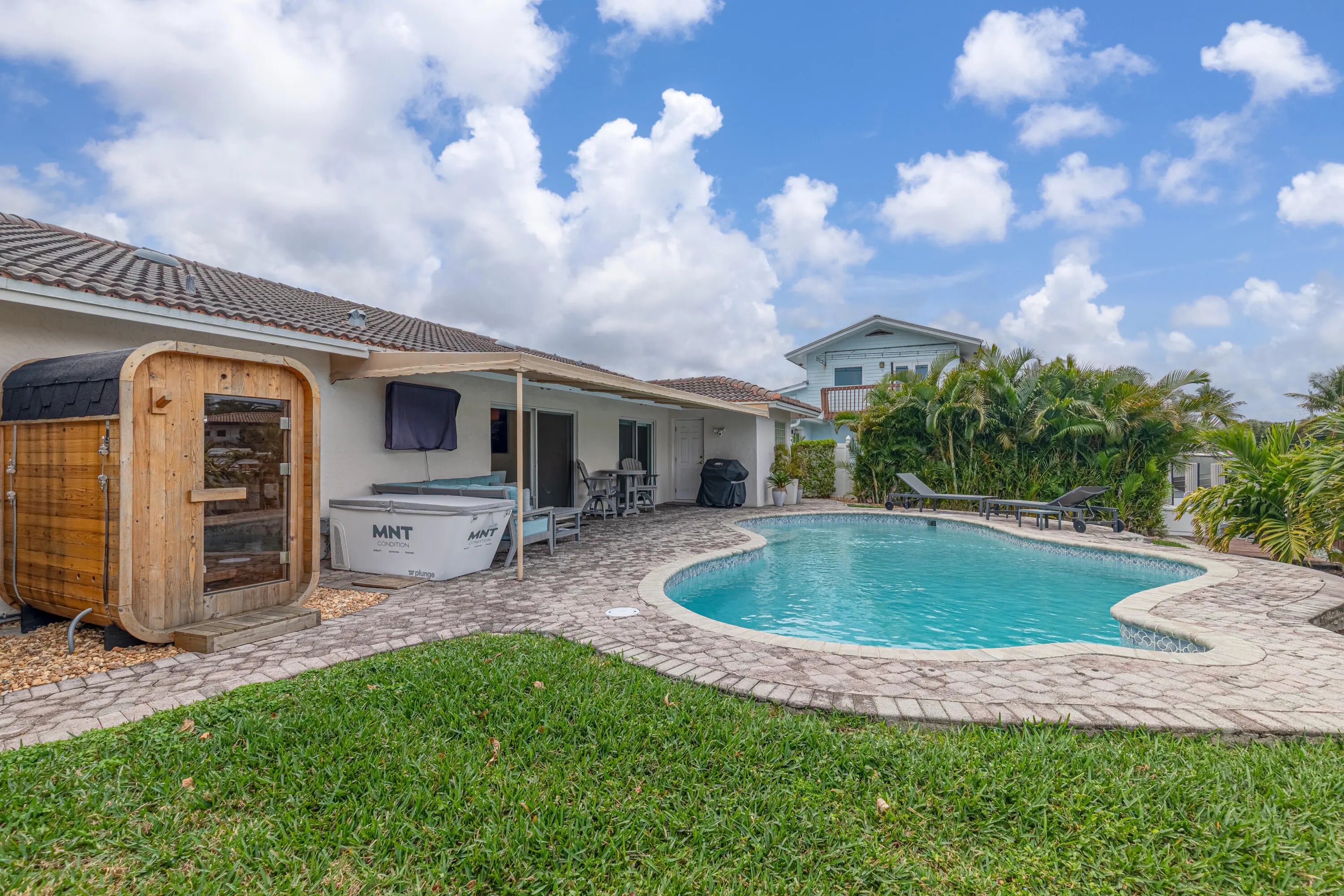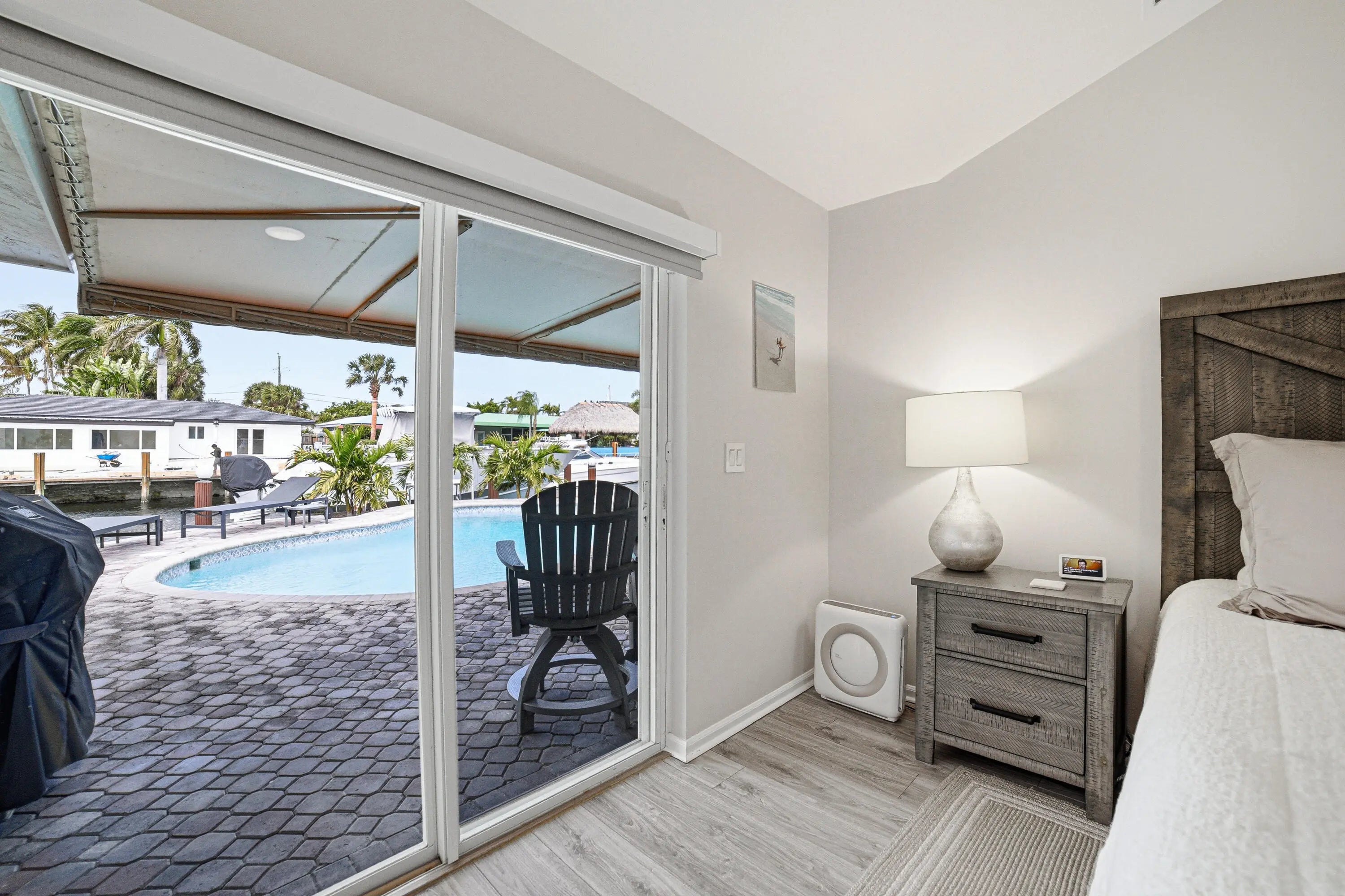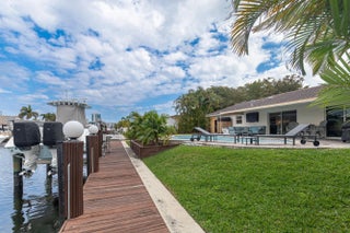 Deep-Water Canal • No Fixed Bridges • Minutes to Hillsboro Inlet. True South Florida boating lifestyle with a 13,000 lb boat lift accommodating up to a 32-foot vessel -- direct ocean access in just minutes. This renovated 3BR / 3.5BA home offers soaring 12' ceilings, a bright open layout, granite countertops, and solid wood cabinetry. Each bedroom features its own private bath and walk-in closet, plus a separate powder room for guests. The spacious primary suite opens directly to the pool and dock and includes dual sinks, a jacuzzi tub, and walk-in shower. Enjoy the covered patio, private pool, and exceptional waterfront setting designed for both entertaining and everyday luxury living. Location. Access. Lifestyle.