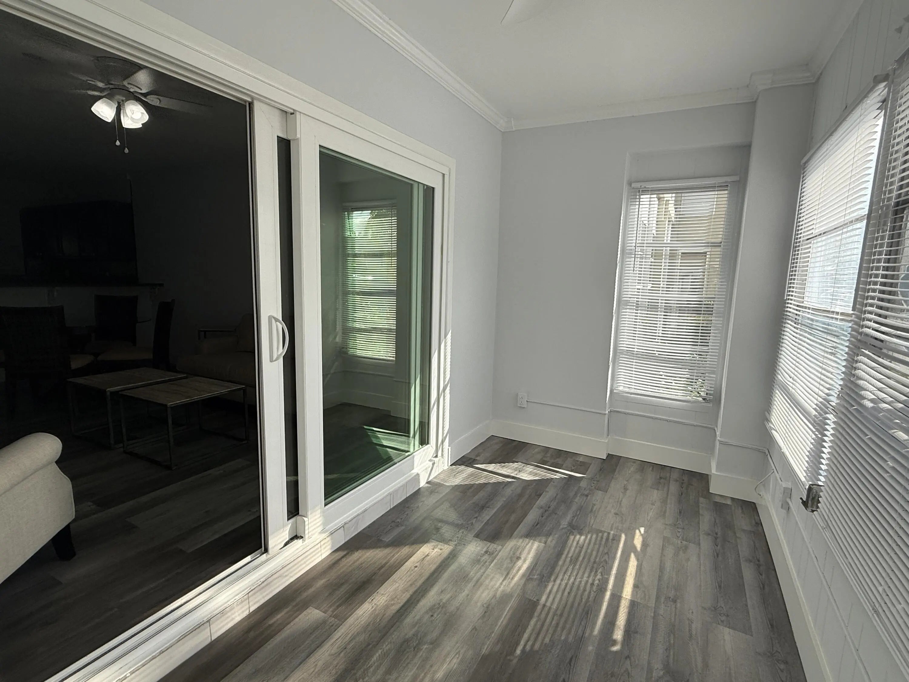 CALL LHP HOME. 55+ SPACIOUS CORNER 1ST FLR 2/2 THISCLOSE TO POOL & COMPLEX AMENITIES. IDEAL SPLIT BEDRM PLAN W/ 1 BEDRM W/ ENSUITE TUB/SHOWER COMBO BATH, WALK IN CLOSET. FRONT & BACK DOOR EXITS. POOL VIEWS. WIDE SLIDING GLASS DOORS OPEN TO LG UNDER AIR FLORIDA ROOM. CENTRAL A/C, IMPACT WINDOWS/DOORS NEW FAUX GREY WOOD PLANK W-T-W VINYL FLOORING, DISHWASHER, SIDE-BY-SIDE FRIDGE W/IN DOOR DISPENSER. INCLUDES MOTORIZED QUEEN BED, BEIGE LEATHER SOFA, MARBLE COFFEE & SIDE TABLES, DINING TABLE W/ 4 CHAIRS, MOTORIZED TUB CHAIR LIFT. SHORT WALK TO SHOPS, EATS, PUBLIC TRANSPORT, & FREE LOCAL BUS W/ 3 MILE RADIUS OF SERVICES. LIBRARY, FIRE DEPT, POLICE (24 HR MONITORING OF NEIGHBORHHOD) TENNIS, PICKLEBALL, PARKS, PRIVATE LHP BEACH, & OTHER TOWN AMENITIES CLOSE BY.