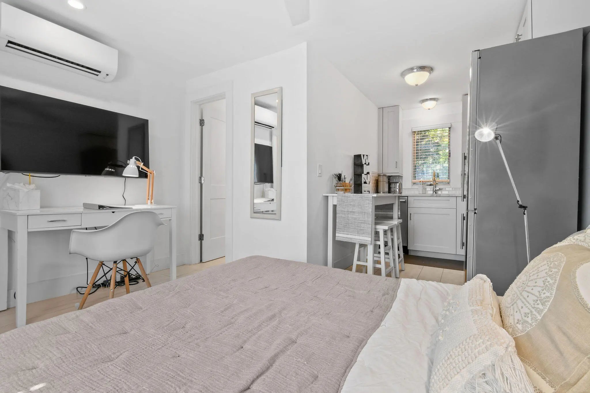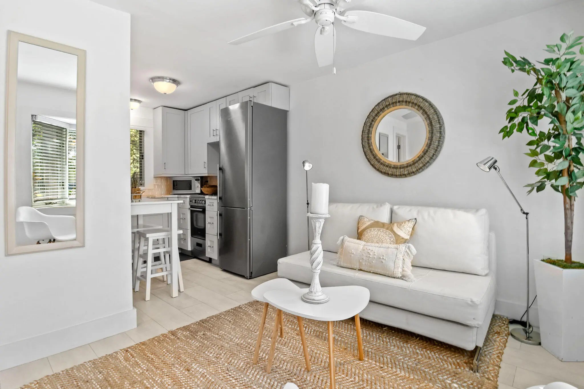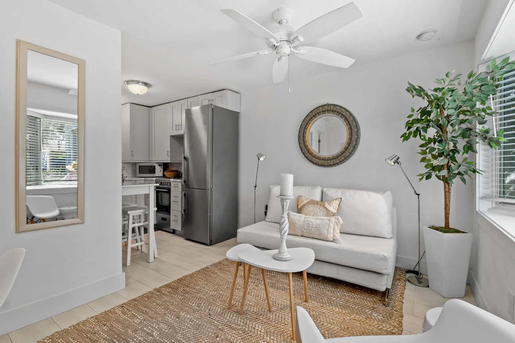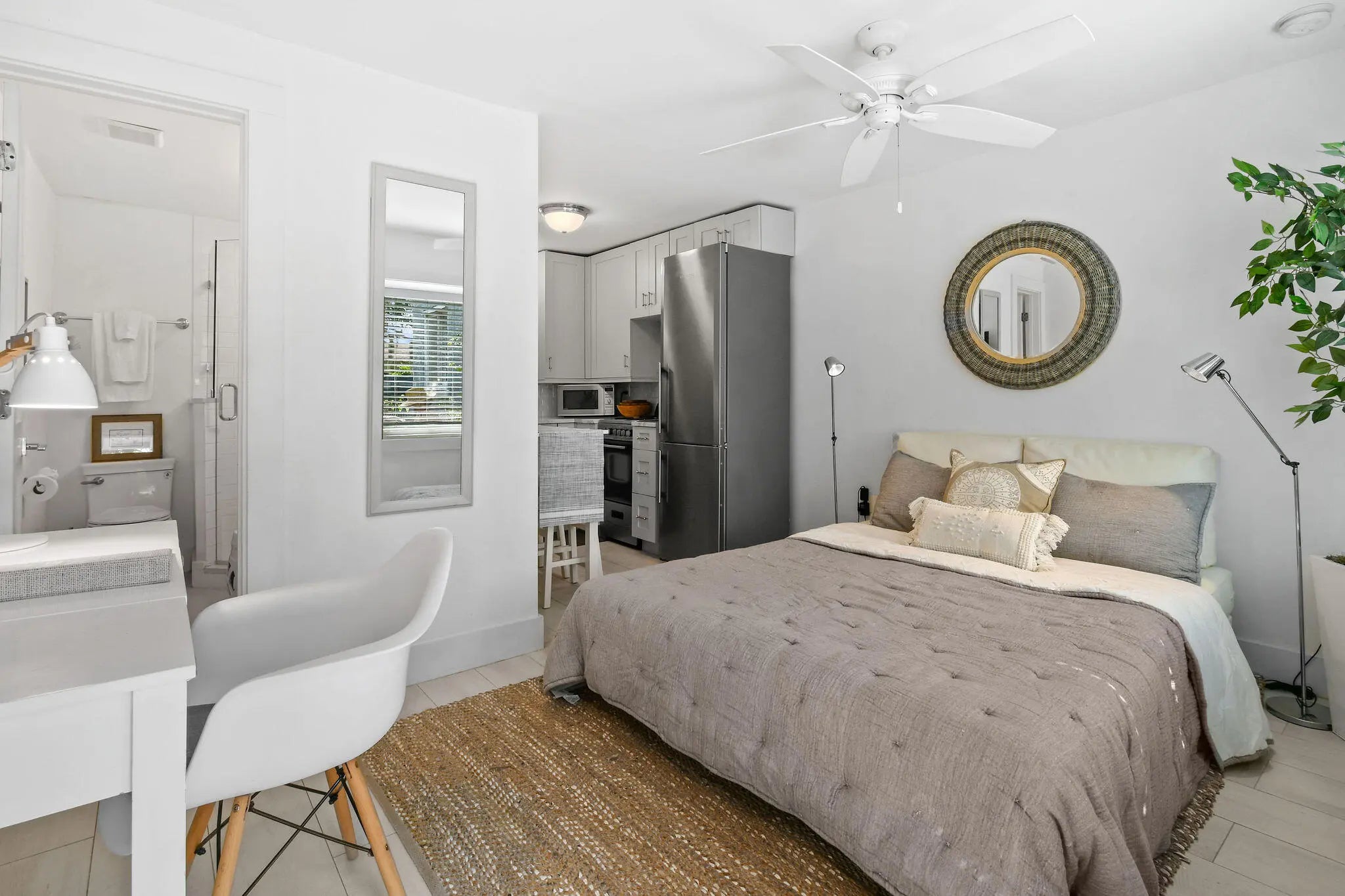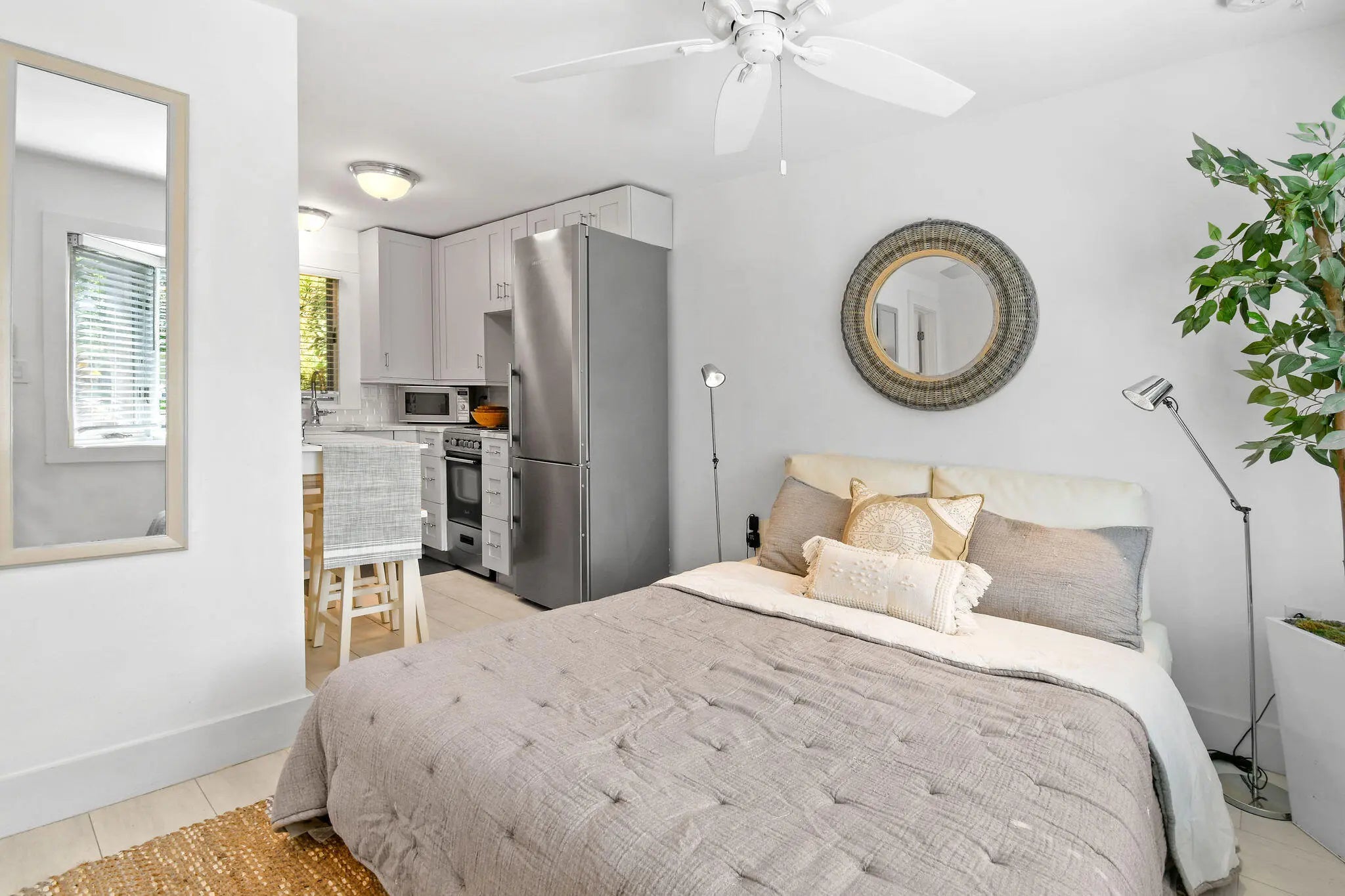 Modern and beautifully appointed studio apartment nestled within a stunning historic Mediterranean building in coveted Parrot Cove neighborhood. One of only 3 exclusive units, this chic residence blends timeless character with high end contemporary finishes. This unit features a full kitchen with premium appliances and a sleek full bathroom. Natural light and architectural charm create a warm, inviting atmosphere that feels both sophisticated and comfortable. Enjoy morning coffee or evening breezes from the lovely front porch, perfect for relaxing in this picturesque setting.