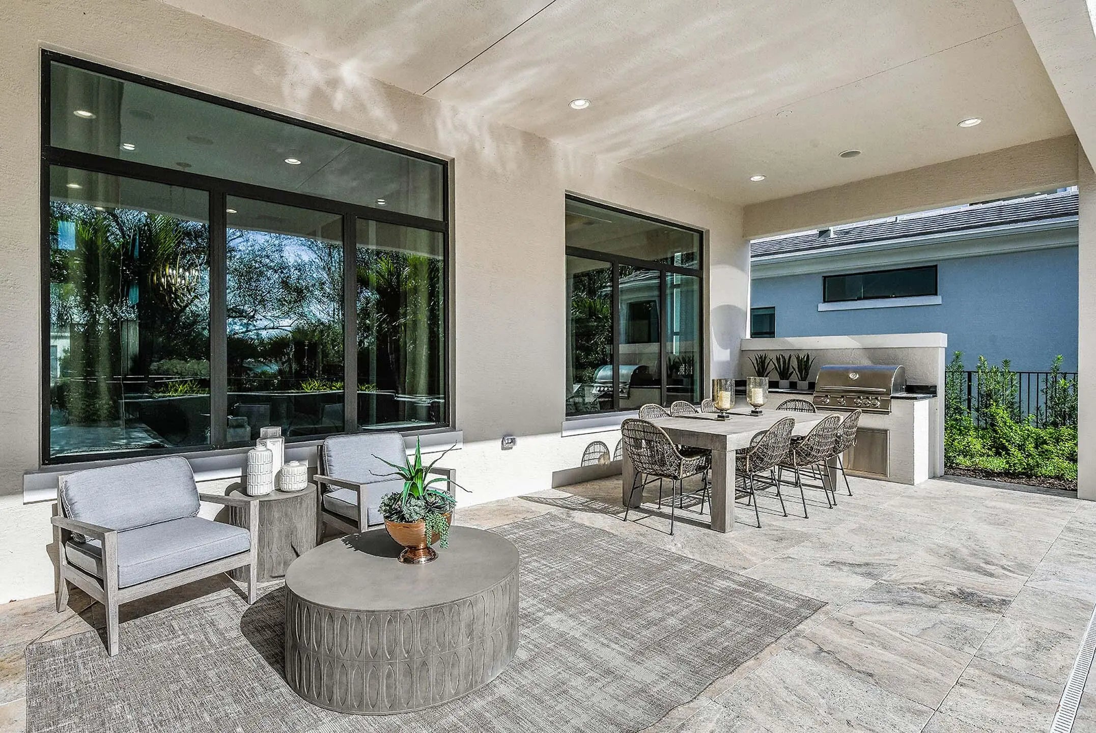 This West floorplan also features Summer Kitchen, Owners Bath with Free Standing Soaking Tub, Gas Stub Out for Future Pool Heater and a gas tankless water heater. The open-concept layout centers around the family room with a linear fireplace. Artistry Palm Beach offers new homes in a prime Palm Beach Gardens location near top beaches, shops, restaurants, and entertainment. Residents enjoy easy access to Alton Town Center, Gardens Mall, Abacoa, golf, tennis, and highly rated schools like Franklin Academy. Photos of a decorated model home are for reference only. Actual home will differ.