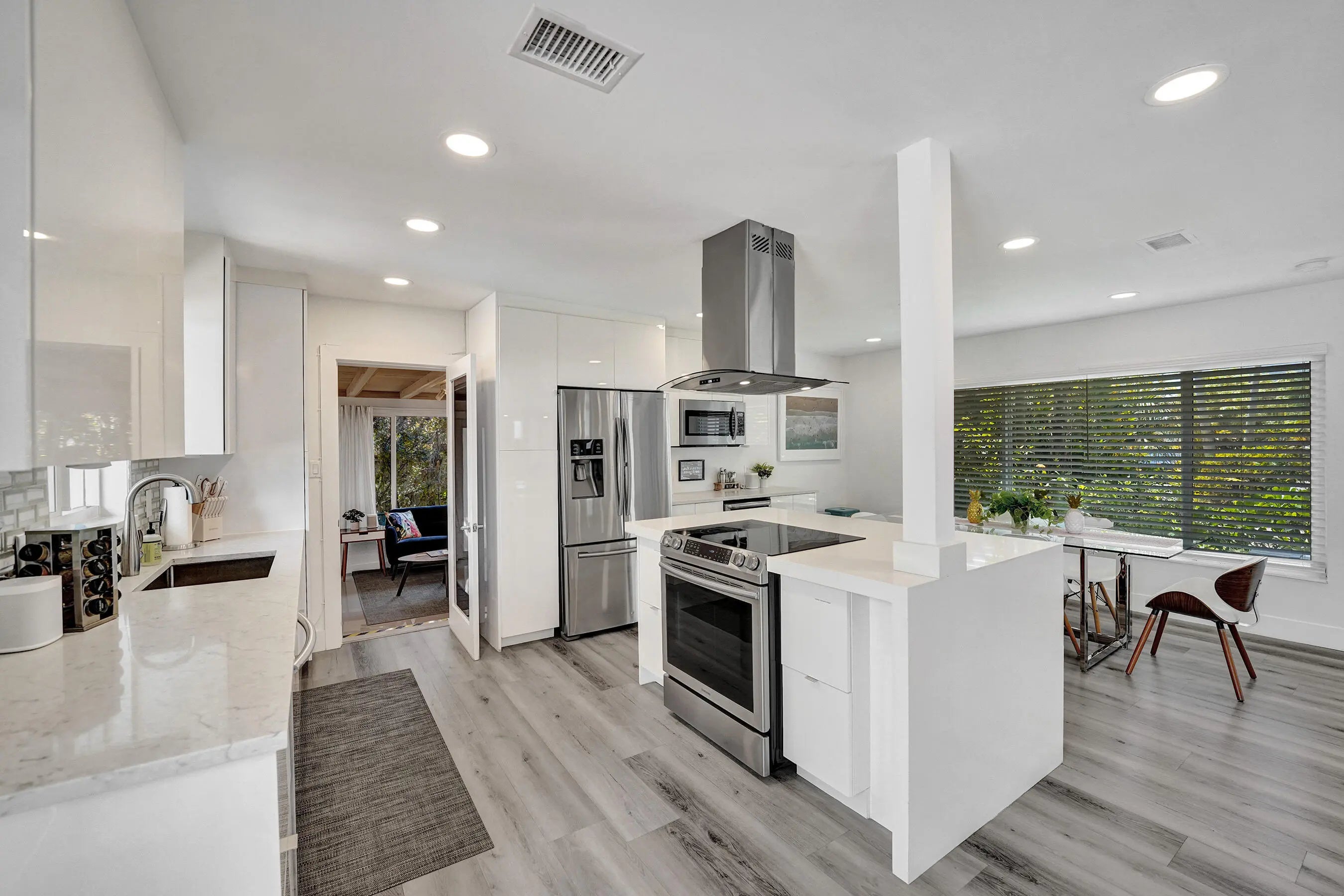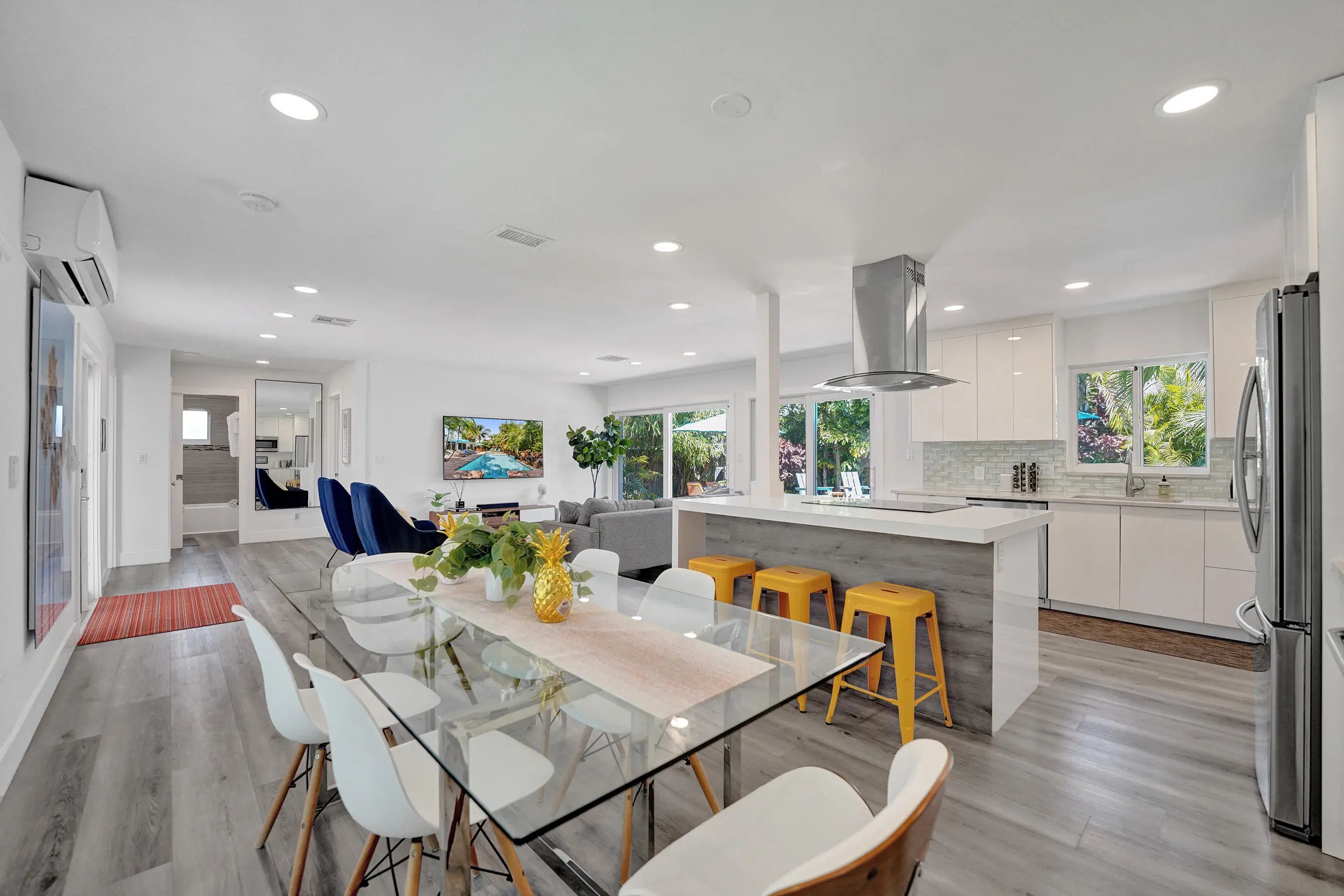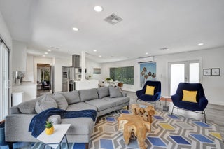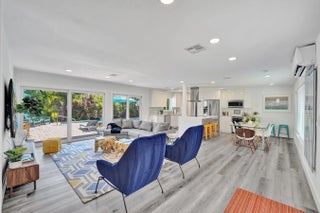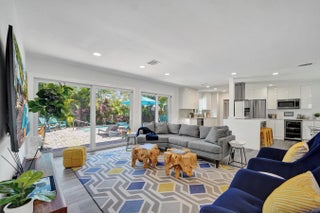 Exquisitely renovated 3BR|3BA POOL HOME in East Wilton Manors. Contemporary layout with seamless indoor-outdoor living. Custom island kitchen with quartz counters and Samsung appliances opens to a spacious great room. Formal dining overlooks tropical landscaping. Private fenced yard features a resort-style pool with sun shelf and waterfall along with a Tiki Bar. All bedrooms have en-suite baths and outdoor access. Third suite with private entrance ideal for guests or office. Impact windows and doors. Close to Wilton Drive and beach!