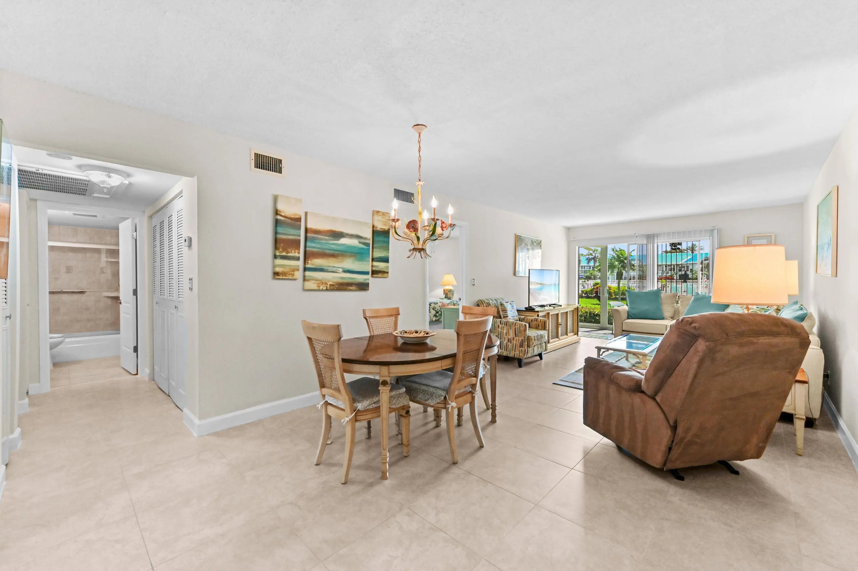 Welcome to Queens Cove House Condo in the highly desirable Crown Colony Club, a 55+ community offering coastal living at its finest! This charming condo features a convenient 1st-floor entry and offers 2 bedrooms and 2 bathrooms. Step inside through a welcoming foyer entrance that opens to a spacious dining and living area, complemented by tile flooring throughout for easy maintenance. The kitchen is equipped with appliances and ample cabinet storage, making it both functional and practical. Ideally located between the Intracoastal Waterway and the Atlantic Ocean, this property offers a private deck and direct beach access perfect for enjoying peaceful mornings and relaxing evenings. Experience breathtaking sunrise and sunset views that will become your daily serenity. Residents of this well-maintained community enjoy a variety of amenities, including boat docks, a yacht club, a clubhouse, and a fitness center, all designed to enhance a vibrant and active lifestyle.
