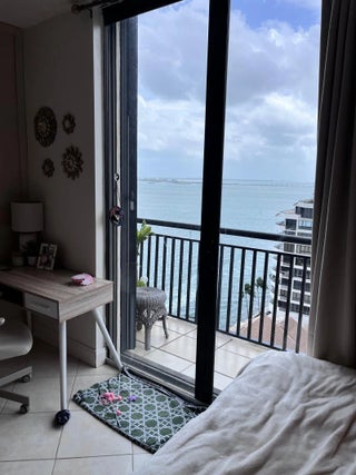 Bright studio apartment with beautiful dual views of the water and the Brickell skyline, located on the private, gated island of Brickell Key. Apartment has updated bathroom and recent paint and feature wall. The apartment has a balcony where you can have a lounge chair and enjoy the sun and water views. The island has 24-hour security, so it's a very safe and peaceful place to live. Brickell Key also has a central park with fountains and a playground, and hosts monthly community events like free outdoor concerts. The island is mostly residential, but still has everything you need right there, including an Italian restaurant, sushi restaurant, cafe, supermarket, vet, and beauty salon.