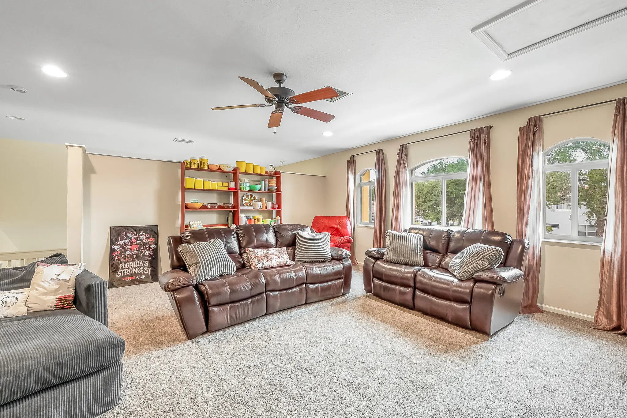 Beautifully Maintained and Updated 3 Bed (All on the Ground Floor), 2 Bath, 2 Car Garage CBS Home. Volume Ceilings, Large Second Floor Loft Which Could be 4th Bed. Updated Kitchen 2022 Features Wood Cabinets, Butcher Block Counters, Large Island, and is Open to a Second Living Area Making this the Perfect Place for Entertaining. Master Bedroom Features Walk-In Closet and Secondary Closet, Ensuite Updated in 2022 Master Bathroom with Tub in Shower and 2 Separate Vanities. The Backyard is Fenced with a Covered Patio. Tesla Solar 10kw System in 2021 with Two Battery Storage System that was Upgraded 6 Months Ago with 2 Powerwall 3. The Newest Batteries for Hurricane Back Up Power Storage. 80-Gal Water Heater in 2020, New Washer and Dryer. Bent Creek / Citrus Isle is a Lovely 99-Home Gated Community with a Resort-Style Pool. Close to Wellington Green Mall, Wholefoods, Green Market, Shopping, Restaurants, 441and the Turnpike. HOA Fee Includes: Landscaping, Security and Community Pool.
