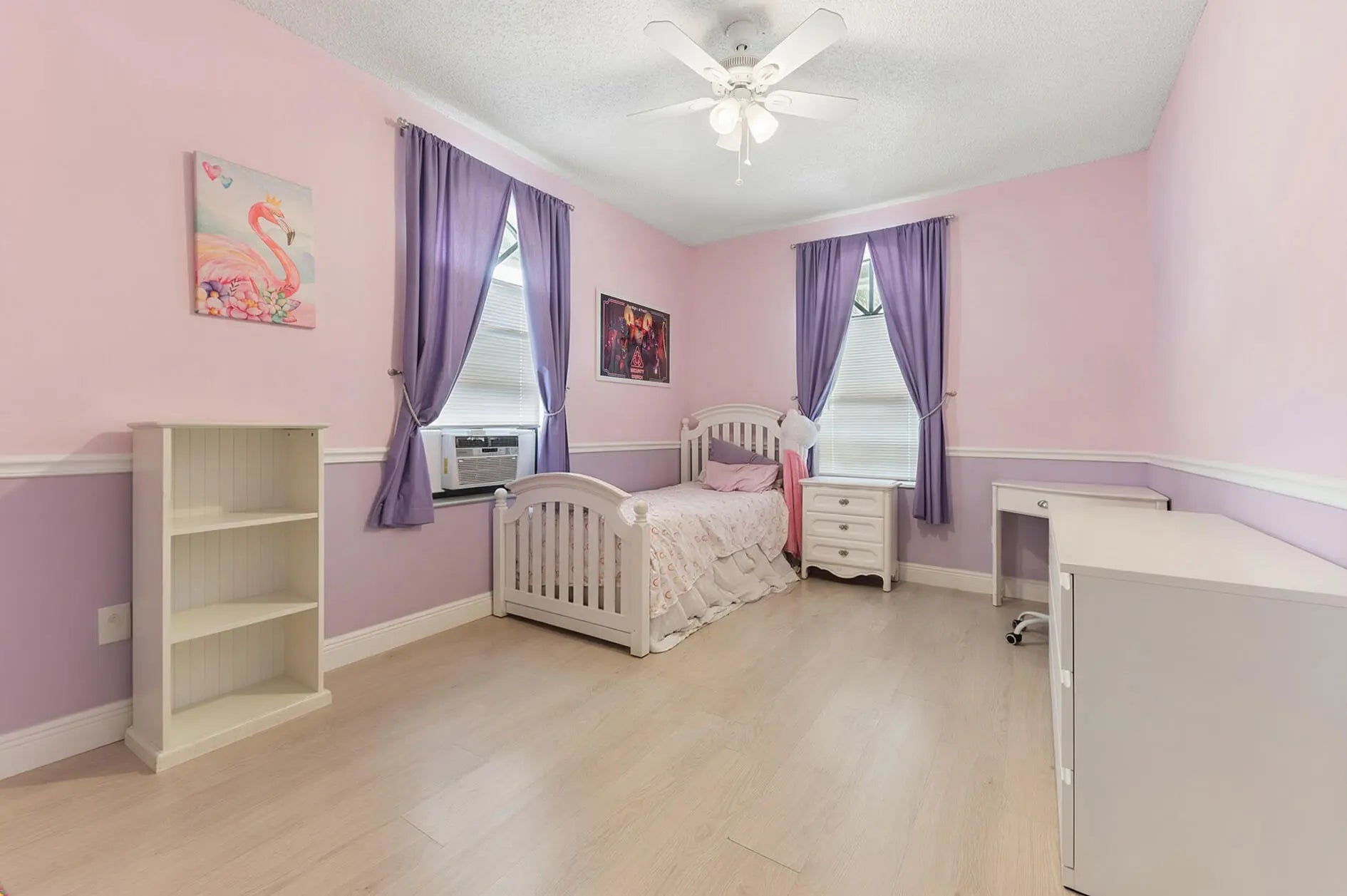 Fantastic 4 bedroom /3 bath in the Highly desired East Gated community of Boca Lake Estates, An Open Floor plan, with vaulted ceilings, stone working fireplace, Custom floor to ceiling bookcase, Hurricane shutters complete! Walk or ride your bike to the new Pickleball Facility "Boca Paddle" coming Fall of 2026. This community is minutes to the beach, Close to I-95, & FAU.