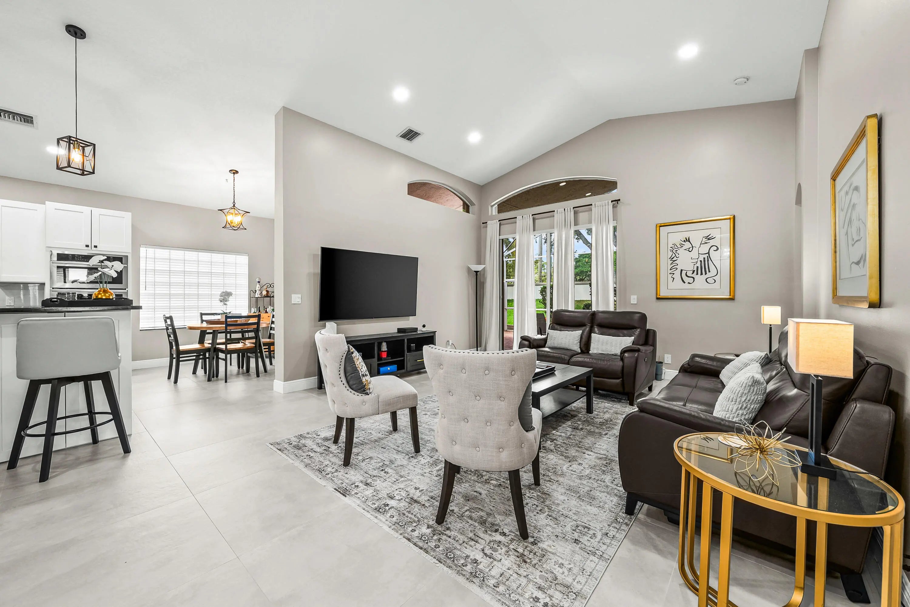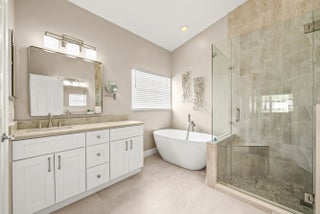 Welcome to this beautifully maintained home in the highly sought after Bellaggio where comfort meets modern elegance.This well kept residence features a bright, open concept layout designed for both everyday living and effortless entertaining. The spacious living and dining areas flow seamlessly into a stunning, recently updated modern kitchen, complete with sleek cabinetry, ample counter space, and contemporary finishes perfect for hosting family and friends. Unwind in the luxurious primary suite, highlighted by a spa-like bathroom with a relaxing soaking tub your own private retreat after a long day. Step outside to enjoy a peaceful setting with plenty of space to entertain or simply relax and take in the beautiful surroundings. With no homes behind it, this property is perfect if you value privacy and a garden; this is one you must see! Located in a vibrant, resort-style community, residents of Bellaggio enjoy world-class amenities, including a clubhouse, fitness center, tennis courts, pickleball, bocce, and a full social calendar. Don't miss the opportunity to own this move-in-ready gem in one of the area's premier active adult communities!
