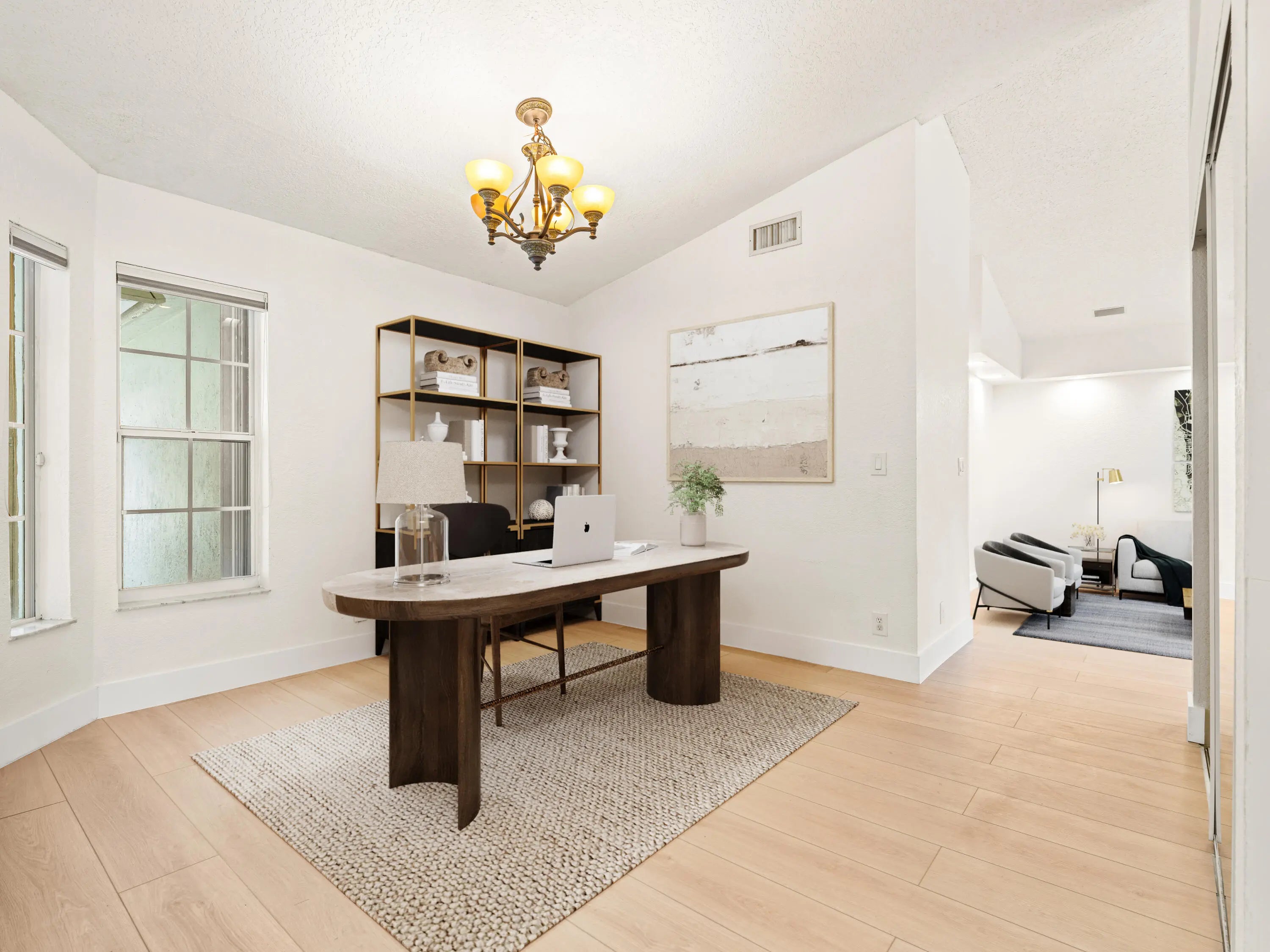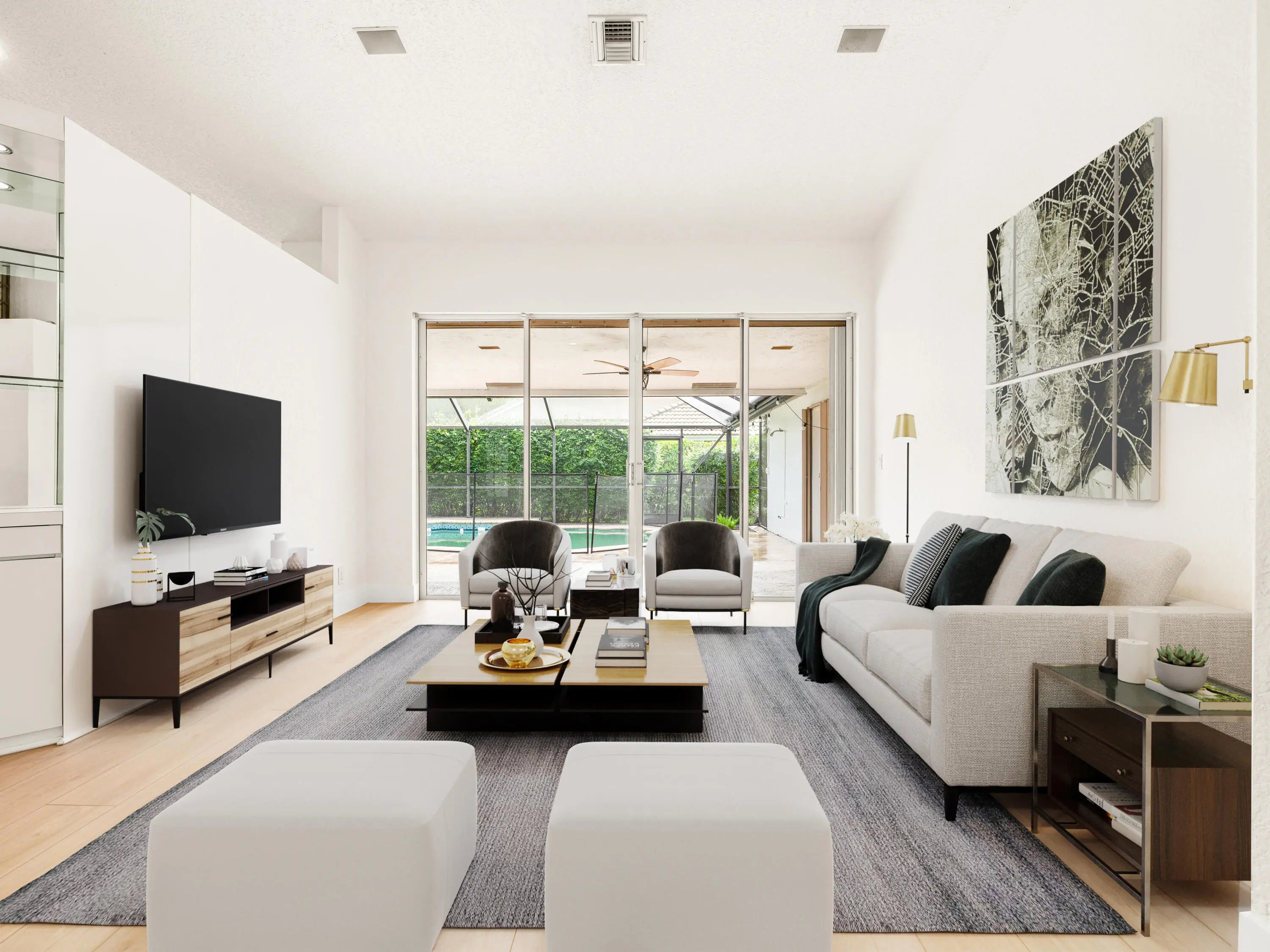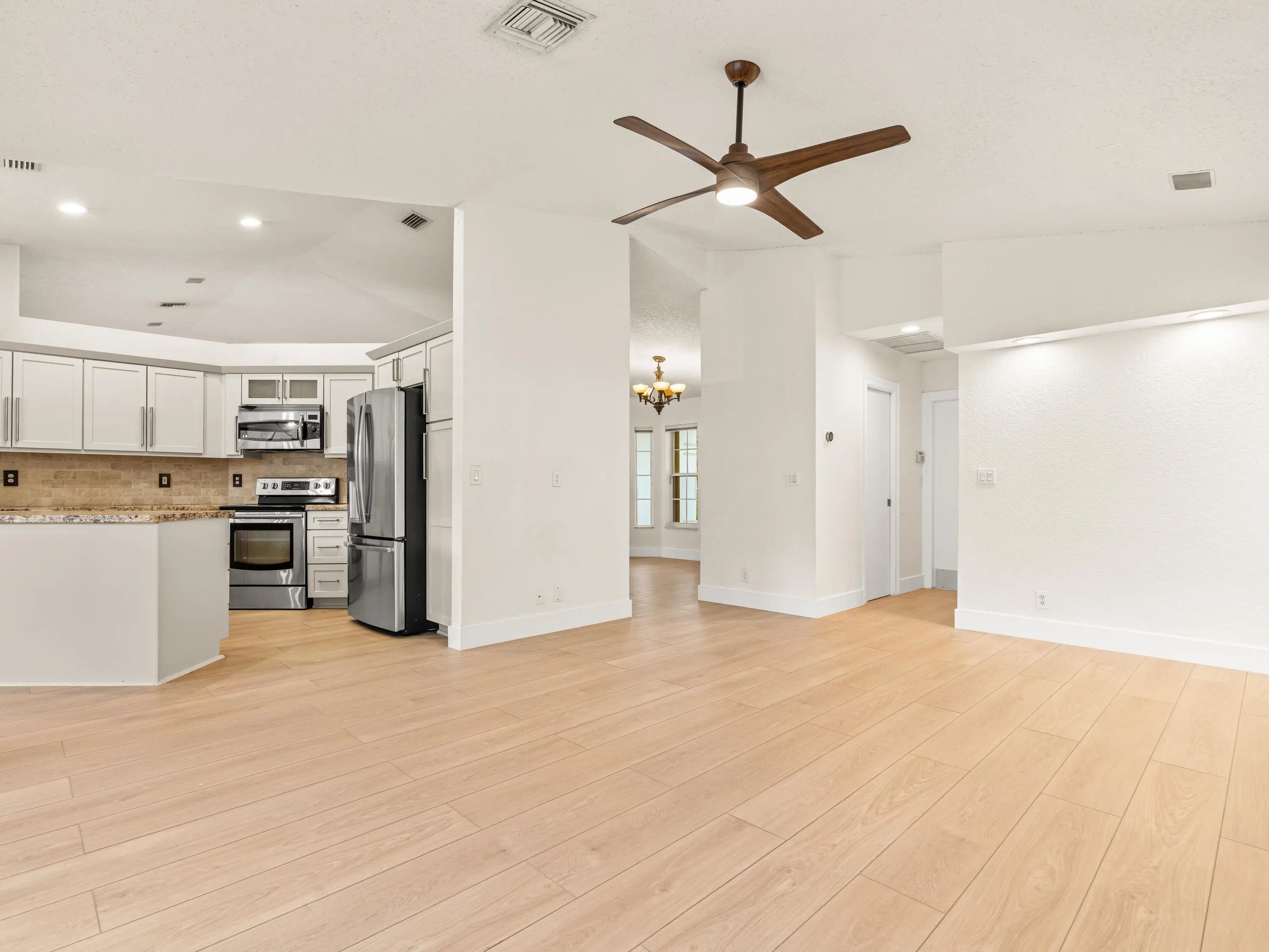 Beautifully maintained 4BR/2.5BA single-story home on a prime corner lot in Orchid Island. Bright, open layout with vaulted ceilings throughout the main living areas. Major upgrades include brand new luxury vinyl flooring throughout and freshly painted kitchen cabinets, giving the home a modern, move-in ready feel. Kitchen also features granite countertops and stainless steel appliances. Beautifully renovated bathrooms. Enjoy outdoor living with a large patio and sparkling pool—perfect for entertaining. Additional features include accordion shutters and a newer A/C (less than 2 years old). Corporate relocation.