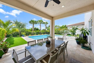 Beautifully upgraded modern pool home in desirable Andalucia has it all. 4 BR, 4.5 baths, loft, laundry w/tub, 1st flr. ensuite guest BR, great room, formal dining and Porcelain Tile. Custom stair case to loft, MBR and 2 BRs -1 is an addl. ensuite. There is also a 4th BR, full bath and laundry. High energy efficiency with gas tankless water heater, sprayed-in insulation, hurricane impact windows/doors. 3 car garage has epoxy flr, overhead racks, EV Charger. HEATED SALT WATER POOL AND SPA w/large paver patio and artificial turf. Private yard, Green area view & Child Sec Fence. Lawn care, pool service and SECURITY GATE ACCESS and Community pool/gym included. Outstanding schools, near turnpike & Wellington shopping. Great location!