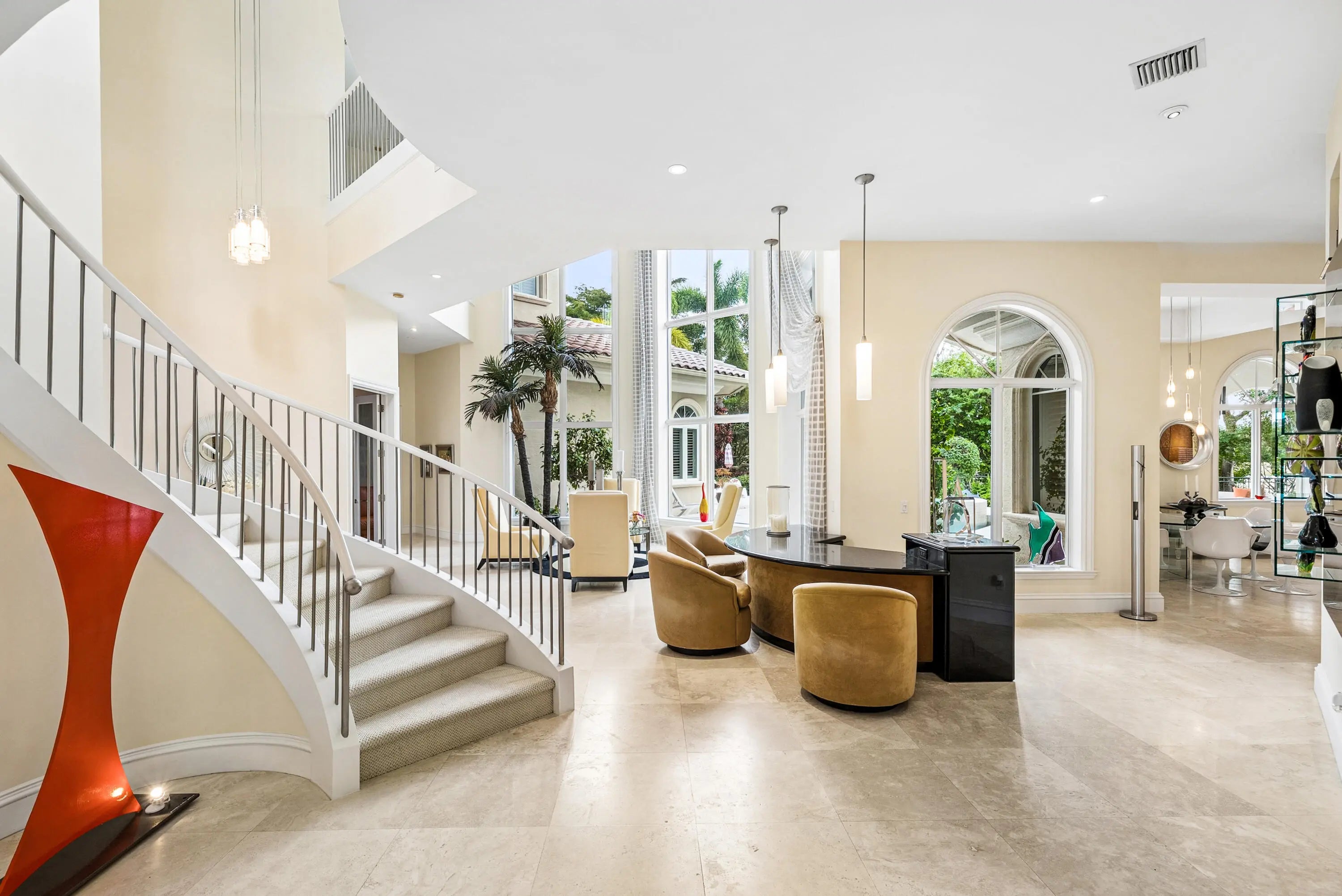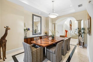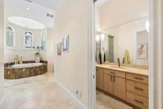 Custom, elegant, light-filled home built for making memories. Main floor layout includes luxurious primary suite with his and hers walk-ins, spa bathroom with steam shower and dressing area. 2nd bedroom currently used as office. 2 en-suite bedrooms & loft upstairs. Chef's kitchen, open floor plan with casual dining and bar area overlooking pool and country-club style covered patio for entertaining year round. Full-house generator, impact glass windows, custom millwork, high ceilings, marble floors, 3 ac zones, tons of storage, summer kitchen, beautifully landscaped backyard offers privacy and view of 17th hole of Dick Wilson designed golf course-a prime location in the community. Golf membership not required. Quiet luxury, old Florida feel...the house has it all. *Dog wash station in laundry room. *Cabana bathroom. *2 fireplaces . *Garage has epoxy flooring and floor to ceiling storage cabinets.