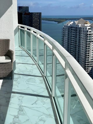 Spectacular corner residence with panoramic bay & skyline views through floor-to-ceiling glass. Bright split 2BR/2.5BA layout offers privacy and seamless living. Private balcony with water & city views. Wood floors, assigned covered parking. Full-service building with concierge, valet, resort-style pool & fitness center. Prime Brickell location steps to dining, shopping & entertainment.