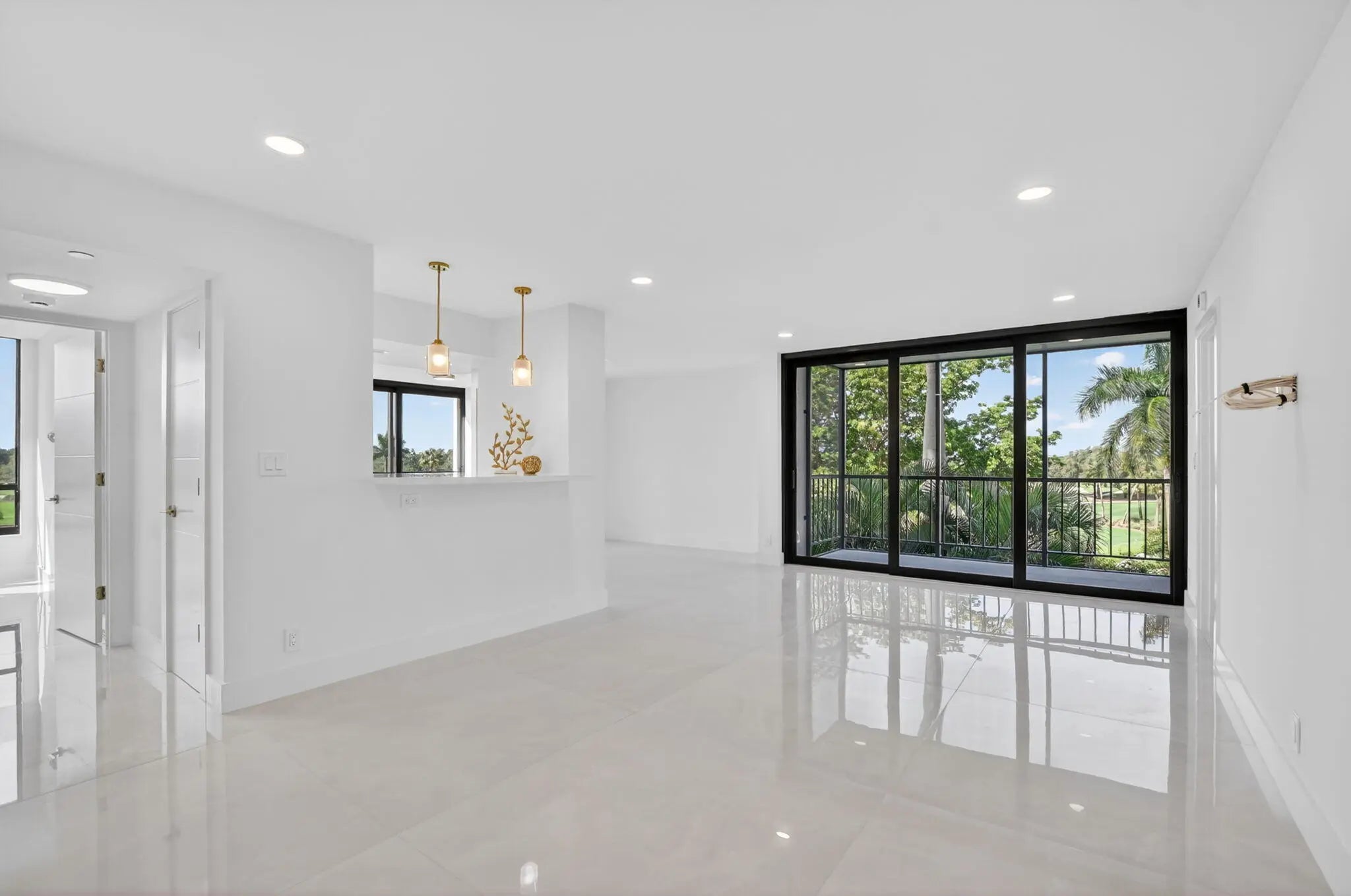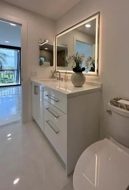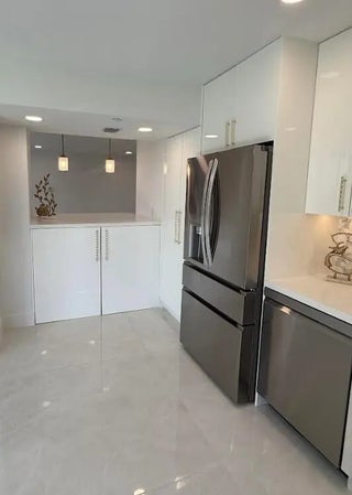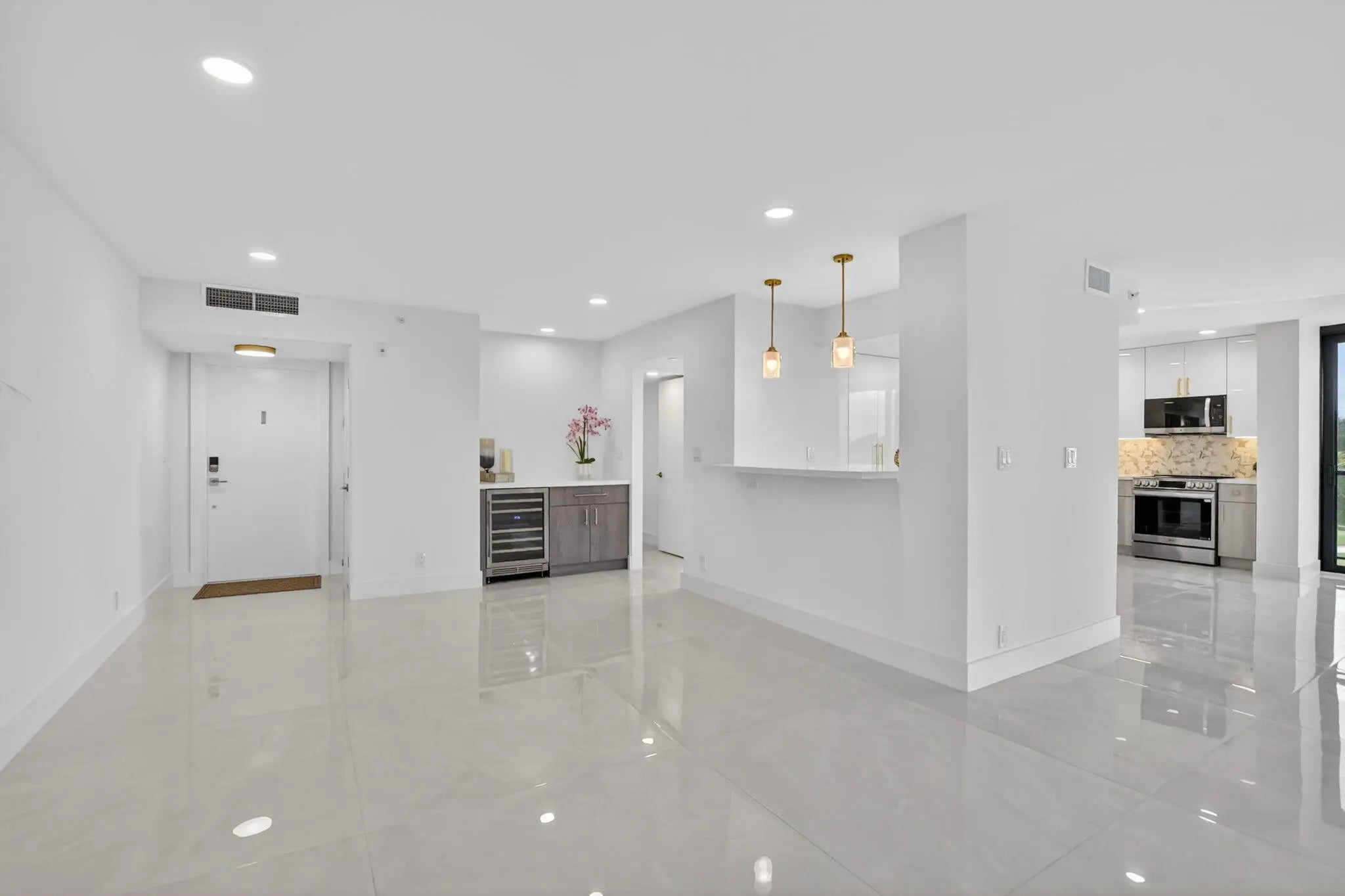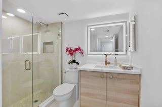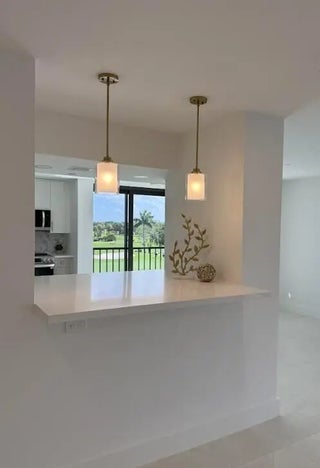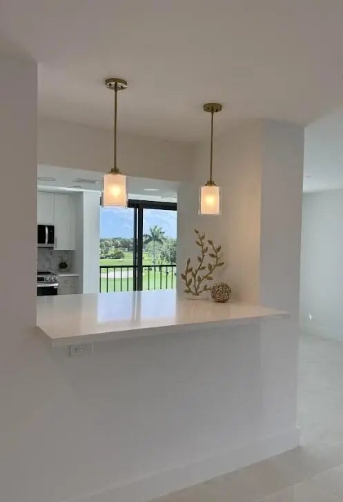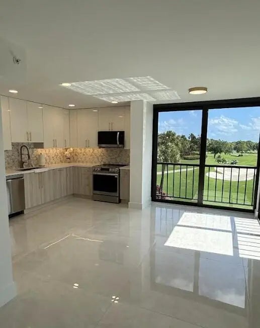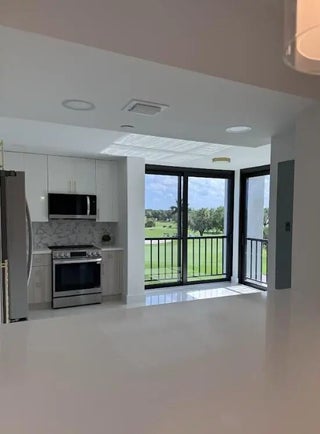 Beautiful completely renovated corner 4th floor Midrise Condominium apt surrounded by spectacular golf course and lake views. Small patio glassed in and opened to the living areas. Custom upgraded finishes throughout. Property includes high-end impact windows and sliding glass doors. Custom closets with full-wall mirror. Large 40x40 Padron porcelain tile throughout. All new top end appliances. New water heater and A/C system. New electrical panel. Keyless entry system. Large pantry. Washer & dryer ready. Long outdoor patio. The modern clean-lined interior features LED high hats, LED mirrors, mirrored doors and pendant lighting over the bar area. Kitchen is finished with designer backsplash, under-counter lighting The bar area is complete with a wine cooler. All rooms Hotwire ready.