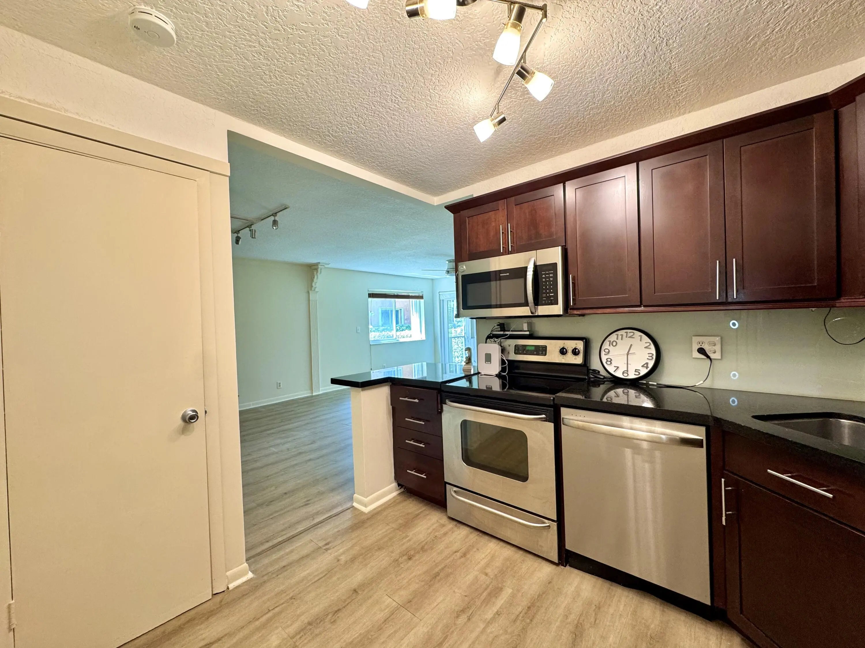 Corner Unit Beauty - Light, Bright & Just Right! Welcome to this spacious 2-bed, 2-bath first-floor corner unit with a beautiful garden view. Enjoy impact windows and doors that fill the home with natural light. It's the BEST PRICED unit with the lowest HOA fees in the entire complex, making it an incredible value! Washer and dryer are allowed, giving you the flexibility to install your own and add convenience. Ideally located just minutes from the beach, major roads, top restaurants, shopping, and vibrant nightlife. The community has been recently updated with fresh paint and new carpets, creating a clean, modern feel. Great opportunity for homeowners or investors—schedule your showing today before it's gone!
