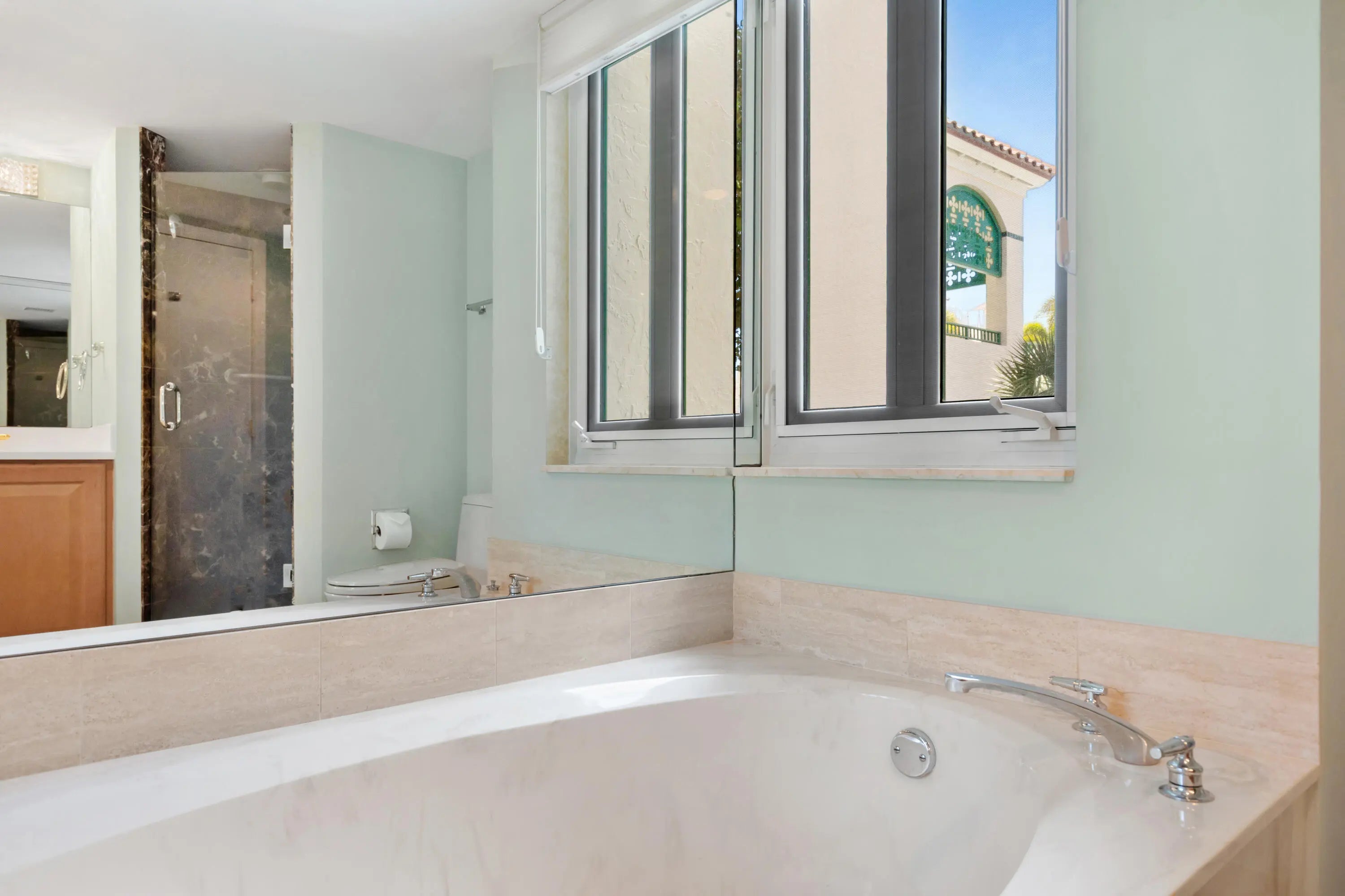 Prime location in Mizner Village, Mizner Court is a gated Intracoastal community that features garage parking, stunning entrance to the lobby with a 5-story volume ceiling, glass enclosed elevator and indoor fountains. This 2-bedroom ground floor residence has intracoastal, pool and garden views. Private walkway for Mizner Village residents along the intracoastal and Lake Boca. Mizner Court offers 2 pools, tennis courts, weight training room equipped with exercise machines, dumbbells and a separate cardio training room.