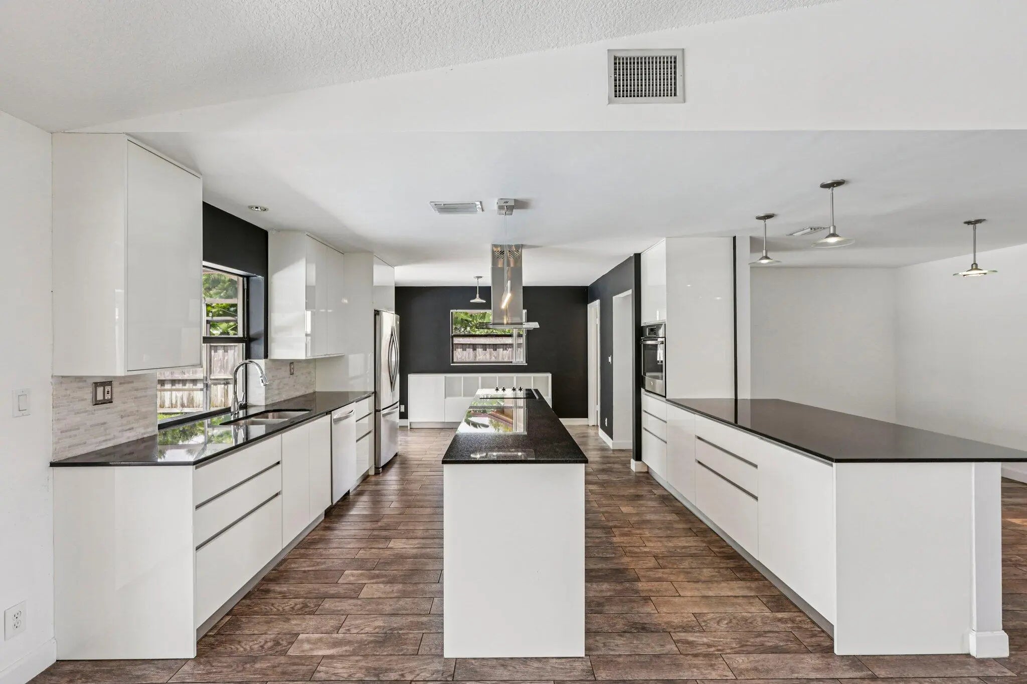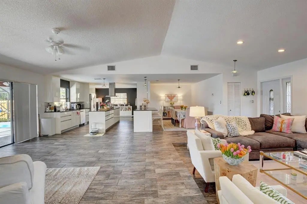 Modern elegance meets refined South Florida living in this impeccably maintained 4-bedroom, 2-bath pool home in sought-after Pheasant Walk. A light-filled open floor plan features 6x24 porcelain tile and designer lighting throughout. The chef's kitchen offers premium cabinetry, stainless steel appliances, custom backsplash, and an 8-ft granite island—perfect for entertaining. The spacious primary suite provides a serene retreat, while additional bedrooms offer flexibility for guests or a home office. Enjoy a screened-in pool and private backyard designed for indoor-outdoor living. Community amenities include a playground and scenic lake for fishing or canoeing, all just minutes to top-rated schools, shopping, dining, parks, and houses of worship.