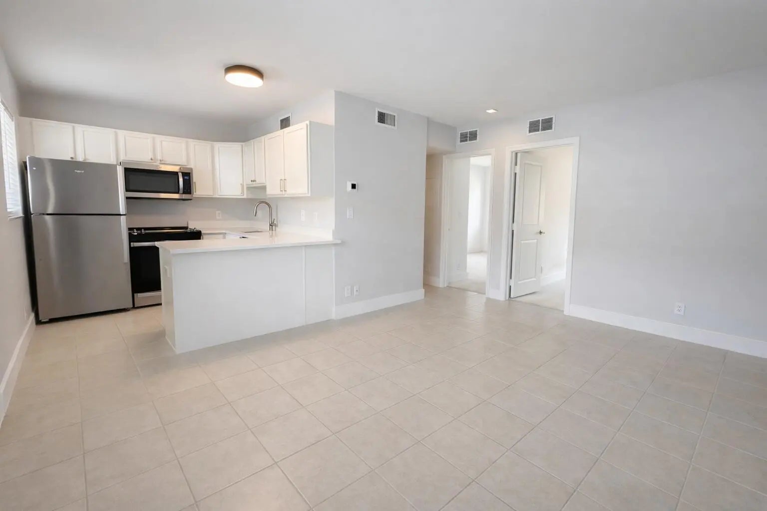 Cozy 2 bedroom 1 bathroom condo located in a charming Key West style gated community a few blocks north of Wilton Drive. Bright and modern open kitchen w/ bar featuring white shaker cabinetry, sleek quartz countertops, and stainless steel appliances. Stylish bathroom with glass-enclosed tub/shower combo, contemporary vanity w/ storage, updated fixtures and clean, neutral finishes. Two equally sized bedrooms with ample closet space, one of which can easily serve as a home office. Includes a Eufy smart lock, dedicated parking space, heated pool, and convenient on-site laundry facilities. No pets allowed. HOA requires minimum credit score of 650.