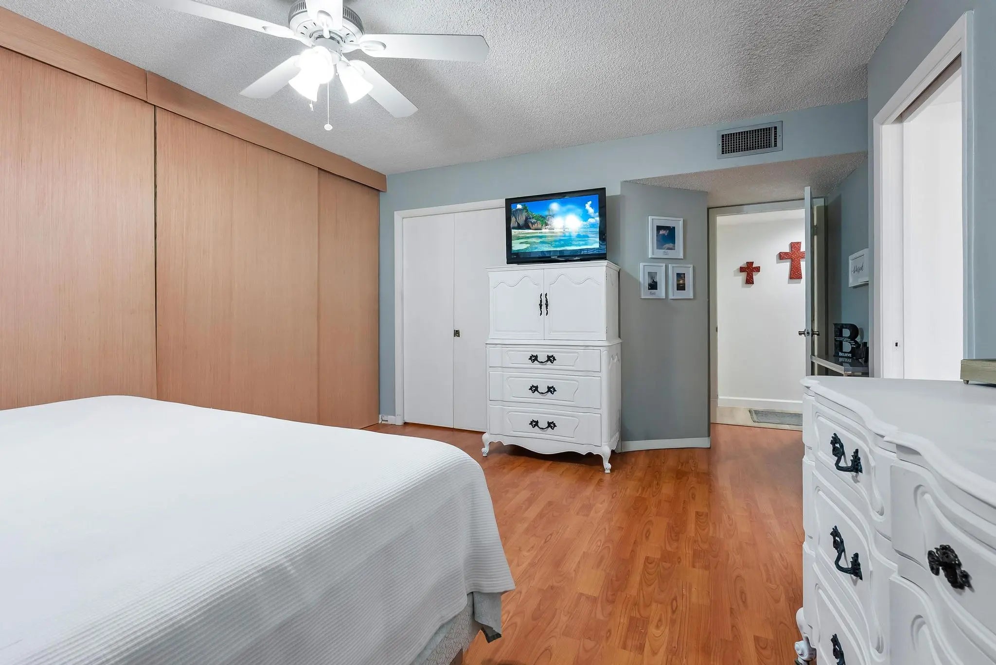 Spacious 1,564 sq ft under air 4th floor condo offers a beautifully "renovated interior with an open-air kitchen" modern cabinets, updated lighting, updated bathrooms, new flooring throughout kitchen, dining & living areas. Recent improvements include a NEW roof, 2024 HVAC, a 2019 water heater, hurricane protection living & primary bdroom. Beautiful Golf Course Views! Ideally located near the Florida Turnpike with easy access to I-95, this well-maintained residence is part of a vibrant 55+ community offering a full country-club lifestyle without the high fees. Community amenities feature two heated pools, a clubhouse with weekly activities, restaurant includes entertainment, fitness center, billiards room, card rooms, crafts studio, library, saunas, on-site management & common hot tub. Outdoor includes tennis courts, pickleball, shuffleboard, putting green, sidewalks, picnic area and access to an 18-hole executive golf course. Add'l conveniences include, elevators, trash chute, ample parking. HOA includes roof, water, cable, wi-fi, reserves, landscaping, elevator, common areas, insurance on bldg. and internet. A perfect blend of comfort, convenience and resort-style living. ACTUAL INTERIOR LIVING AREA IS LARGER THAN THE SQ FT REFLECTED ON THE PROPERTY APPRAISER'S WEBSITE. UNDER AIR 1564 SQ FT.