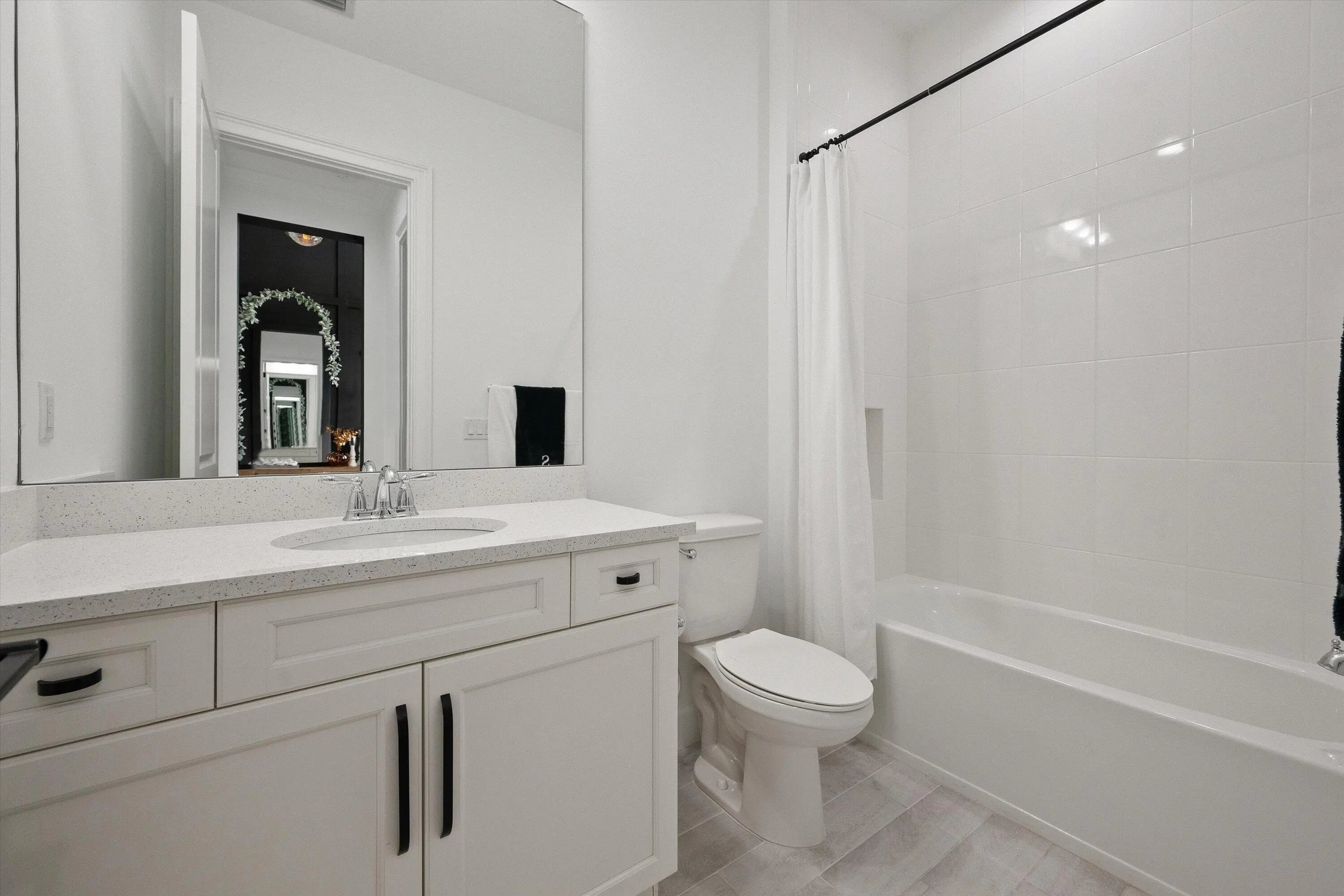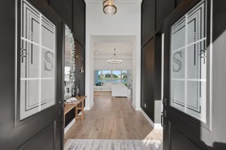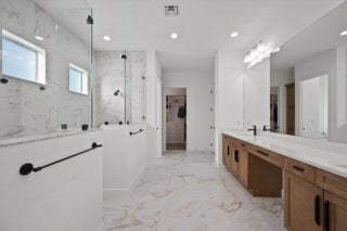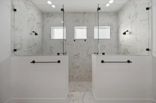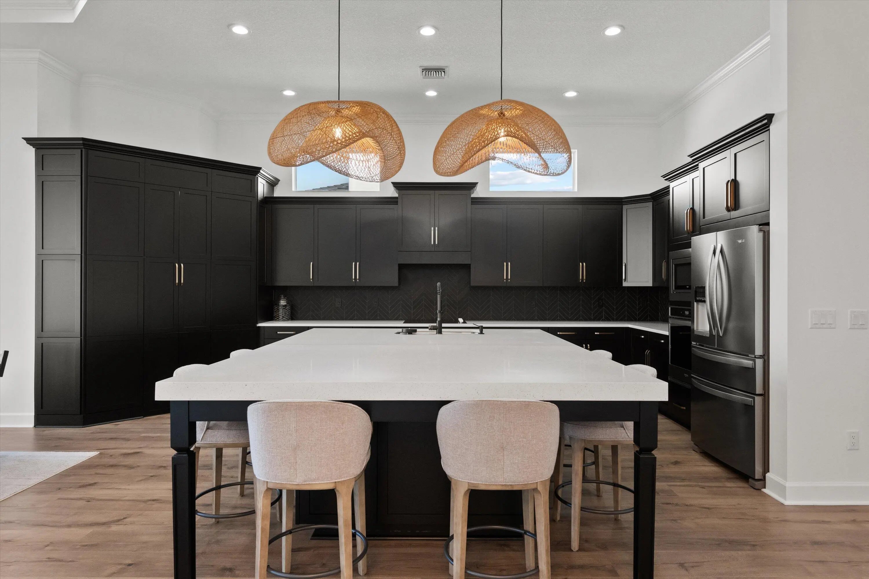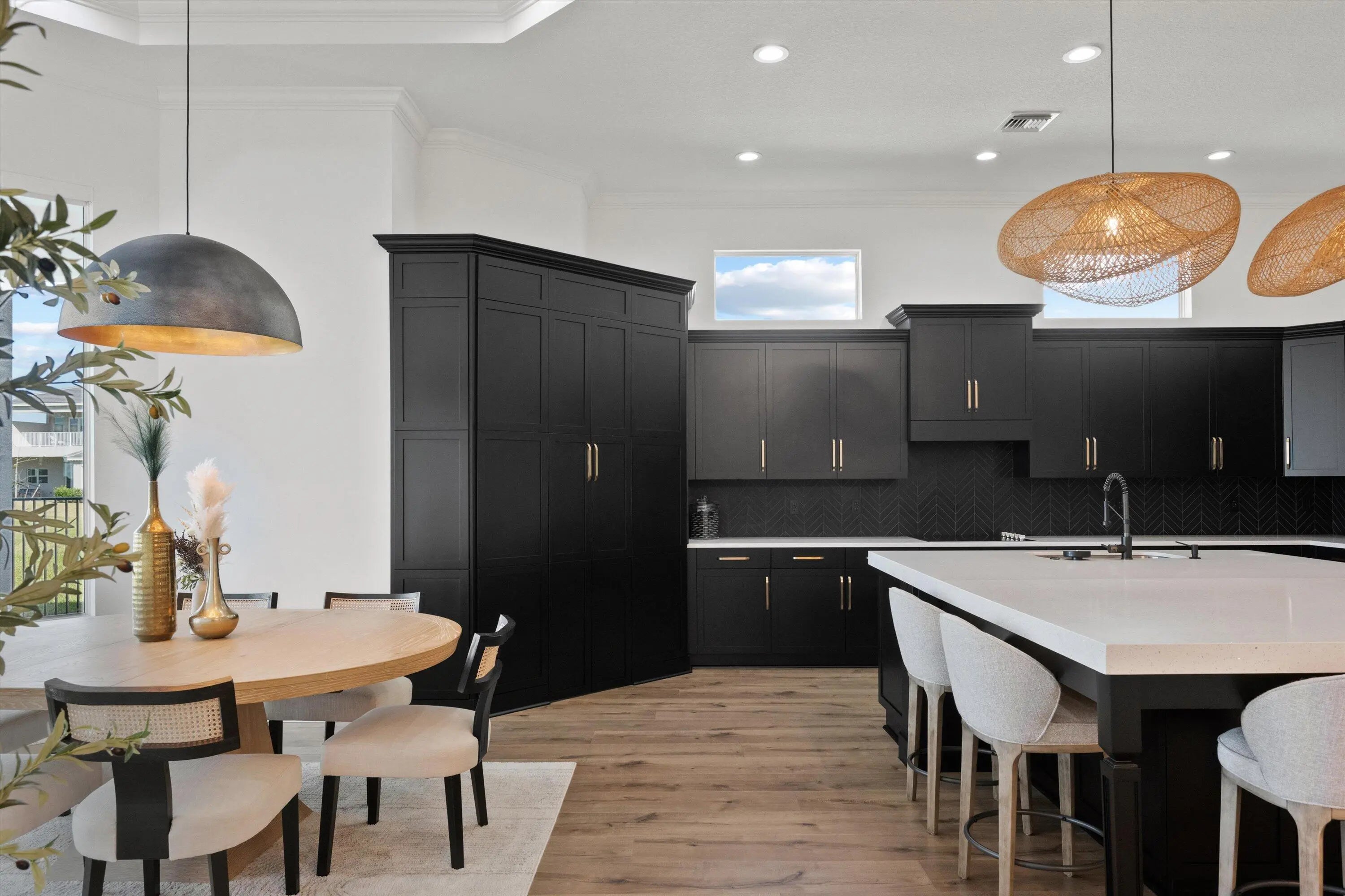 Introducing the magnificent Jupiter Grand Model in the highly sought-after Estates Community of Westlake! This exceptional residence boasts an impressive 6 bedrooms and 4.5 baths, artfully designed to encapsulate luxury living. From the curb, the home's majestic presence is evident with its extended driveway and pathway leading elegantly to the backyard oasis. Step through the luxurious black French doors into a 17'4'' tray ceiling foyer, a masterpiece featuring sleek board and batten design adorned in sophisticated black, complemented by a chic ceiling light fixture. The main areas of this home are graced with stunning wood laminate flooring, providing an elegant warmth and cohesion throughout. The heart of the home, the kitchen, will leave you breathless. With towering 12 to 13-foot ceilings, it showcases black shaker soft-close cabinets accented by striking gold hardware, black plumbing and exquisite white sparkle quartz countertops. The substantial island with a 3" slab accommodates up to seven comfortably, surrounded by additional cabinetry for optimal storage. Enhancing your culinary experience are top-of-the-line stainless steel appliances, including a French door refrigerator, a decorative pantry panel and custom-built closet storage. The herringbone black backsplash paired with black plumbing fixtures brings a touch of sophistication, while two eye-catching rattan light fixtures artfully illuminate the space. Adjacent to the kitchen, the dining area is a visual delight with a stunning bay window complete with roller shades, offering breathtaking views of the lake and unforgettable sunsets, all beneath a pendant light fitting. Nearby, the expansive great room (21'2 x 22) beckons with its impact glass sliders and roller shades, ideal for seamless indoor-outdoor living and is adorned with a magnificent chandelier. Retreat to the master suite, a peaceful haven featuring plush carpeting and panoramic lake views. Its ample dimensions (16 x 16'11) are accentuated by a trio of windows, anchored by a picturesque middle pane, complete with blackout shades and a stylish ceiling fan. Relish in the lavish master bath, showcasing a double showerhead, marble-like wall tiles with sleek black hardware, and an open glass enclosure concept that redefines relaxation. The elegant light wood shaker cabinets, soft closing with sparkling white quartz countertops, provide quaint sophistication alongside two generous custom walk-in closets. The additional bedrooms in this illustrious dwelling have been thoughtfully designed with comforts in mind. Plush carpeting, blackout blinds, custom closets and an array of Jack and Jill style bathrooms. No detail has been overlooked, from the freestanding sinks, timeless white shaker cabinets with gray quartz tops, contemporary black hardware and chrome plumbing, to the luxurious light gray subway tiles and handy linen closets. Bedroom 4 offers extra space with two closets, high ceilings, and windows equipped with blinds. Bedroom 5's flexibility is its charm, currently fitted as an office with impeccable custom woodwork, easily converted back to a standard guest room. Its adjoining bathroom is a classic symphony of vertically stacked white tiles, complemented by timeless white cabinetry and black hardware. Bedroom 6 offers a unique twist, transformed into a plush theater room with all-black decor and blackout shades, with en-suite facilities echoing the home's sophisticated design language of white cabinets, quartz counters, and wood-like tile flooring. Not to miss are the strategic storage solutions sprinkled throughout the home, including an impressively sized laundry room equipped with a laundry tub, black shaker cabinets, and gold touches. And yes, a convenient powder bath further enhances the functionality and style of this dream home. Additional highlights include a mini-split A/C system in the garage perfect for a home gym, workshop, or climate-controlled storage. The outdoor realm is sheer paradise with a 41x44" covered lanai boasting 12" soaring ceilings to entertain or unwind. The fully fenced backyard features a complete astro-turf transformation for easy maintenance, inclusive of a delightful putting green and sandpit for endless enjoyment. An outdoor built in BBQ setup completes the backyard experience ideal for hosting, grilling, and enjoying Westlake's indoor-outdoor lifestyle. This extraordinary estate offers an unmatched combination of luxury, functionality, and style, making it truly worth a million dollars. Don't miss out on this exclusive opportunity to live in one of Westlake's finest homes schedule your private tour today!