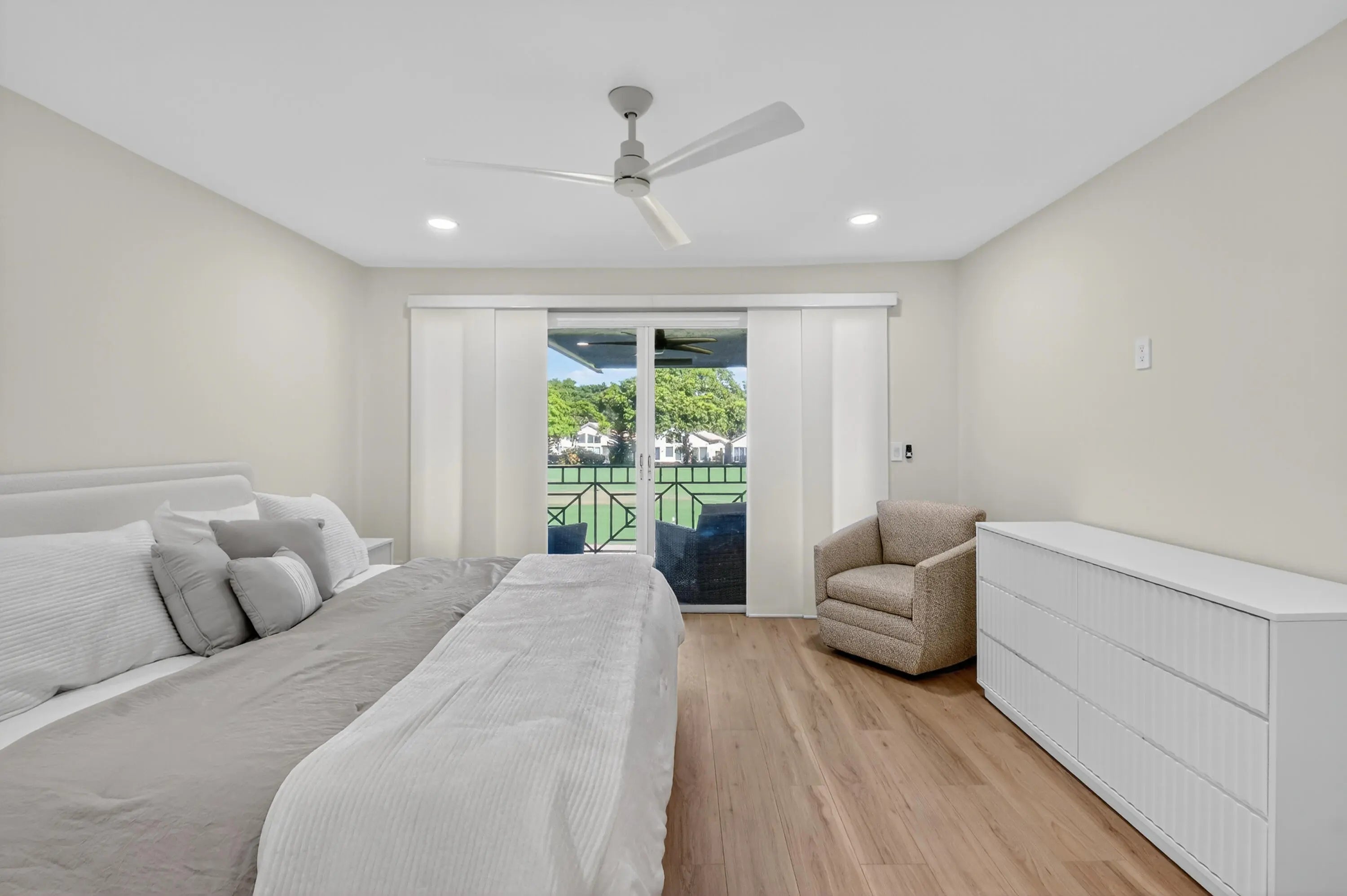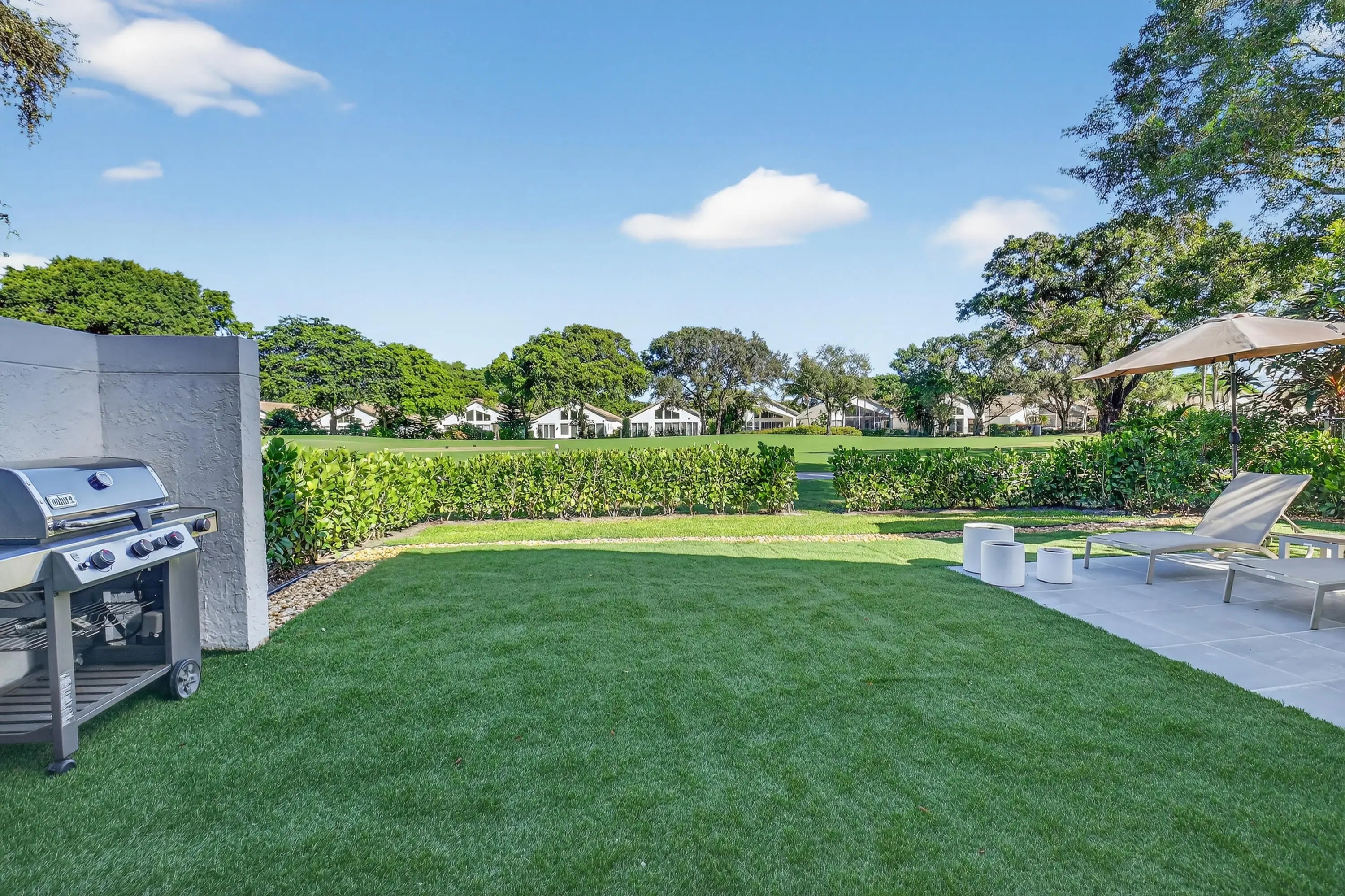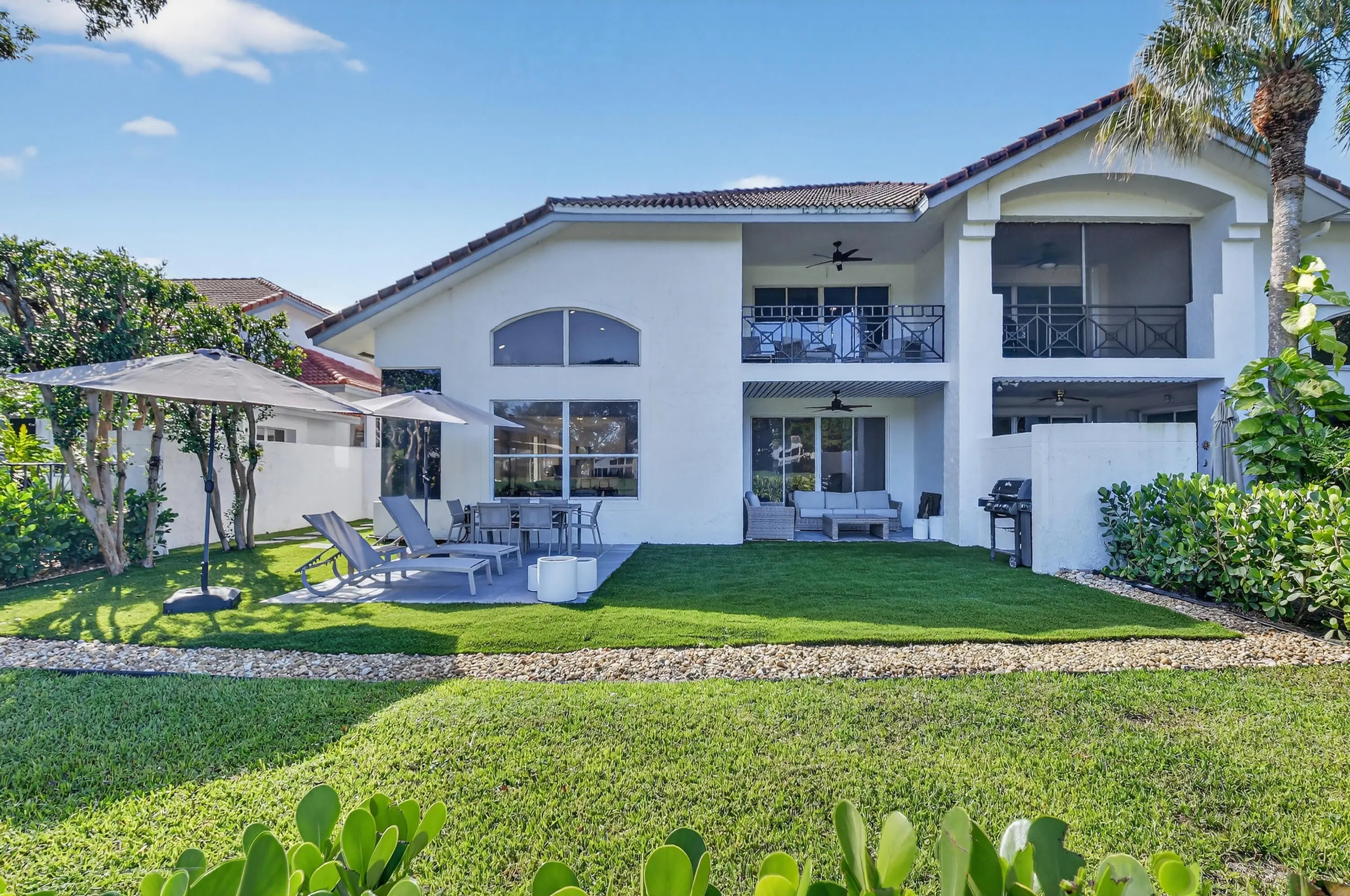 Broken Sound Seasonal Rental with Club Course Golf Membership - 4 Month Min Lease. Enjoy the country club lifestyle in this fully furnished, turnkey seasonal rental offered with a Club Course Golf Membership. This beautifully renovated townhome features 3 bedrooms, 2.5 baths, and 2,305 SqFt of modern living space with smooth vaulted walls and an open layout. The new kitchen boasts white cabinetry, stainless steel appliances, and a snack bar, opening to the spacious living room with golf course views. The primary suite is conveniently located downstairs, complete with a walk-in closet and a stunning renovated bath with a soaking tub and frameless glass shower. Upstairs, you'll find two guest bedrooms, a loft, and a full bath—plus a balcony overlooking the 8th fairway of the Club Course. The backyard is perfect for entertaining, with a grill, dining furniture, astroturf, and sweeping golf course views. Just steps from your front door, you'll also enjoy the heated Cedar Cay community pool. This home is offered turnkey for your seasonal stay, combining comfort, luxury, and a prime Boca Raton location.